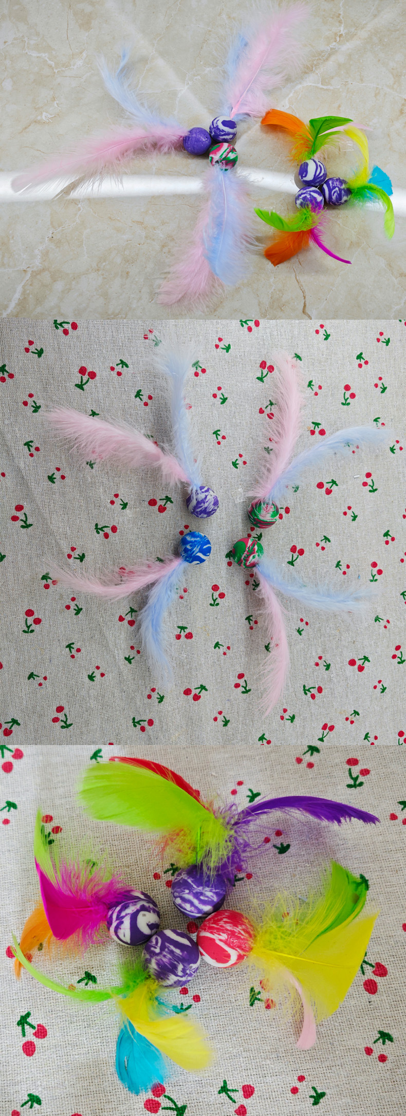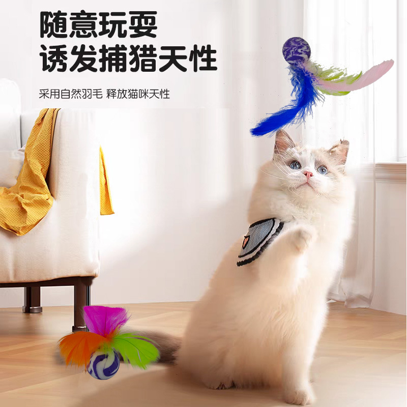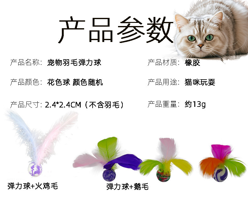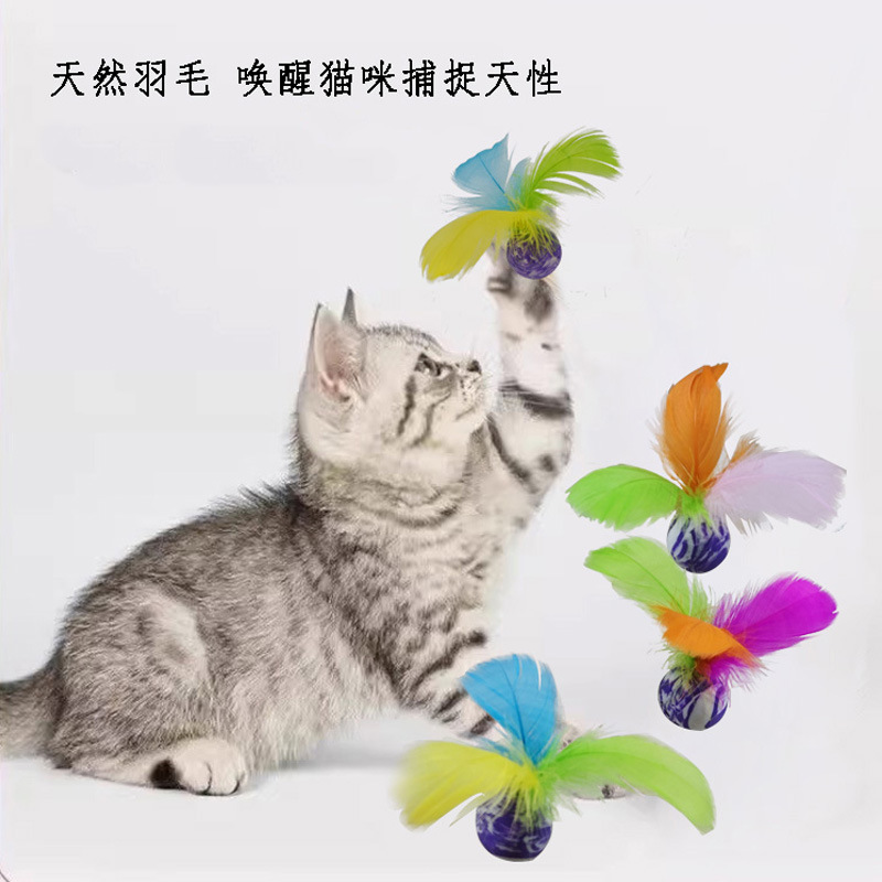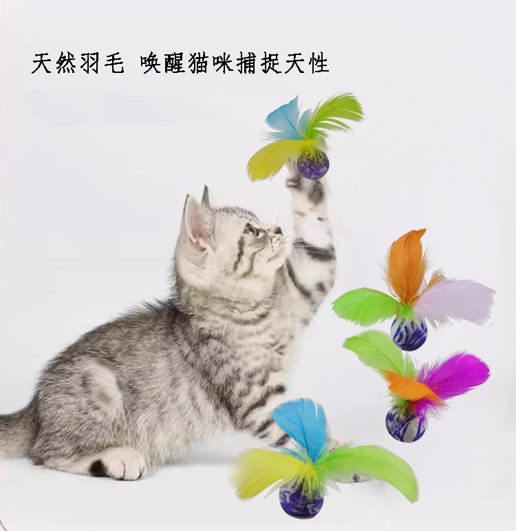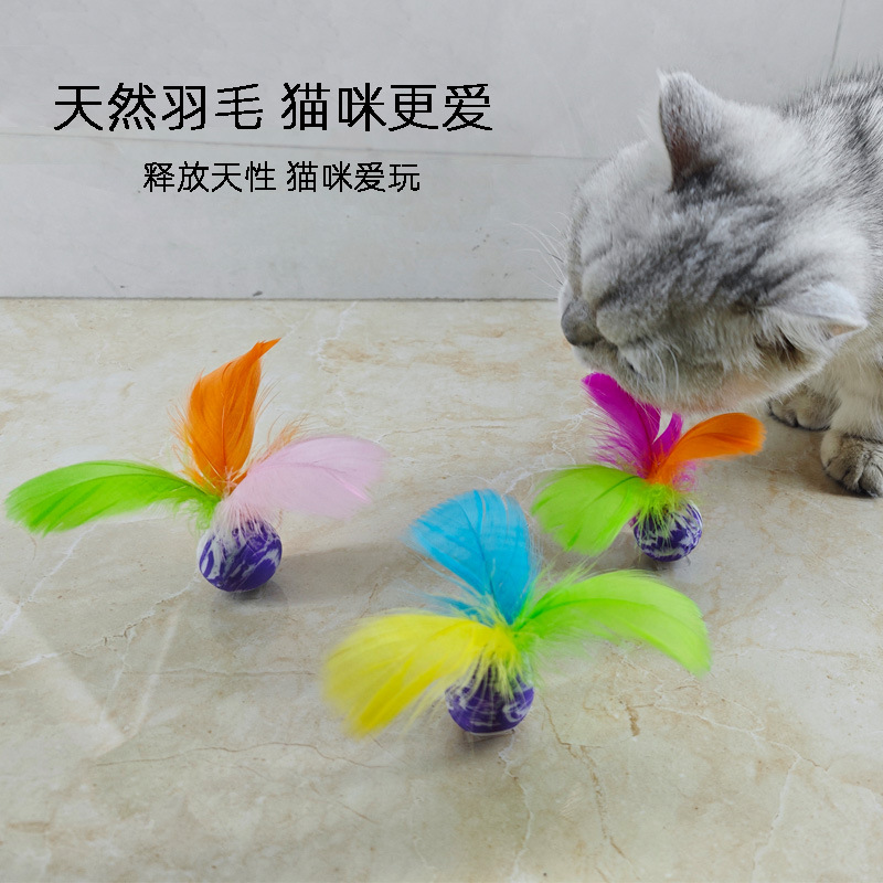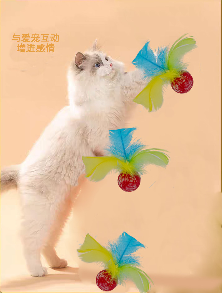 지루함을 덜어주는 국경 간 깃털 탄성 공 셀프 하이 고양이 장난감 공 대화 형 고양이 애완 동물 모피 스틱 공급 점프 공
