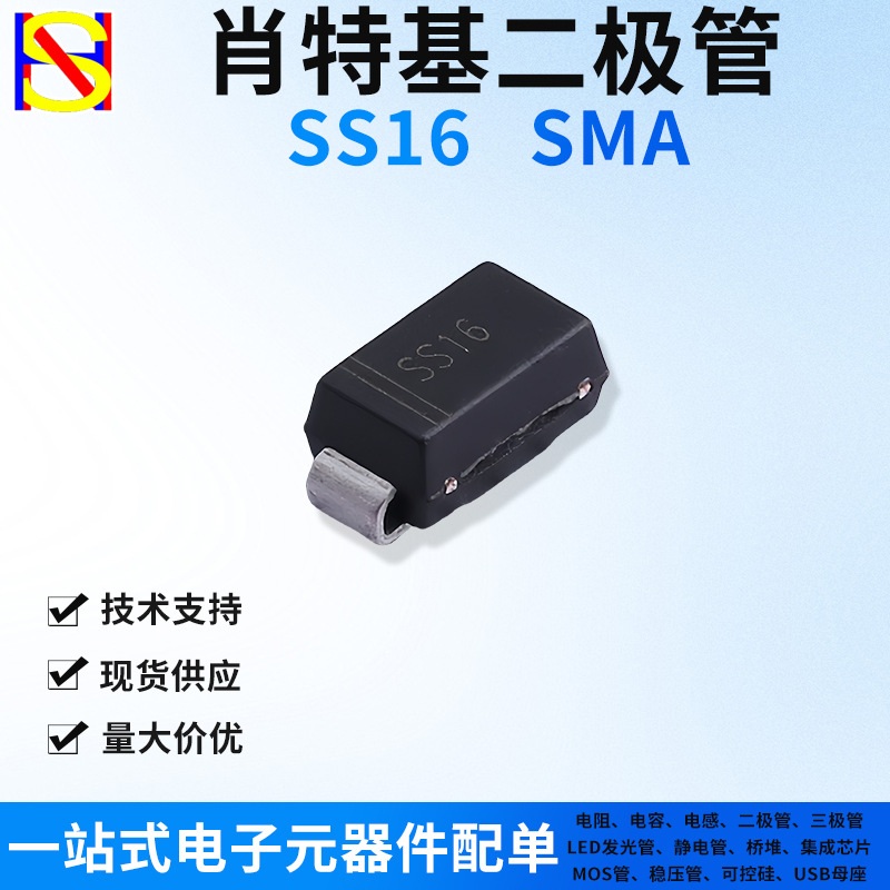 SS16贴片肖特基二极管SMA SR160 1A/60V一站式电子元器件BOM配单