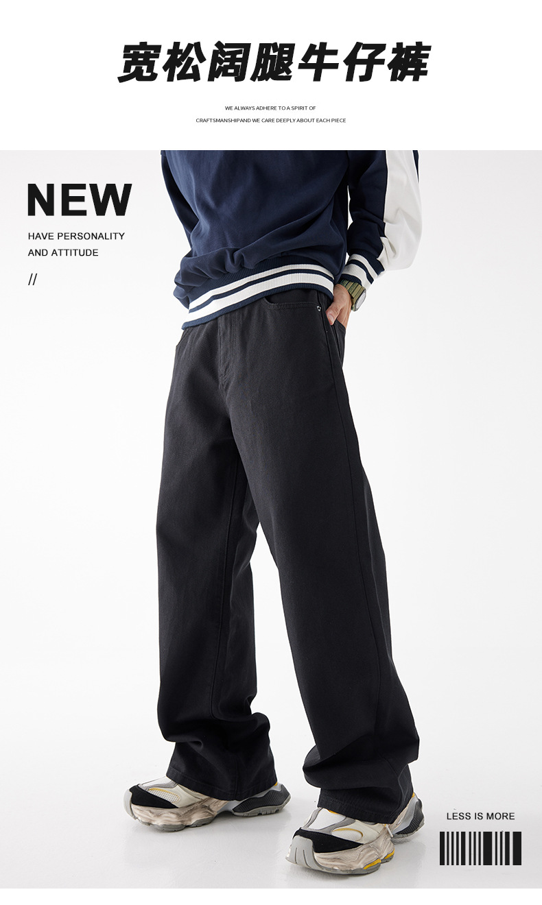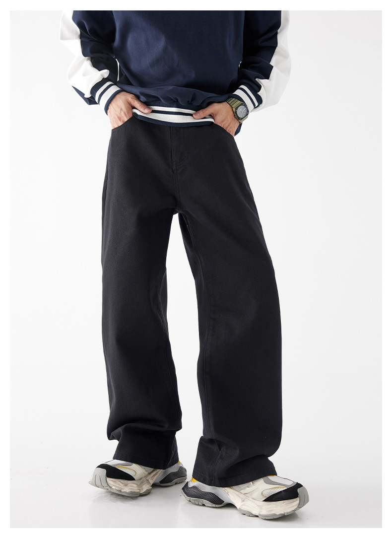검은 청바지 남자 2024 가을 새로운 패션 브랜드 느슨한 직선 바지 하이 스트리트 미국 캐주얼 와이드 다리 바지스토어 가기
