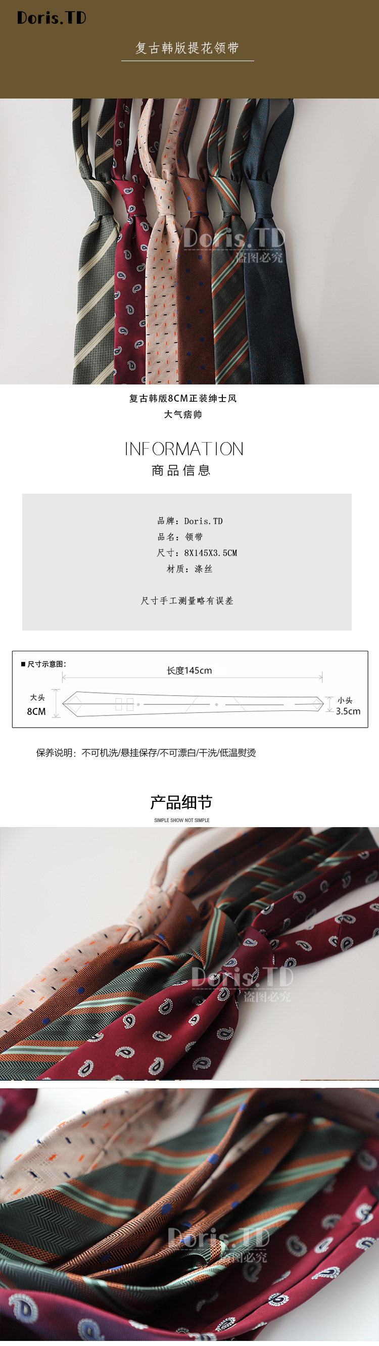 공장 재고 도매 복고풍 원피스 줄무늬 남성 비즈니스 커피 버건디 베이지 넥타이 전문 넥타이 한국어스토어 가기