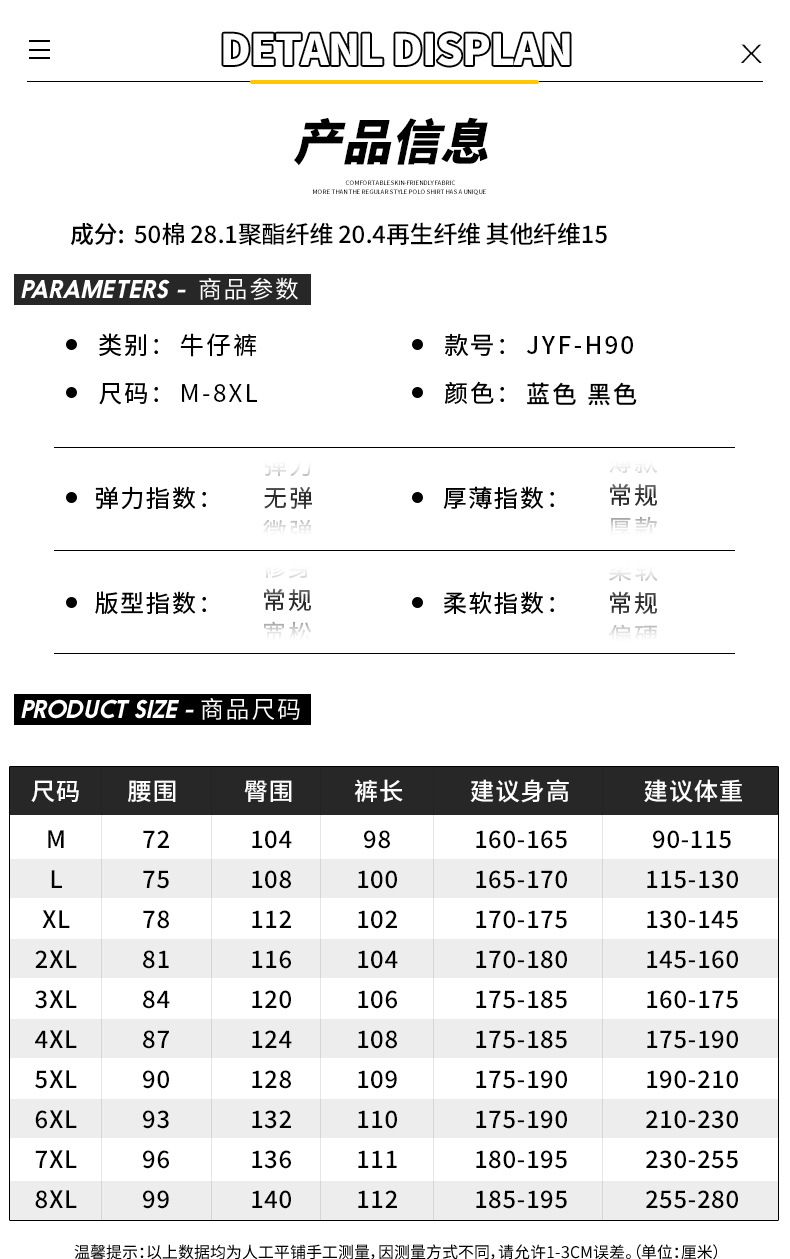 상하이 남성 M-8XL 플러스 사이즈 청바지 신탕 데님 도시 플러스 사이즈 작업 바지 청바지 남성스토어 가기