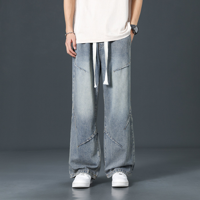 상하이 남성 M-8XL 플러스 사이즈 청바지 신탕 데님 도시 플러스 사이즈 작업 바지 청바지 남성
