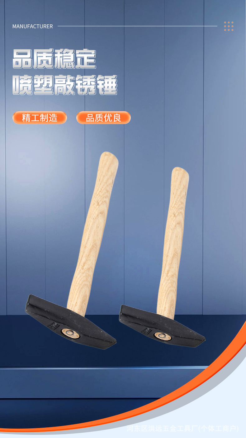 공장 도매 나무 손잡이 스프레이 녹 제거 망치 45 강철 전기 용접 녹 제거 망치 전기 기술자를위한 미니 망치 도구