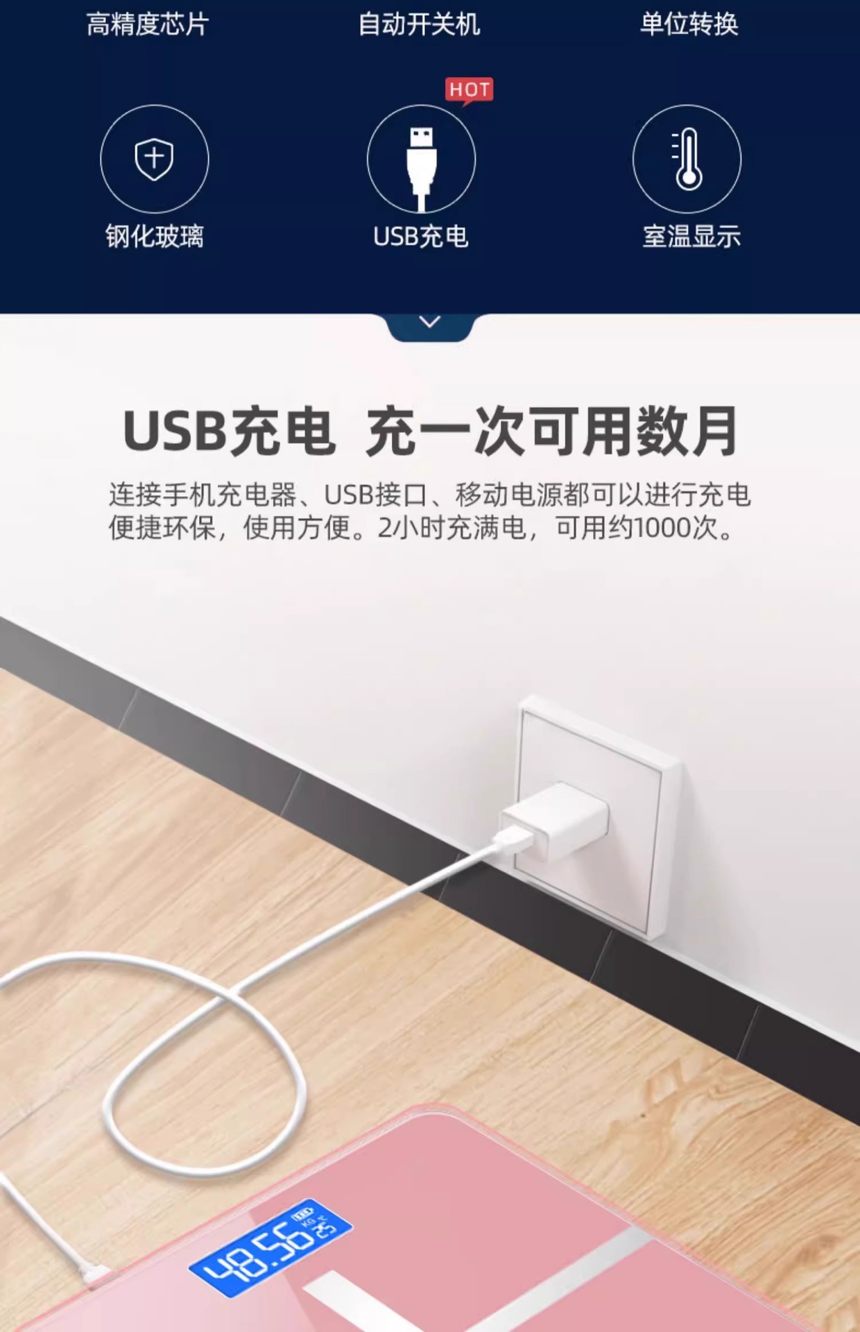 무게 가늠자 홈 전자 저울 정밀 충전식 차체 무게 높은 정밀도 체지방 저울 무게 측정기 체중 감소 특수 지능형스토어 가기