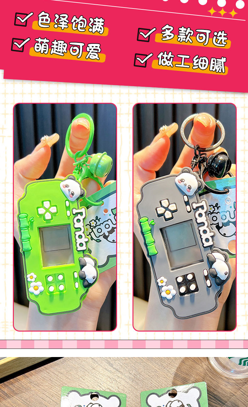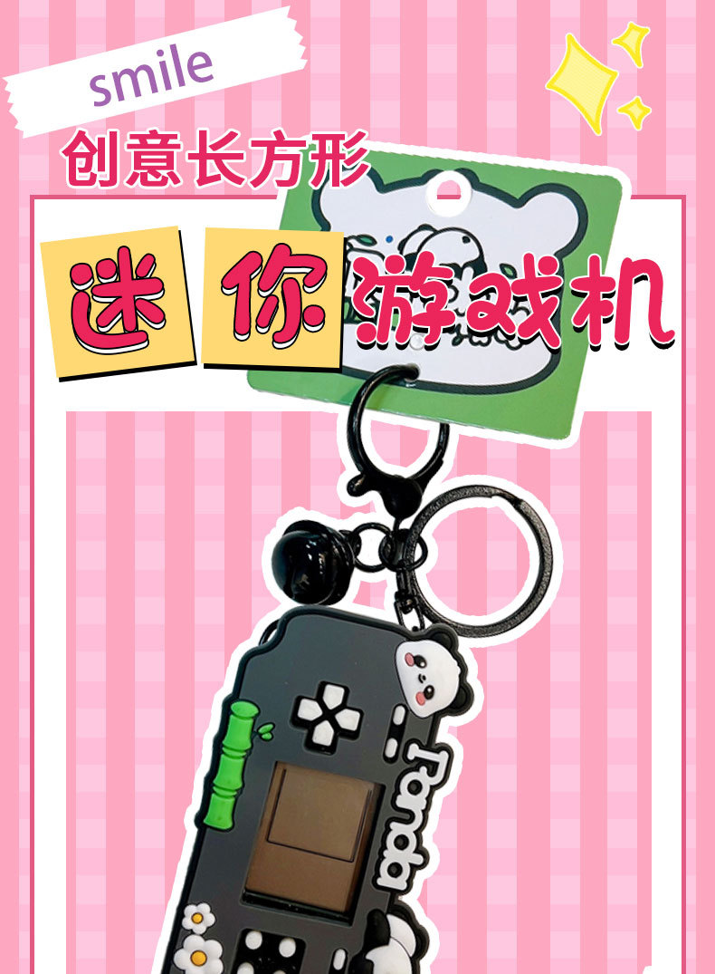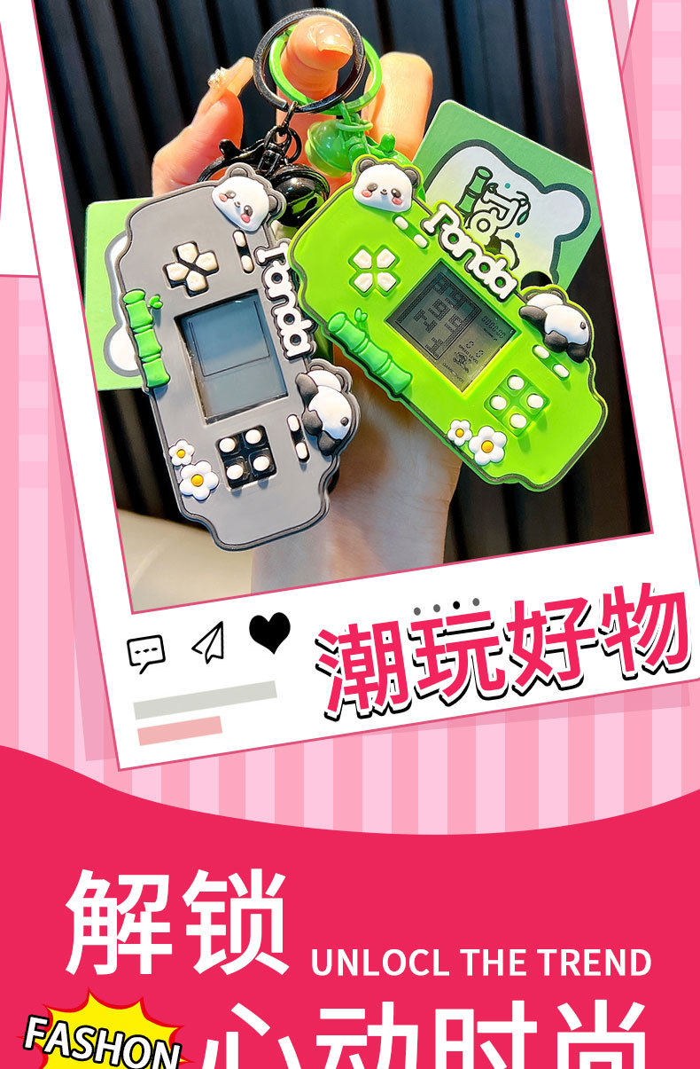 만화 팬더 게임 기계 키 체인 학생 장난감 펜던트 교육 가방 펜던트 키 체인 작은 선물 도매