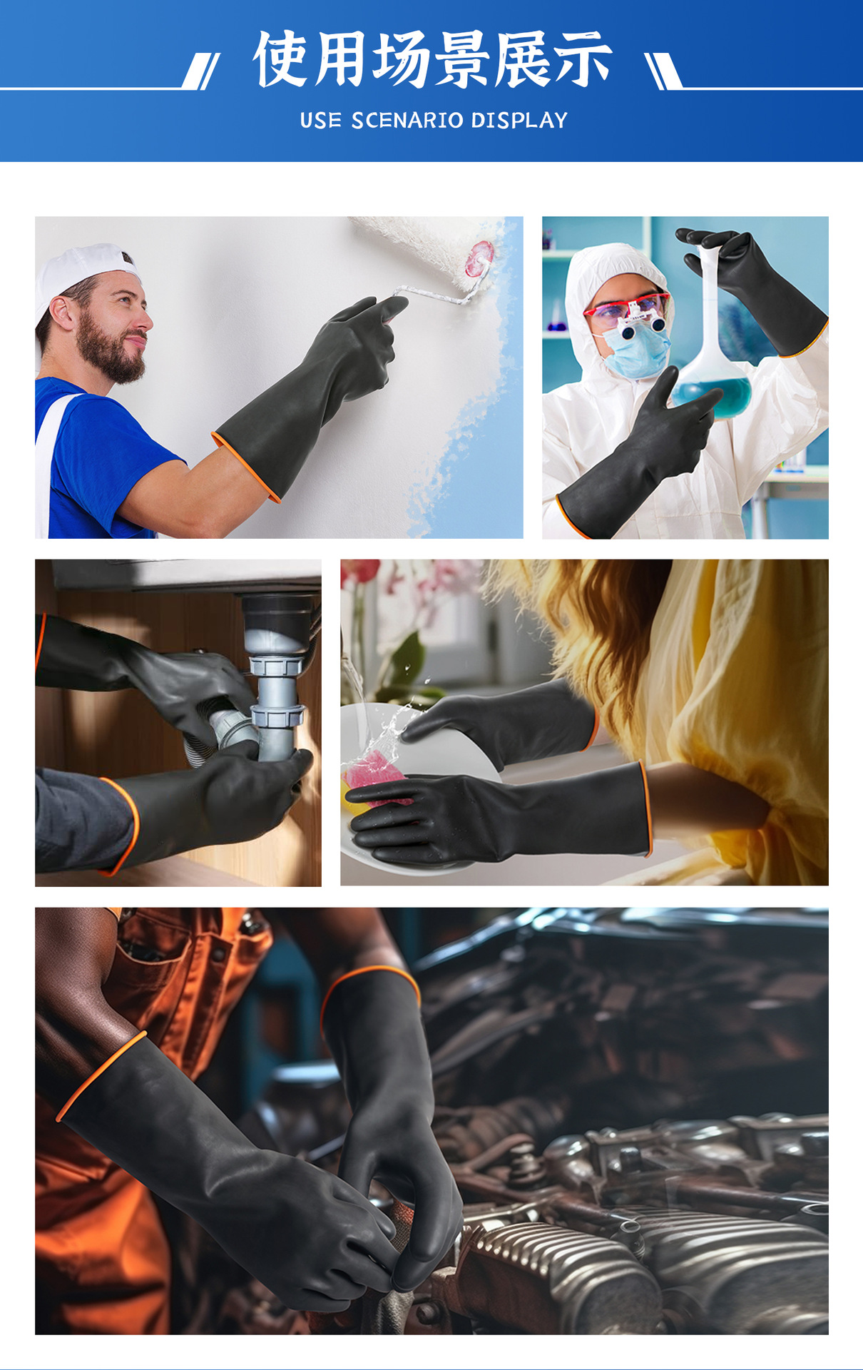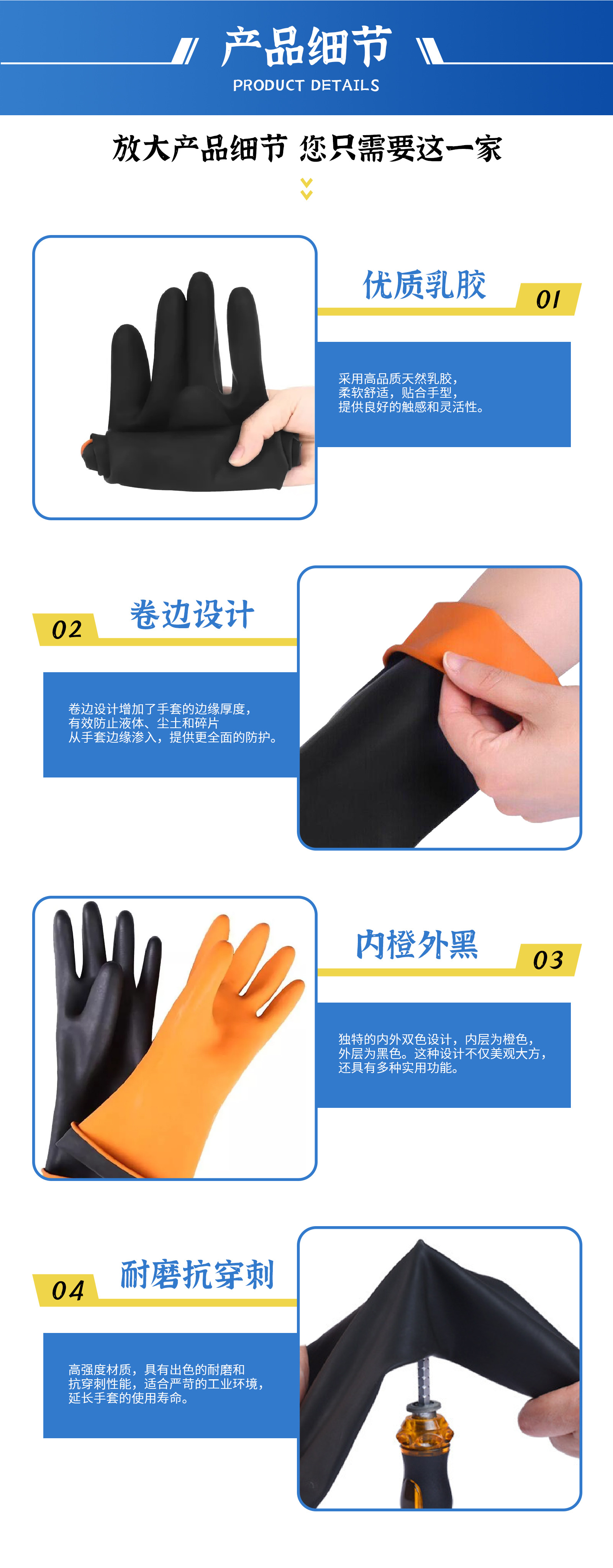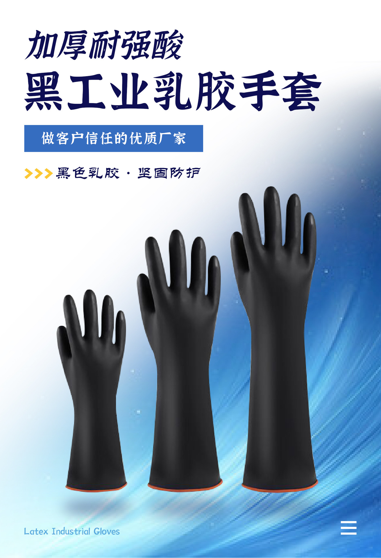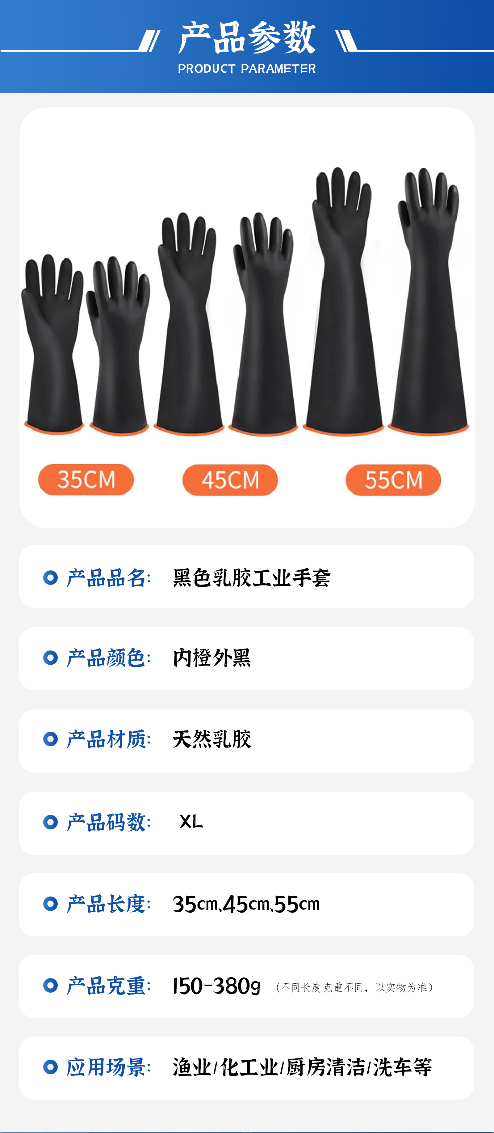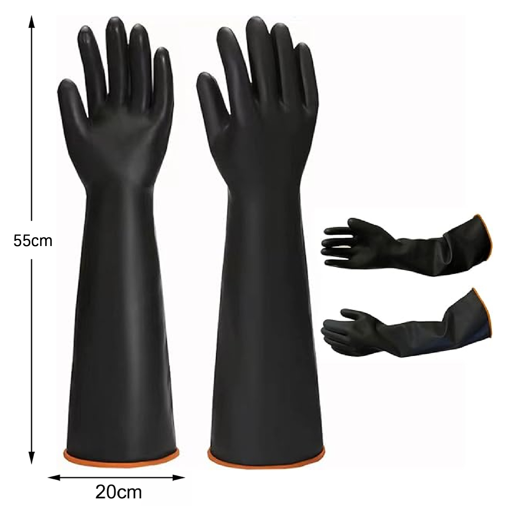 안티 화학 물질 45CM 산 및 알칼리 내성 장갑이 두꺼워지고 산업 내마모성 블랙 고무 부식 방지 라텍스 방수 장갑