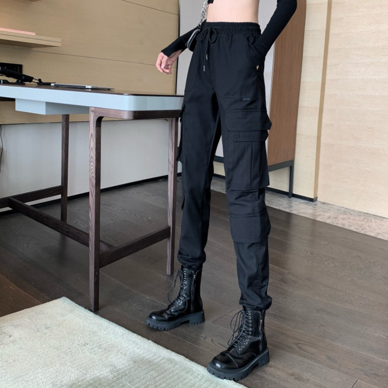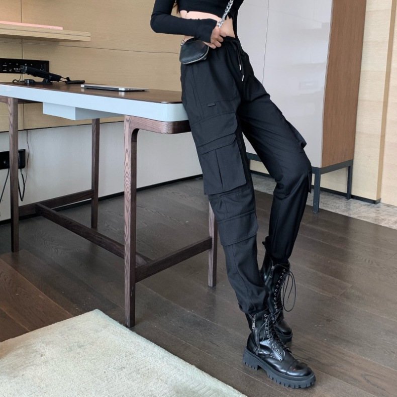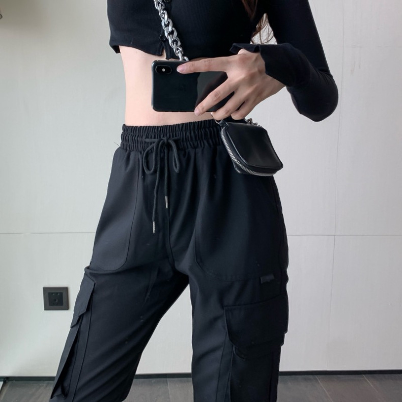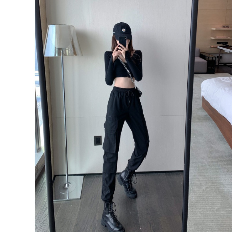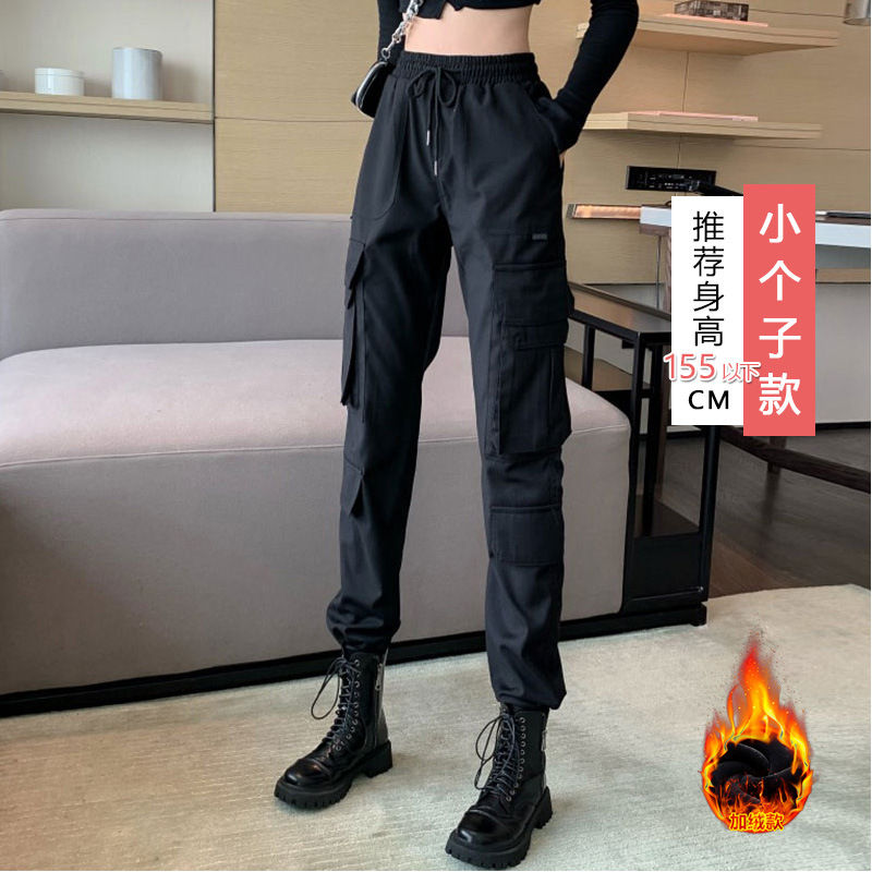 검은 바지 여성 2024 새로운 가을과 겨울 기모 짧은 남성 등반 바지, 마틴 부츠 바지스토어 가기