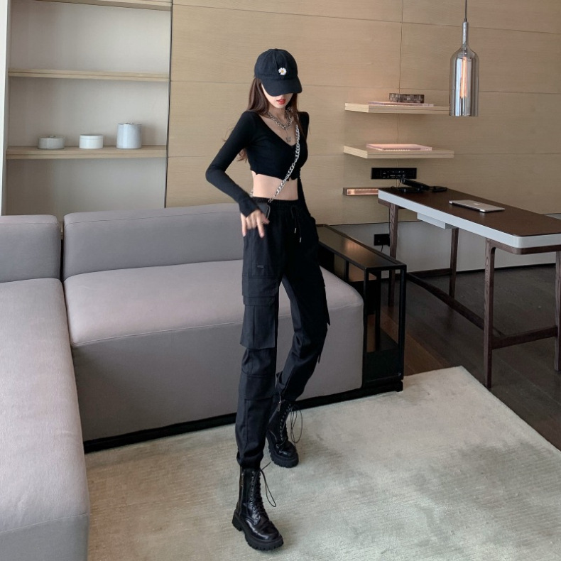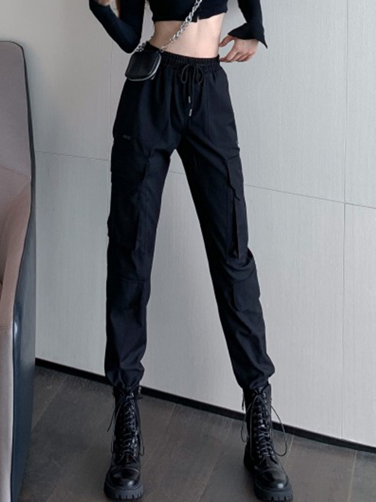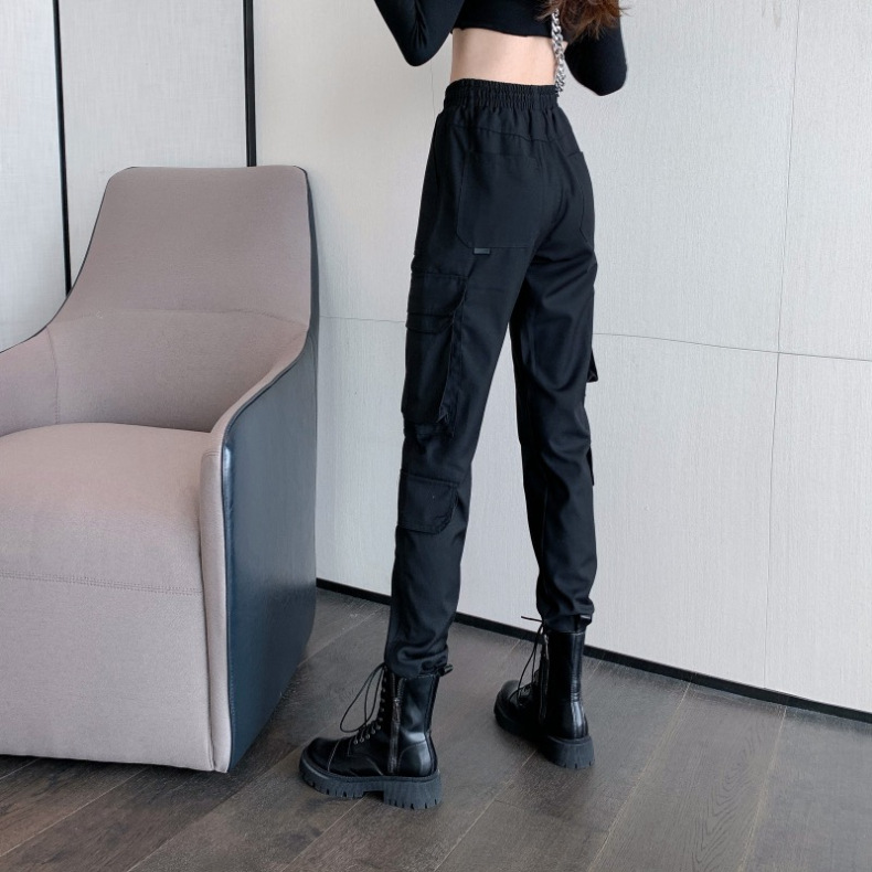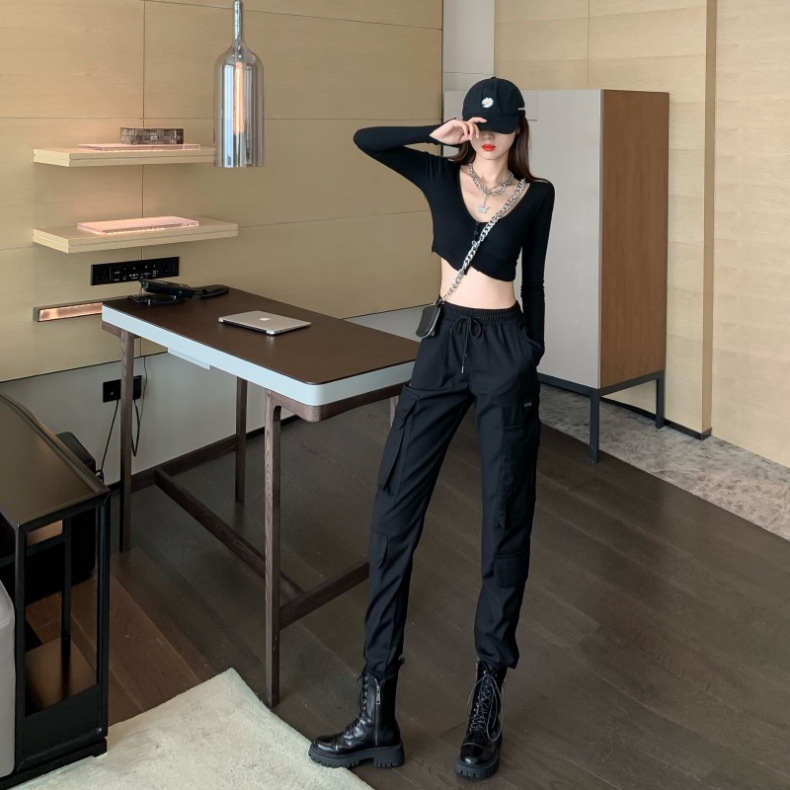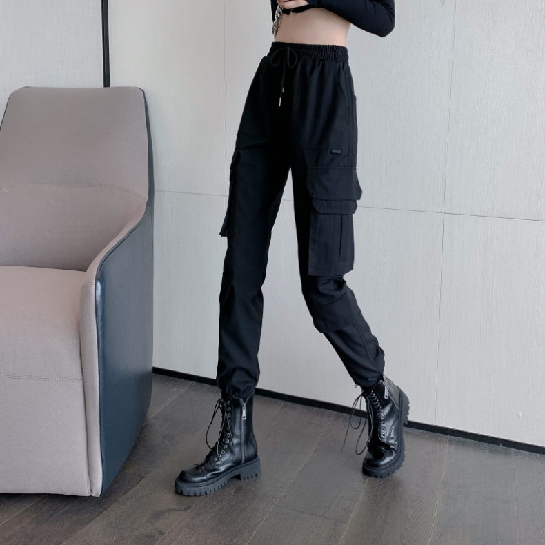 검은 바지 여성 2024 새로운 가을과 겨울 기모 짧은 남성 등반 바지, 마틴 부츠 바지스토어 가기