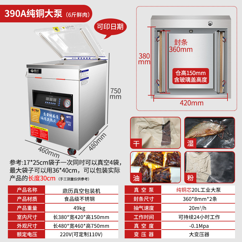 • 380A 순수 구리 더블 펌프 플랫 커버 - 습식 및 건식 2.5kg 신선한 고기