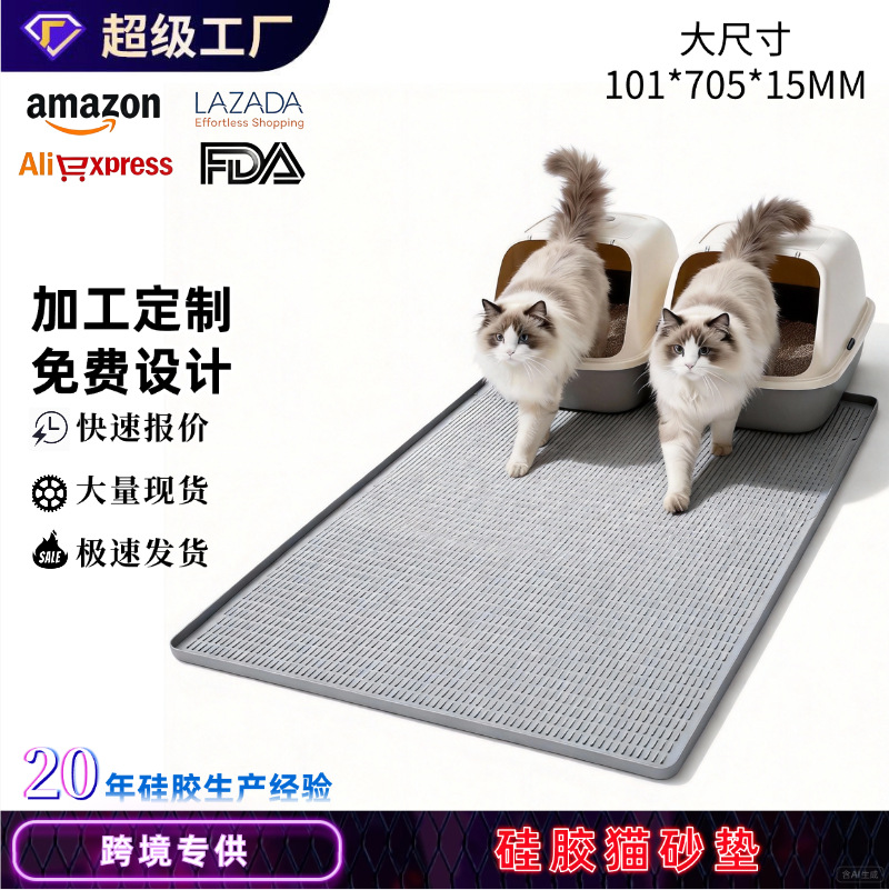 국경 간 실리콘 고양이 쓰레기 패드 고양이 쓰레기 분지 안티 스플래시 매트 워시블 대형 테이크 아웃 방지 고양이 매트