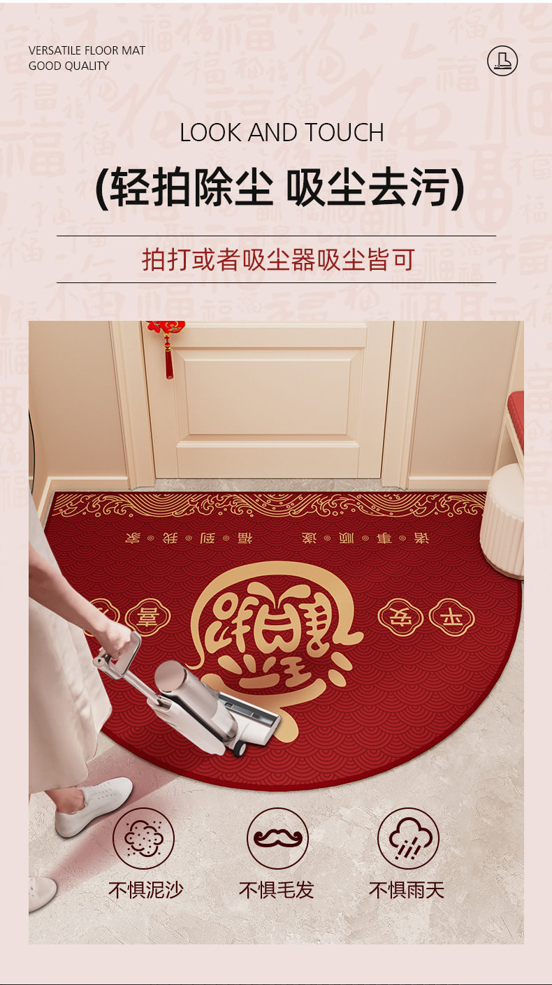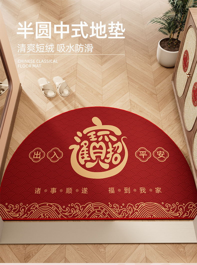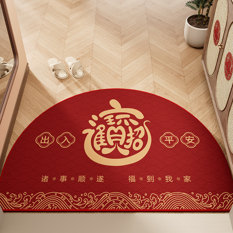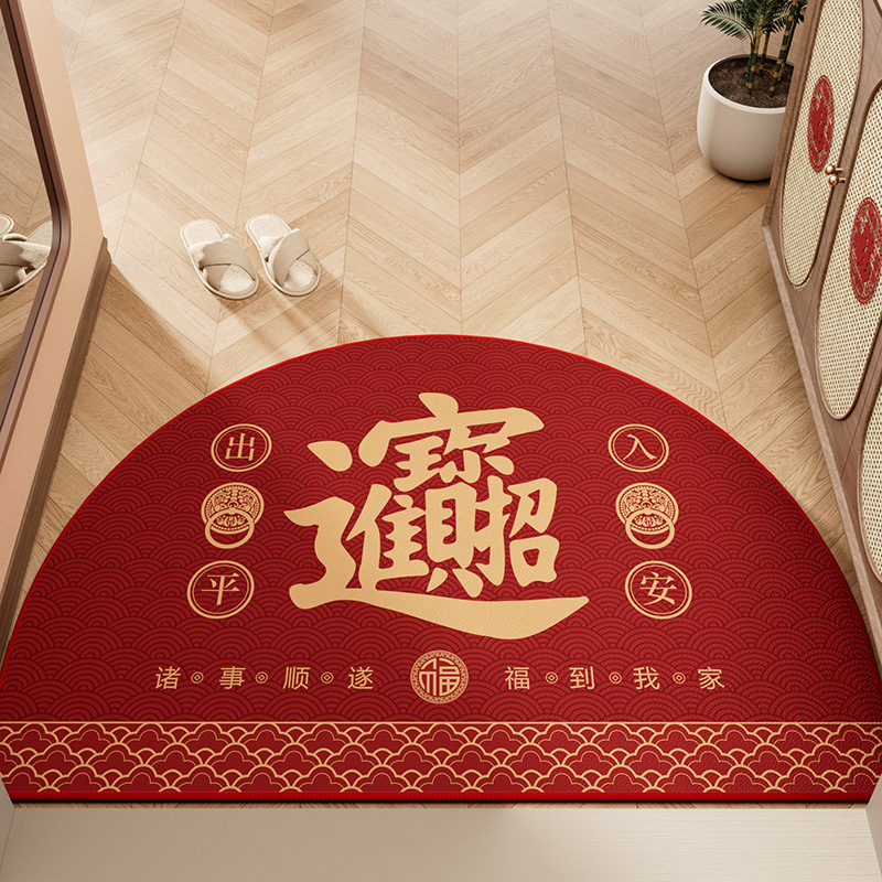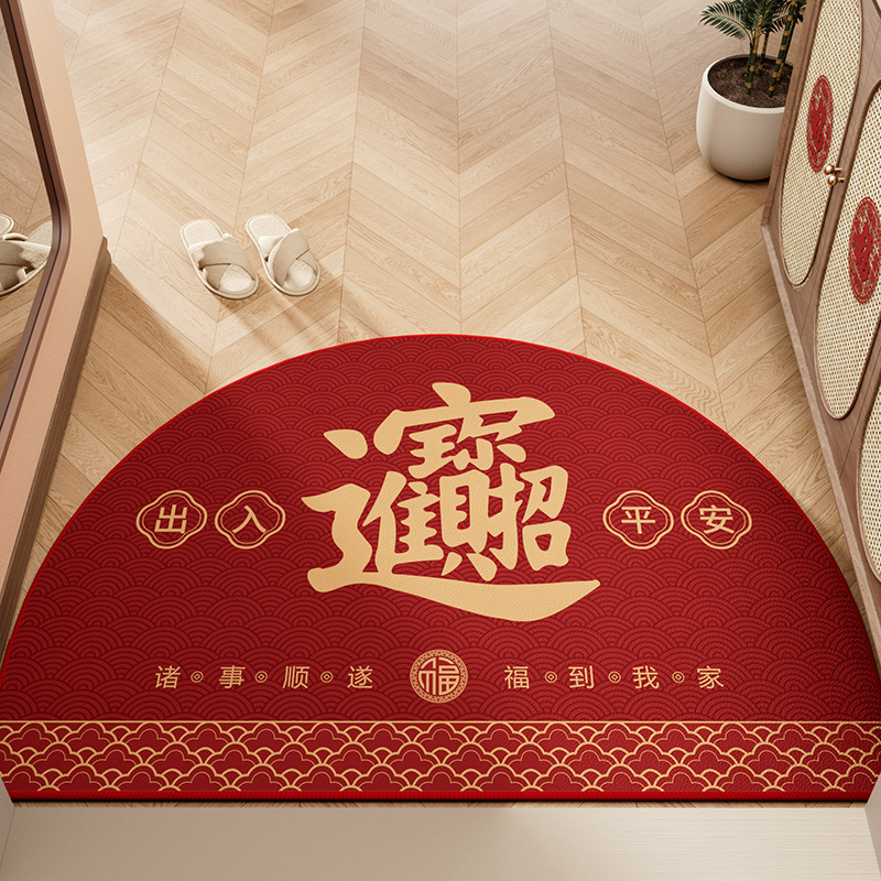 새로운 중국 스타일 빨간 문 매트 반올림 새해 축제 입구 문 매트 먼지 방지 미끄럼 방지 입구 매트 토양 마찰 발 매트