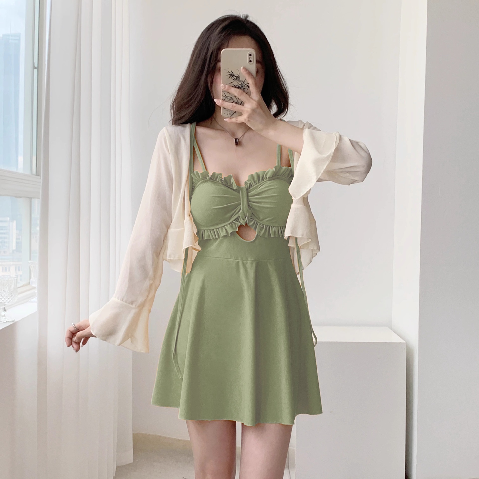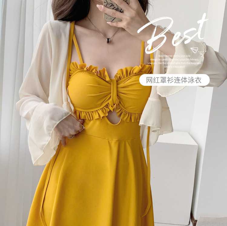 수영복 여성 스커트 스타일 보수적으로 슬림 통통 여성 플러스 사이즈 작은 가슴 한식 Ins 선스크린 블라우스 걸스 수영복