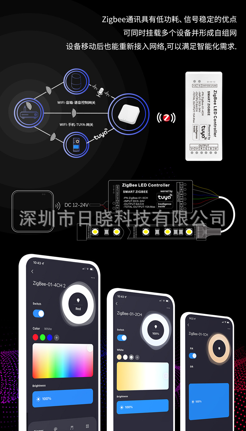 Led 스마트 음성 지그비 낙서 컨트롤러 12v 흑백 rgbcw 라이트 스트립 앱 컬러 디머 24v