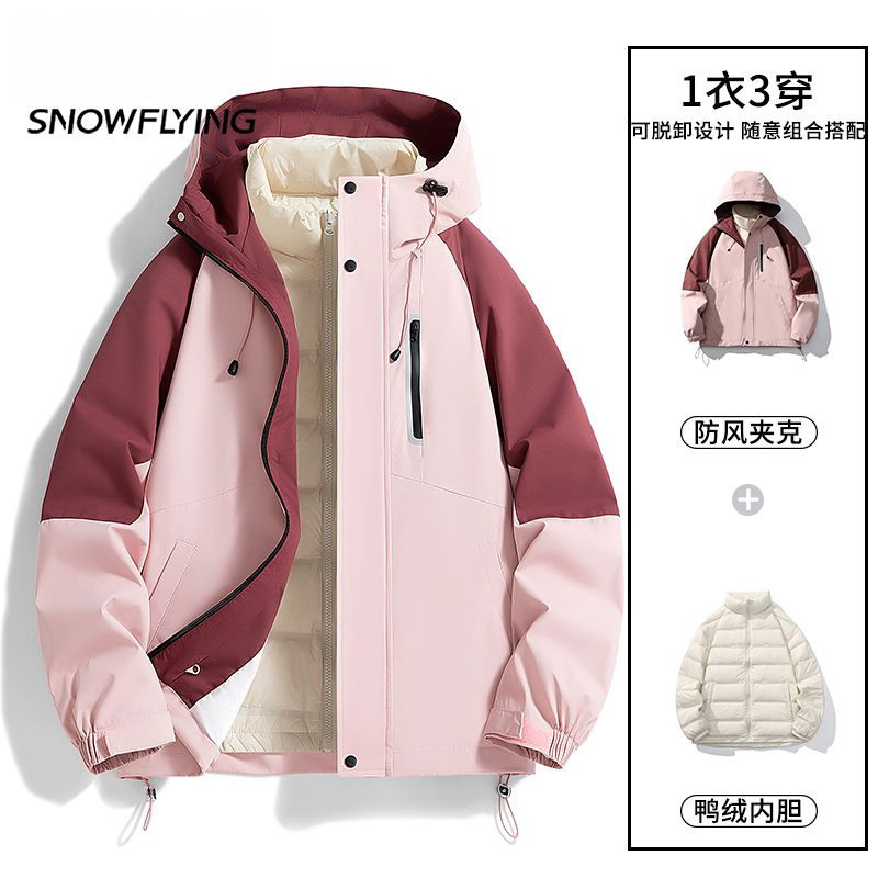 한 옷 세 착용 새로운 겨울 다운 재킷 커플 패션 바느질 야외 라이너 따뜻한 코트를 벗을 수 있습니다