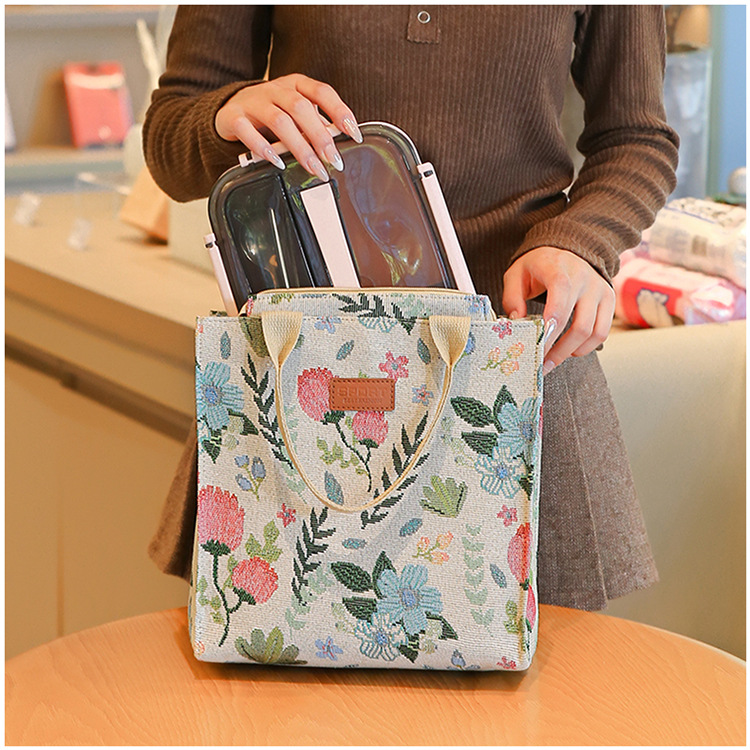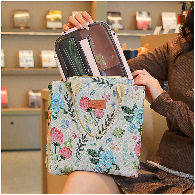 토트 백 캔버스 여성용 가방 알루미늄 호일 열 보존 냉장 핸드백 대용량 작업 핸드백 엄마 핸드백