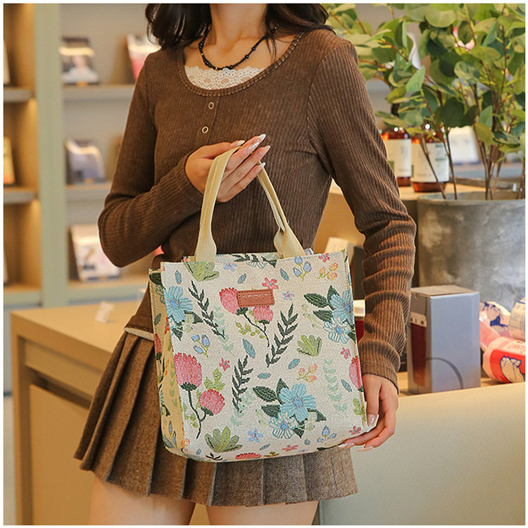 토트 백 캔버스 여성용 가방 알루미늄 호일 열 보존 냉장 핸드백 대용량 작업 핸드백 엄마 핸드백스토어 가기