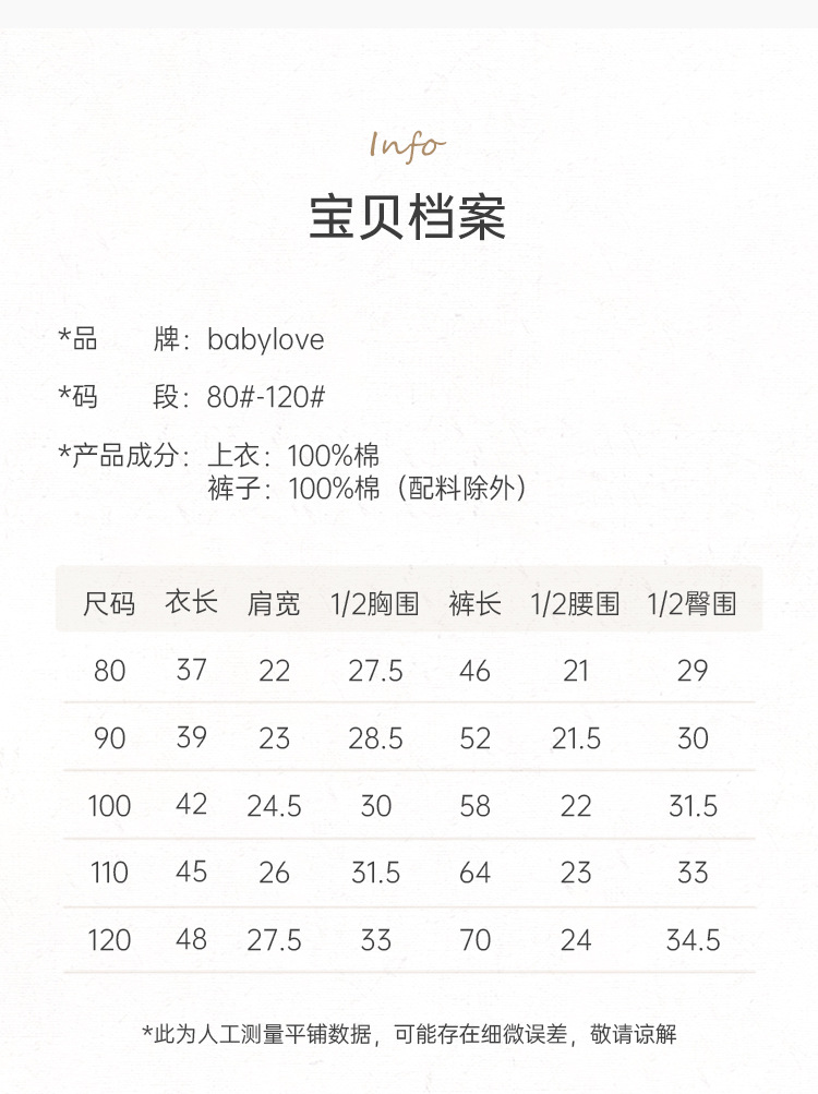 [클리어런스 컬렉션] babylove 베이비 속옷 세트 봄 여름 베이비 상의와 바지 스플릿 홈웨어스토어 가기