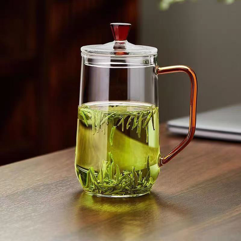 뚜껑이 있는 대용량 차 유리컵, 높은 붕규산 손잡이가 있는 마시는 컵, 녹차컵, 찻잔스토어 가기