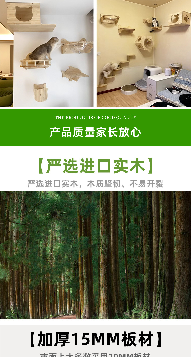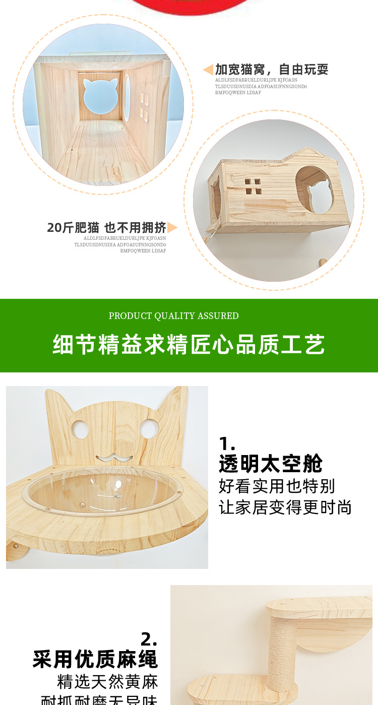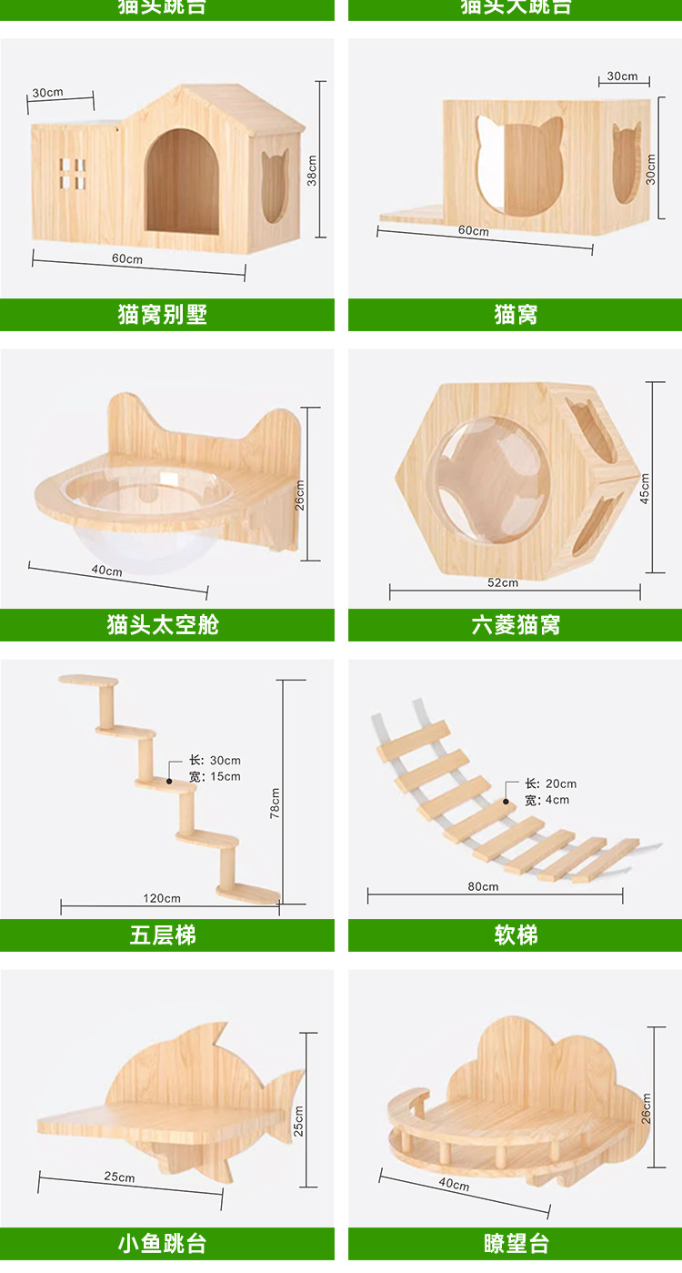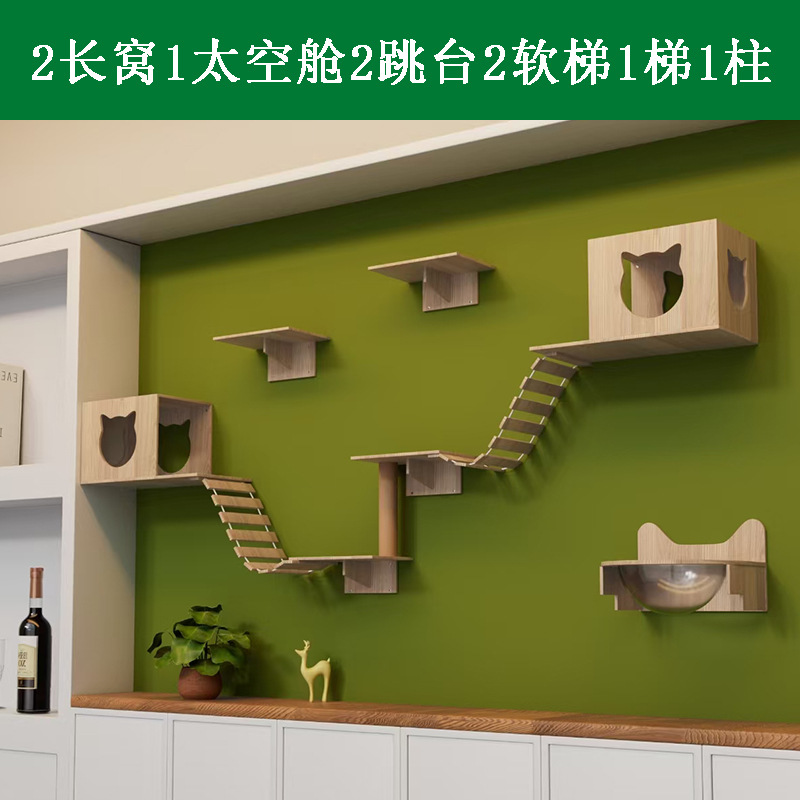 벽에 장착 된 고양이 등반 랙 작은 고양이 랙 벽 단단한 나무 고양이 벽 점프 보드 고양이 전망 고양이 둥지 해먹