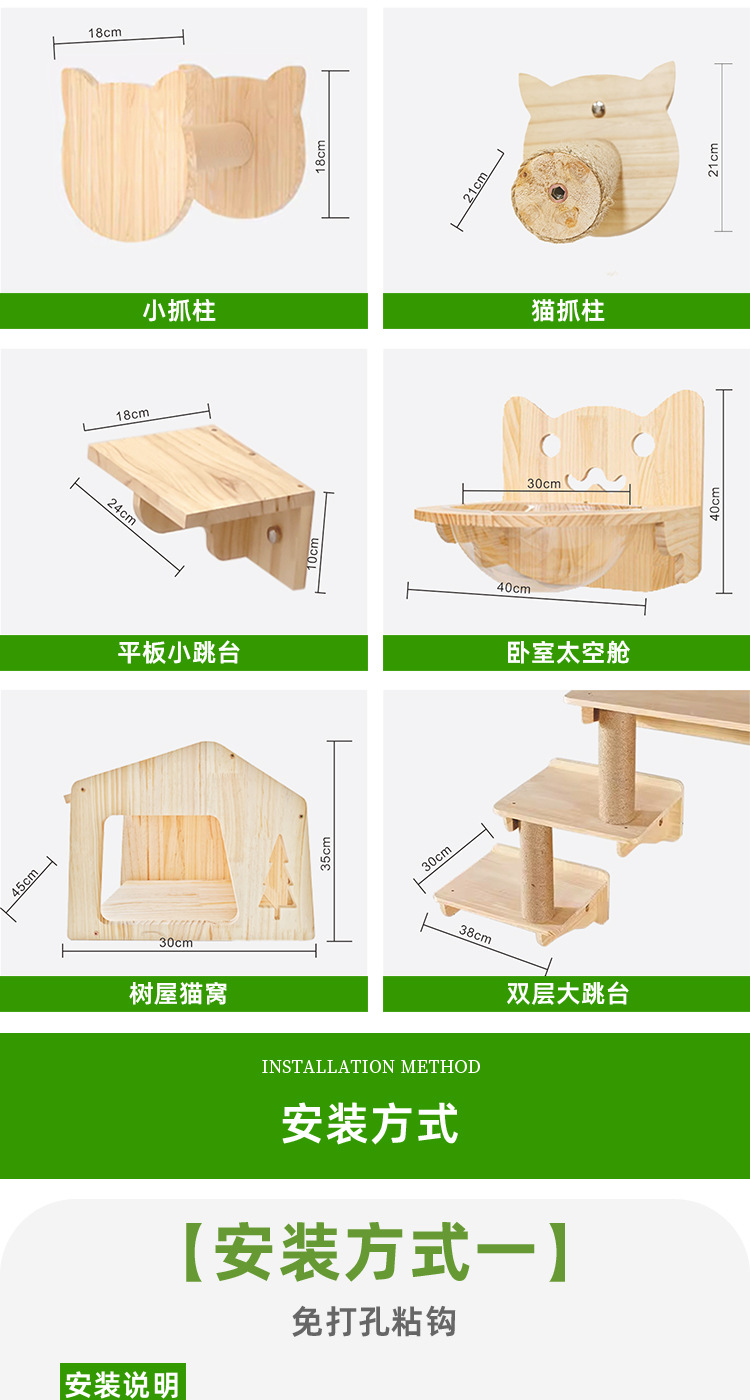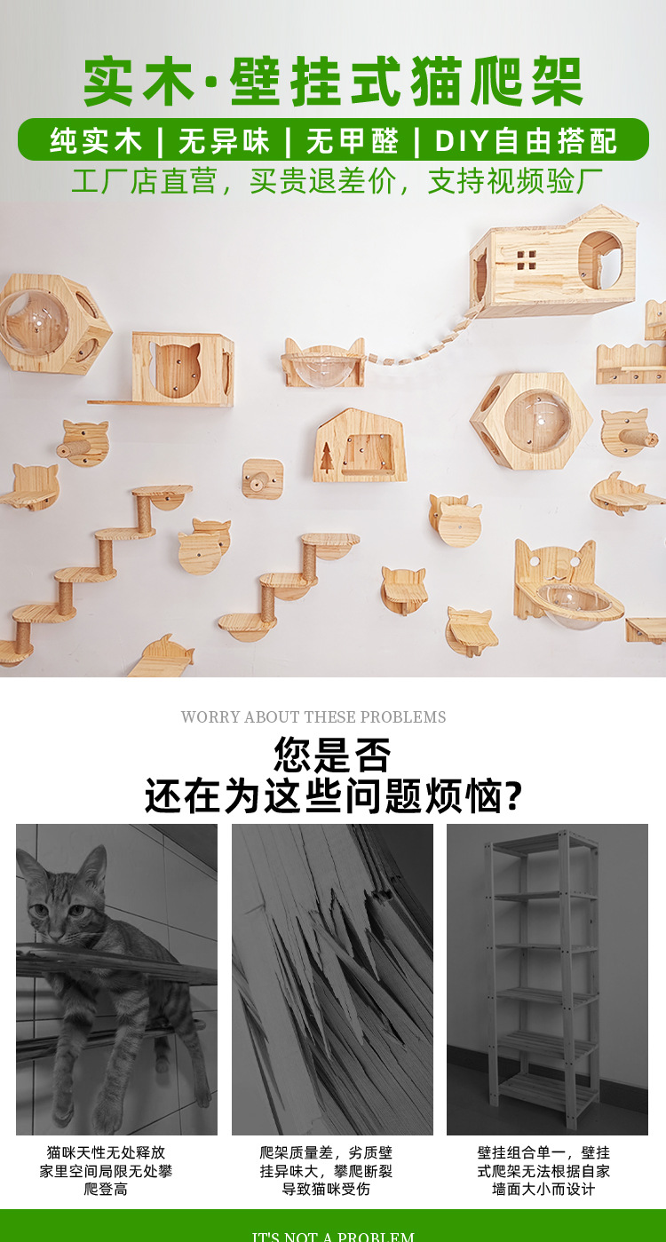 벽에 장착 된 고양이 등반 랙 작은 고양이 랙 벽 단단한 나무 고양이 벽 점프 보드 고양이 전망 고양이 둥지 해먹스토어 가기