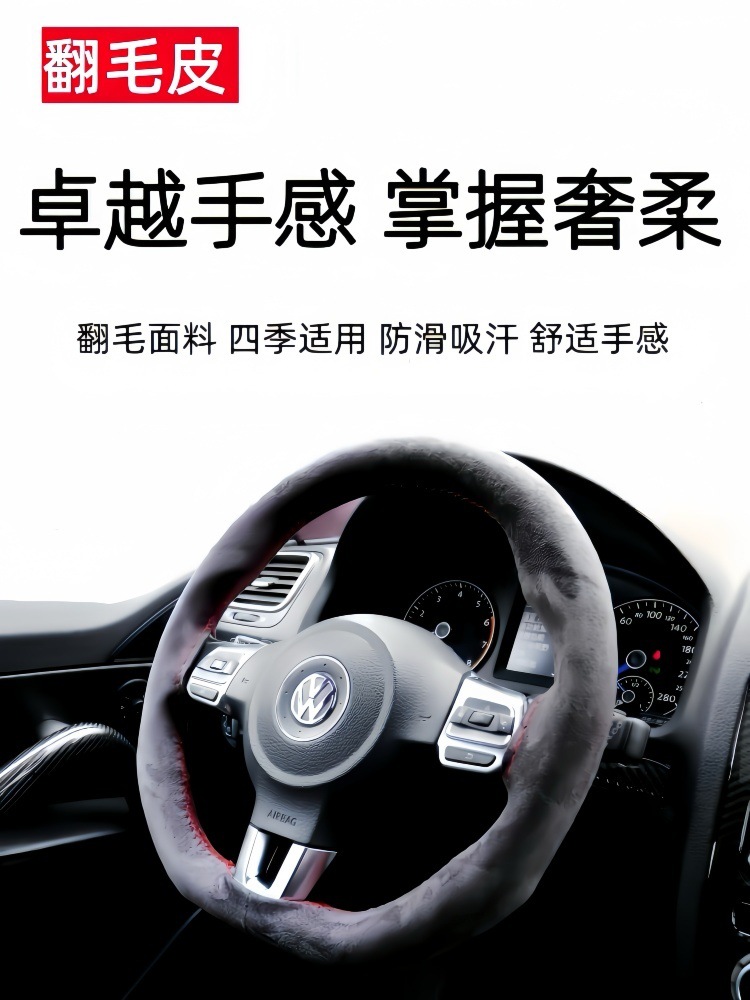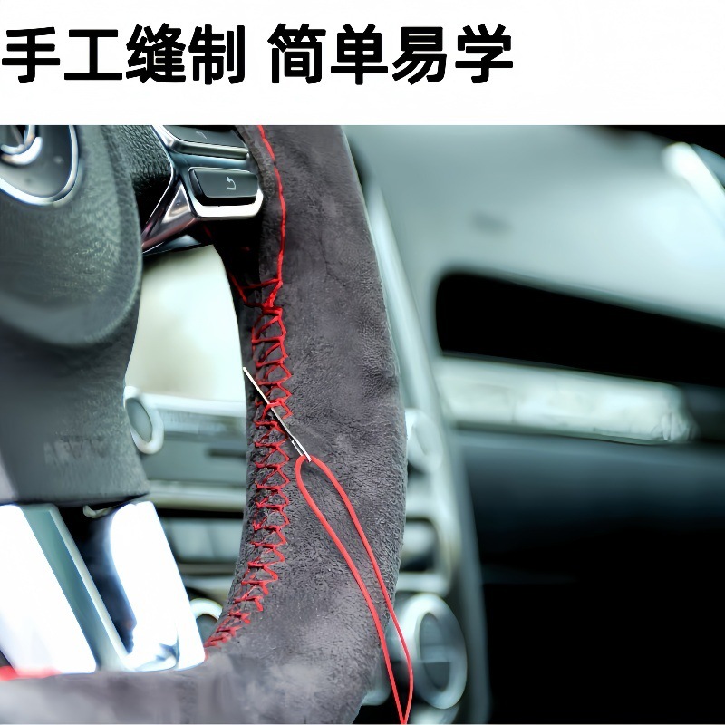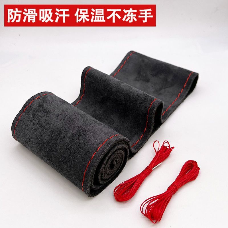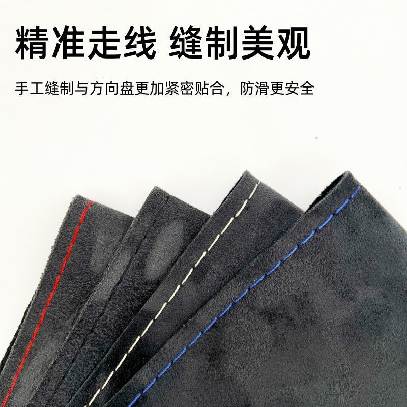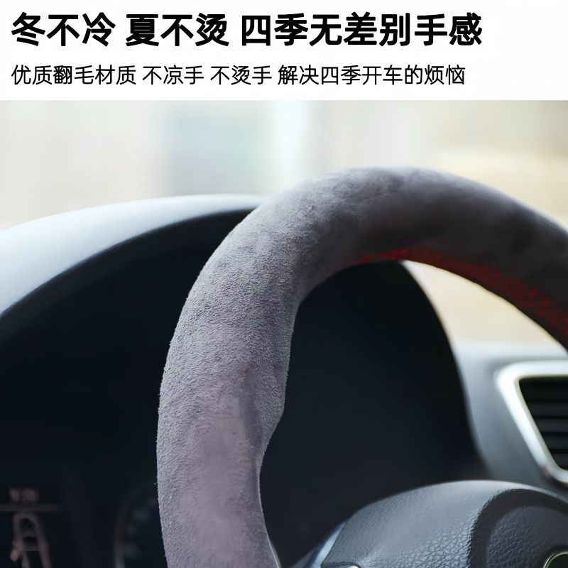 자동차 스티어링 휠 커버 손으로 스티치 스웨이드 스웨이드 사계절 유니버설 플러시 핸들 커버 미끄럼 방지 땀 흡수 핸들 커버