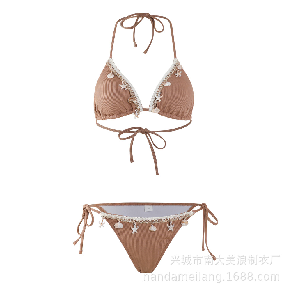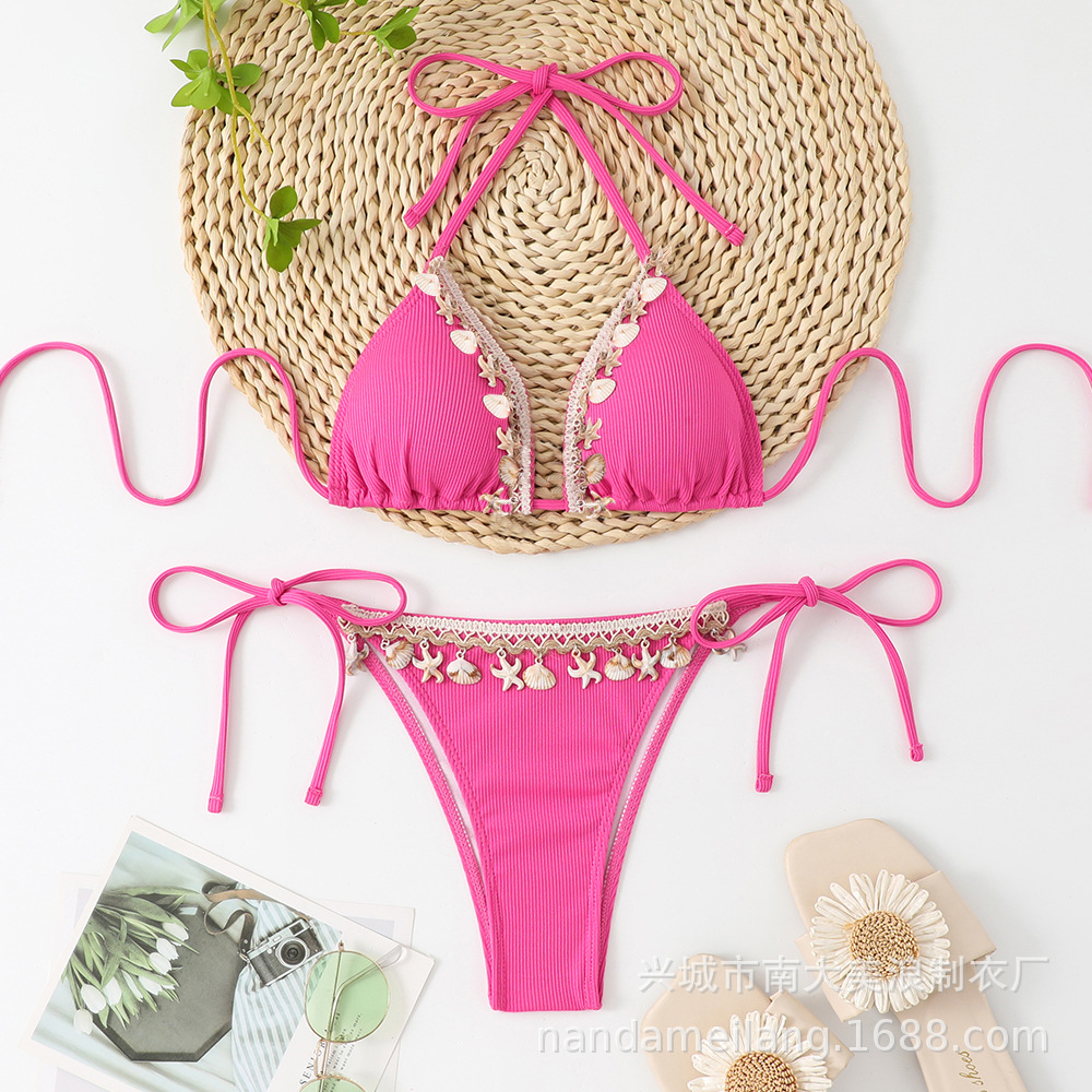 유럽과 미국의 수영복 여자 2025 새로운 레이스 업 넥 트라이앵글 컵 비치 섹시 수영복 아마존 비키니 쉘
