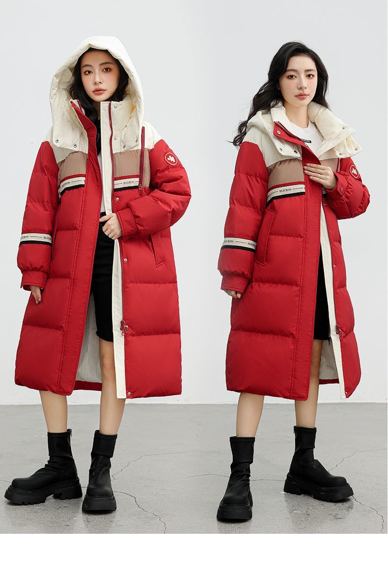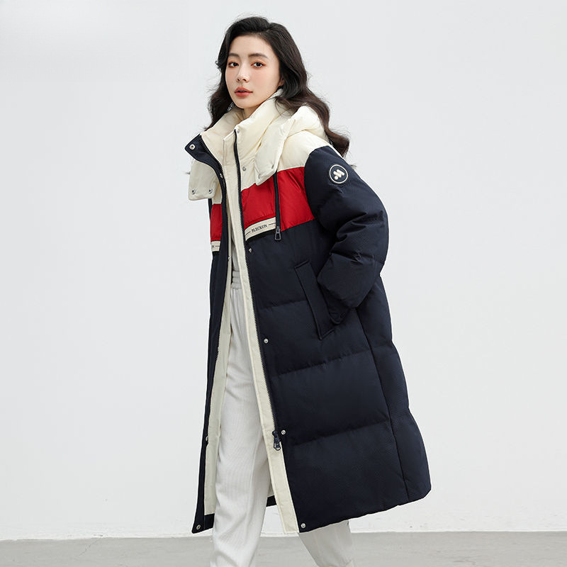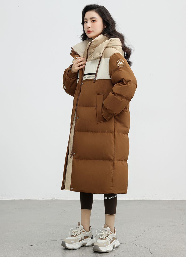 겨울 따뜻한 다운 재킷 여자 2023 겨울 새로운 중간 길이 커플 컬러 매칭 패션 올 매치 모자 무릎 위로 두껍게스토어 가기