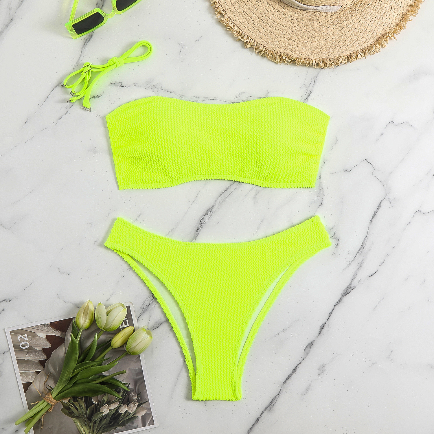 2025 새로운 비키니 숙녀 분할 수영복 솔리드 컬러 스네이크 천 다색 스트랩리스 수영복 도매 W25050스토어 가기