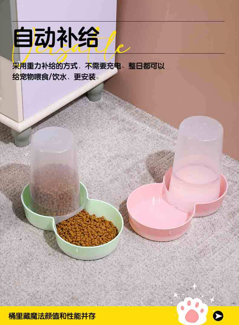 애완 동물 자동 식수 피더 유럽 스타일 애완 동물 물 식품 통합 컵 2 대 1 물 식품 이중 사용 고양이와 개 곡물 저장 배럴스토어 가기