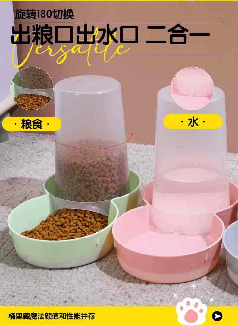 애완 동물 자동 식수 피더 유럽 스타일 애완 동물 물 식품 통합 컵 2 대 1 물 식품 이중 사용 고양이와 개 곡물 저장 배럴