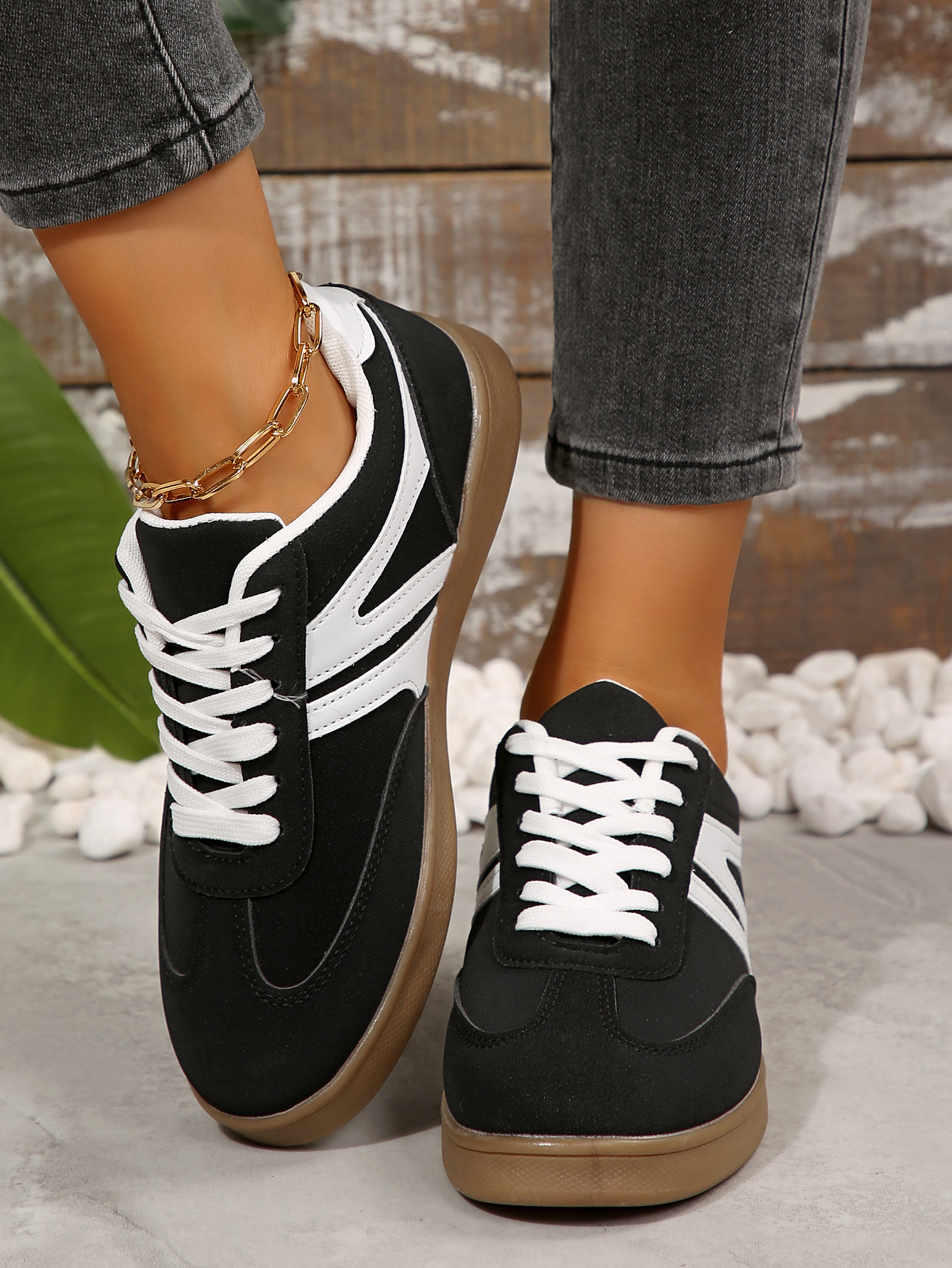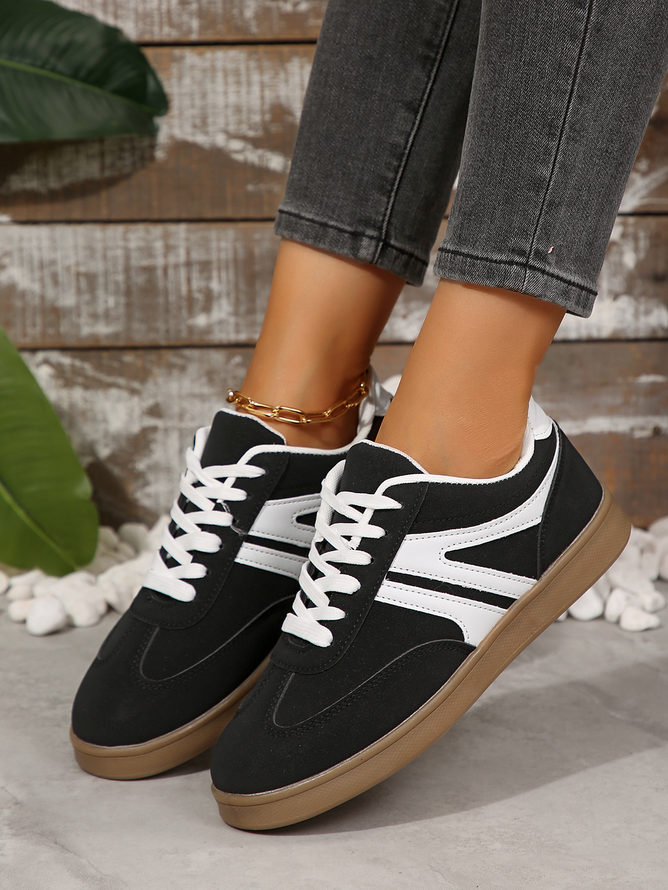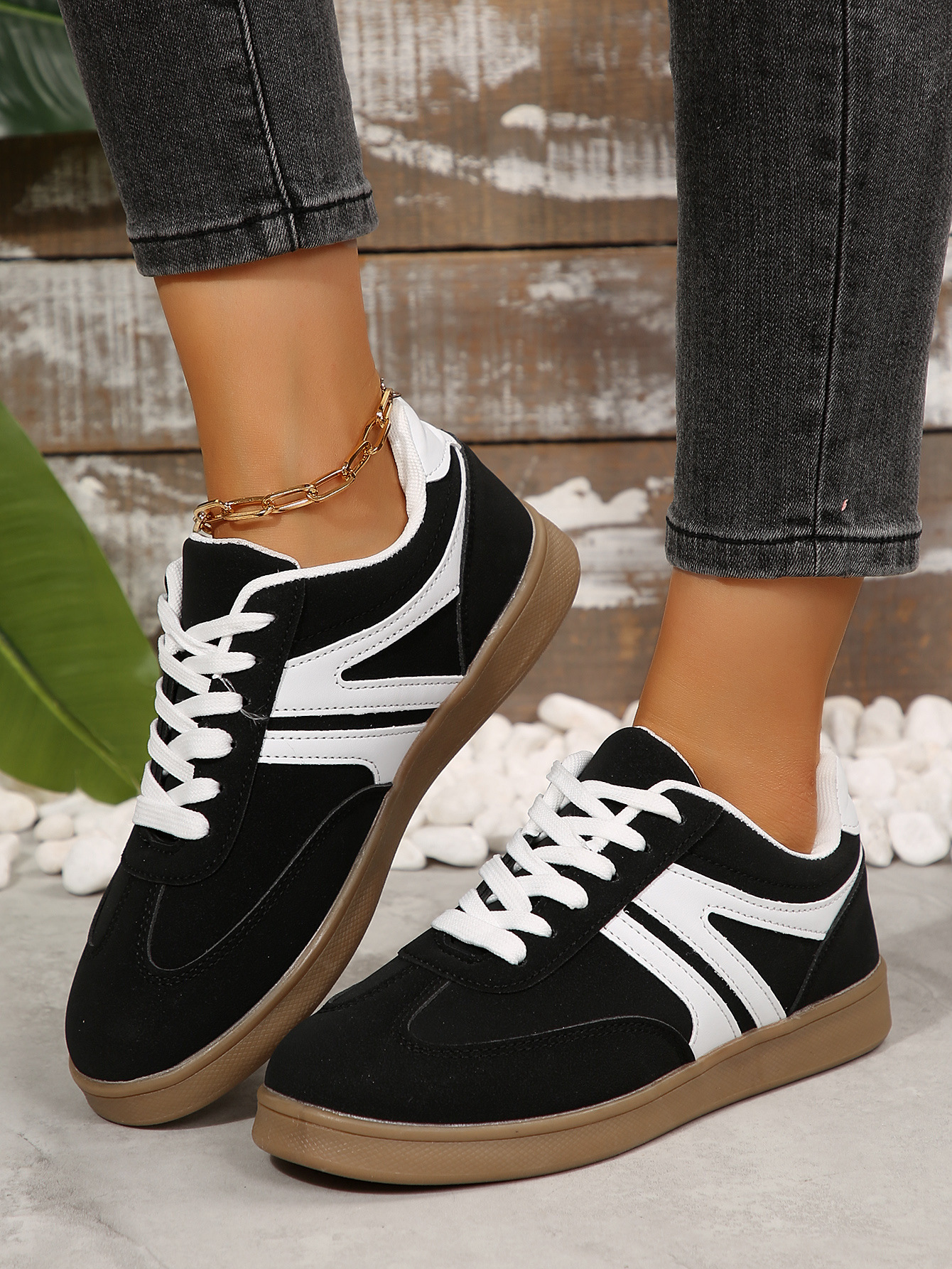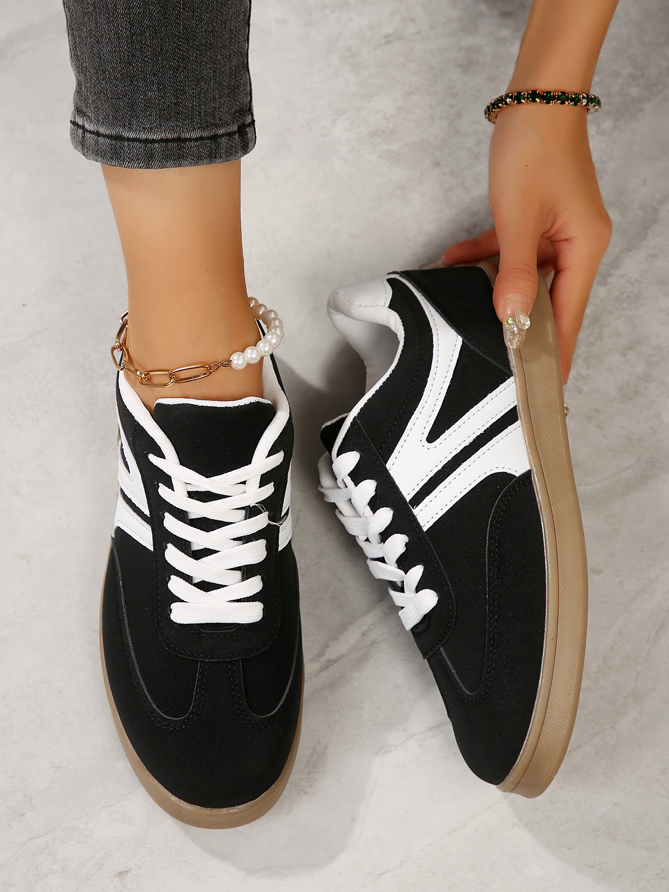 국경 간 대외 무역 2025 플러스 사이즈 화이트 슈즈 여성 레트로 캐주얼 올 매치 패션 라운드 토 스포츠 러닝 플랫 스니커즈