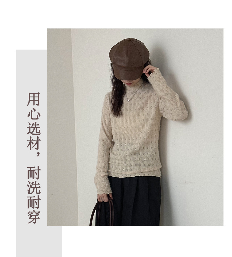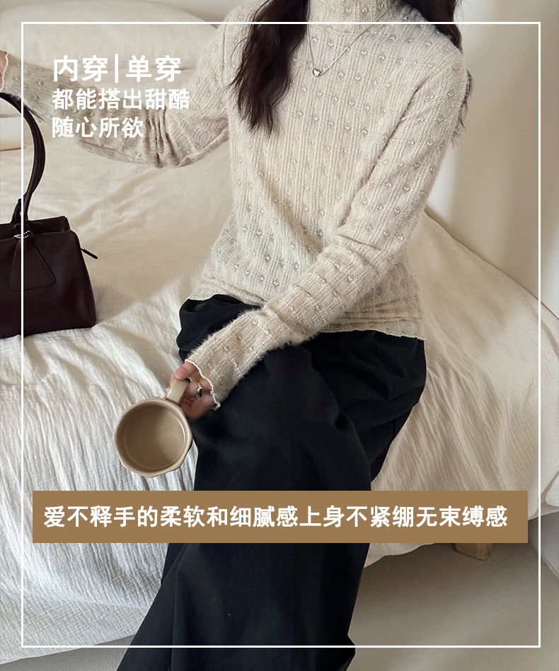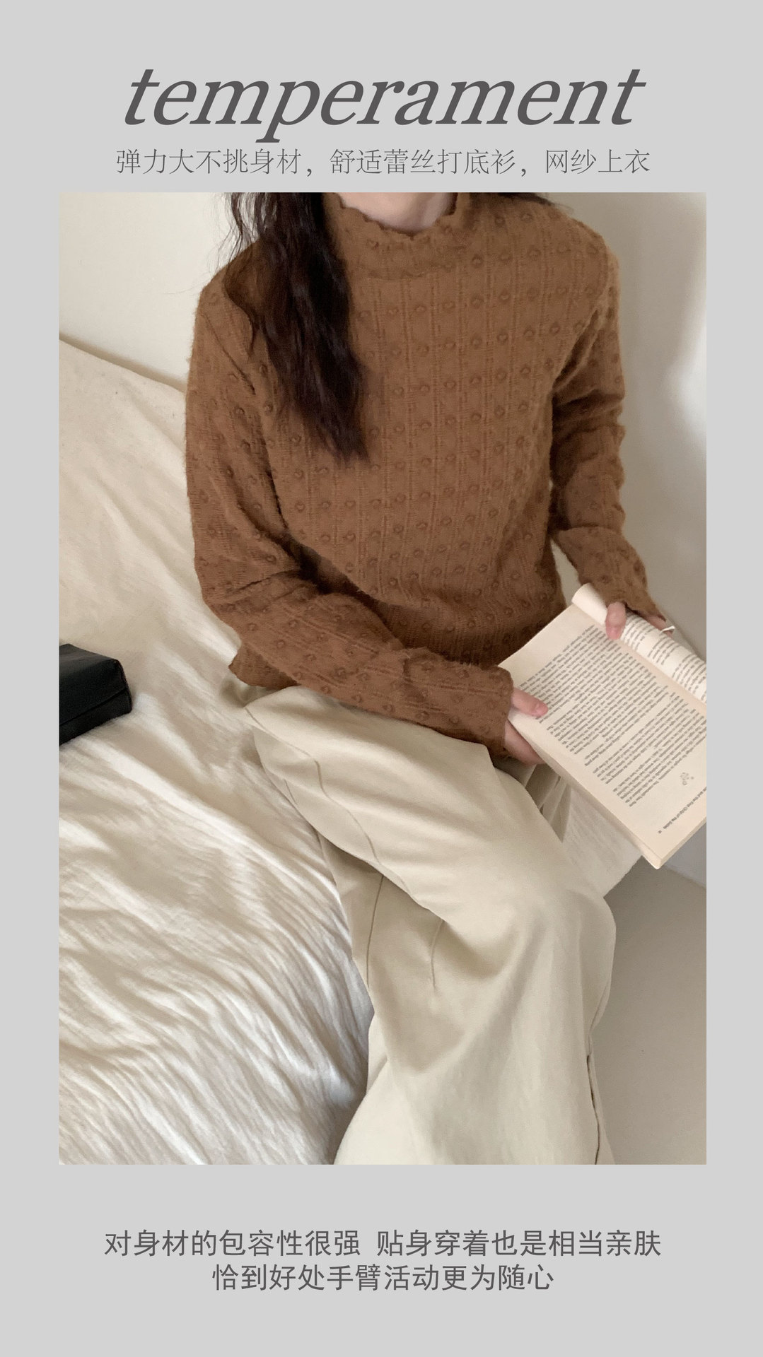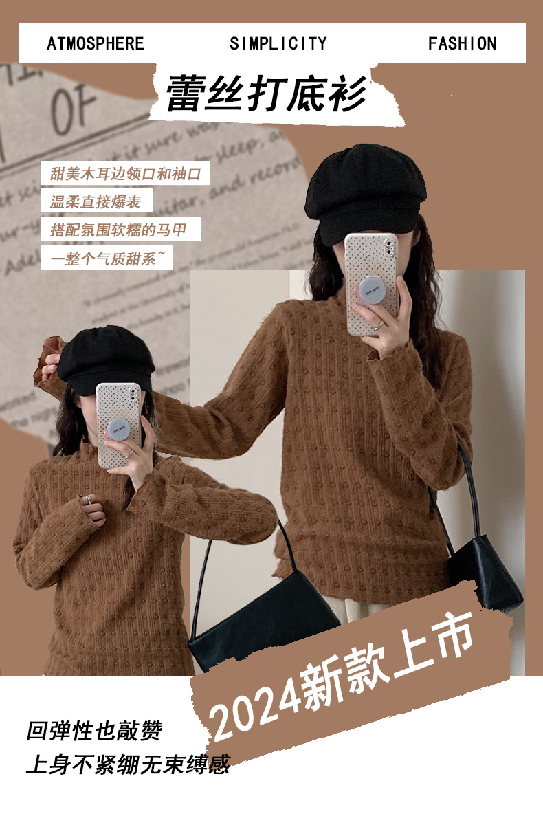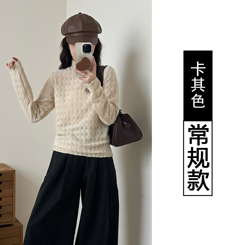 샌딩 레이스베이스 셔츠 여성의 가을과 겨울 2024 새로운 스타일 서양식 하프 하이 칼라 내부 셔츠 긴팔 니트 탑