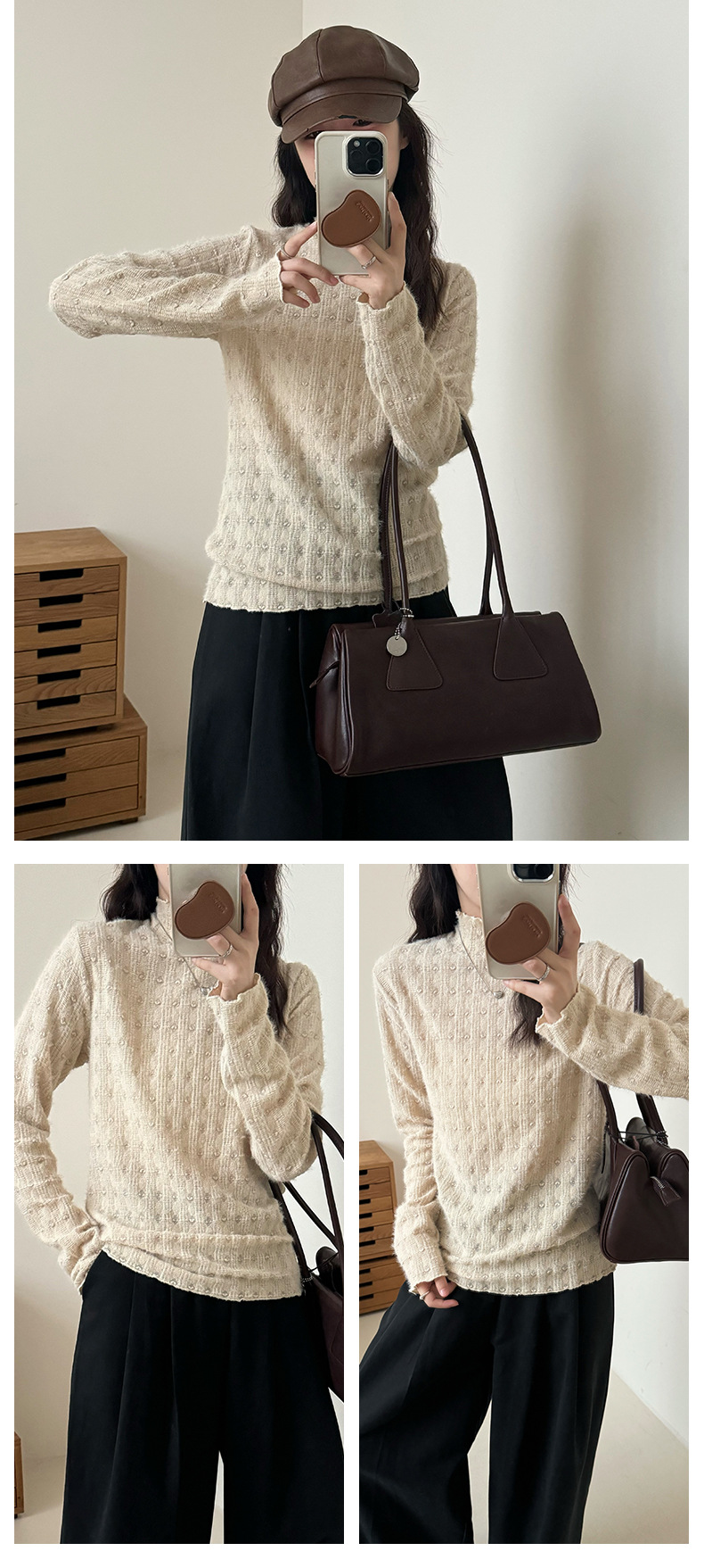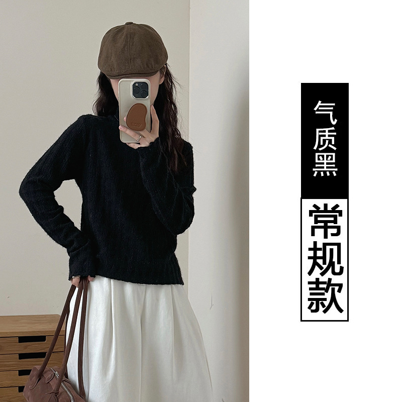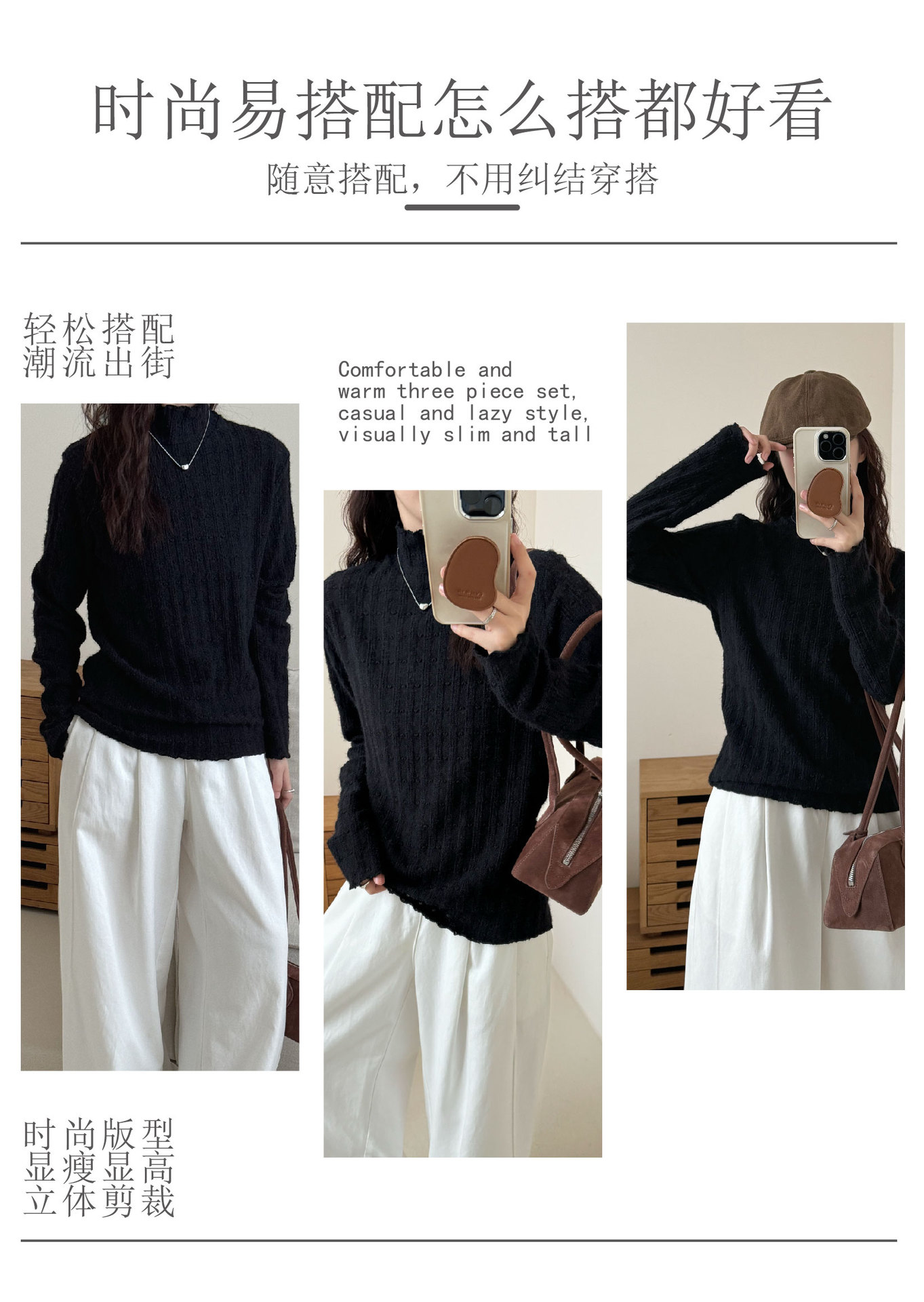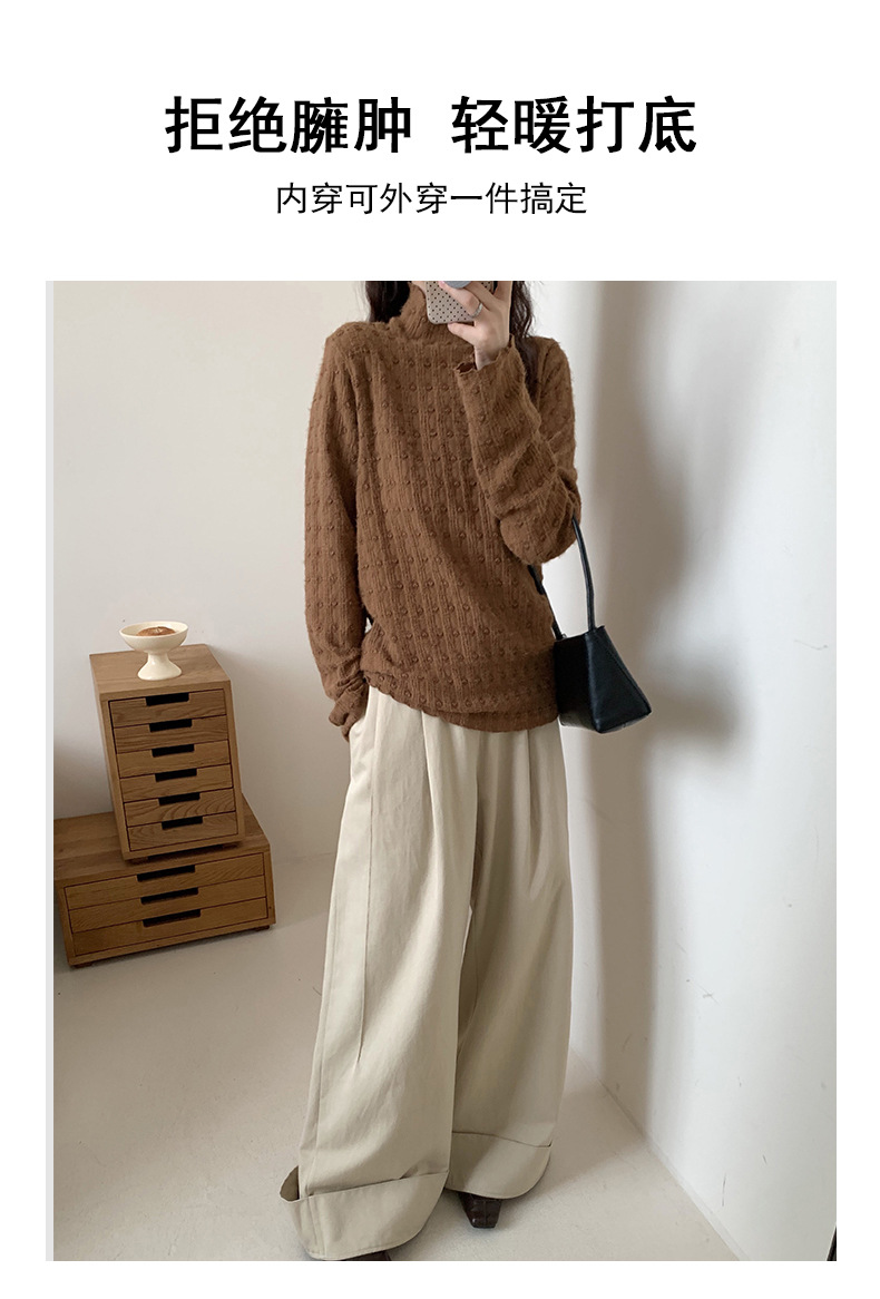 샌딩 레이스베이스 셔츠 여성의 가을과 겨울 2024 새로운 스타일 서양식 하프 하이 칼라 내부 셔츠 긴팔 니트 탑