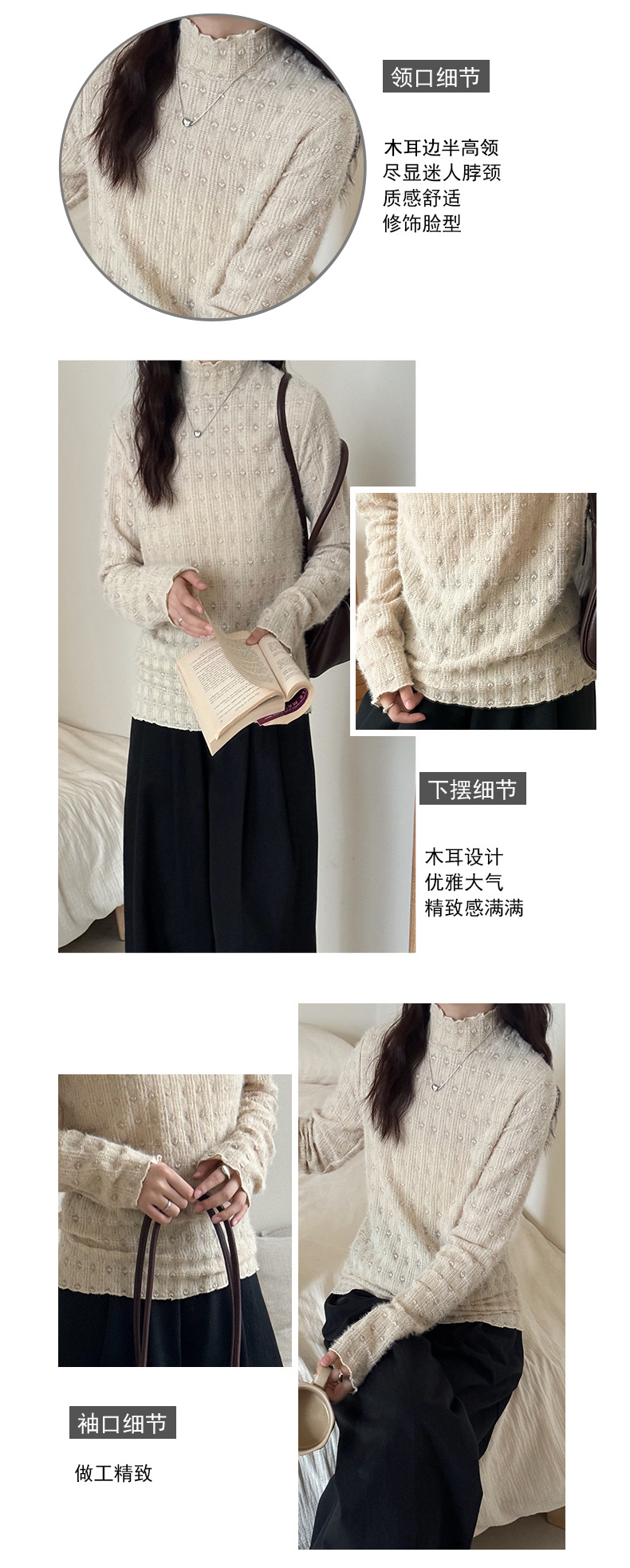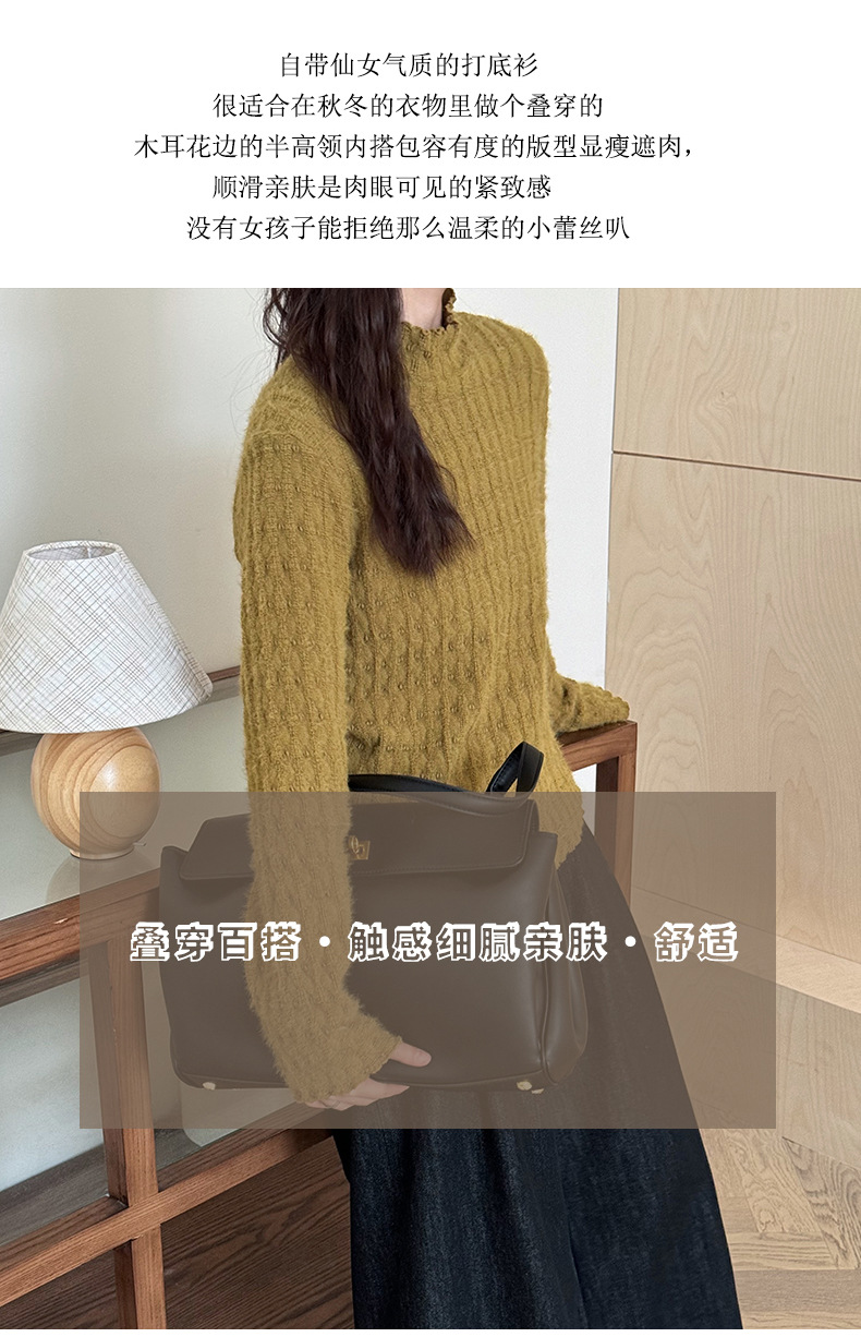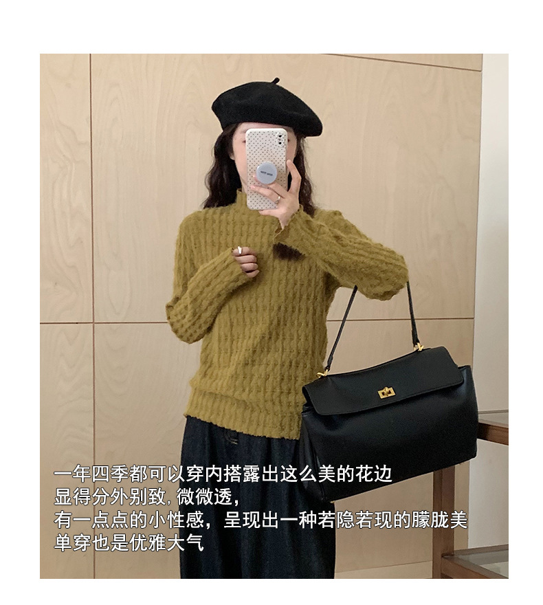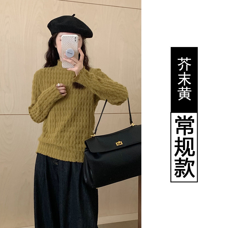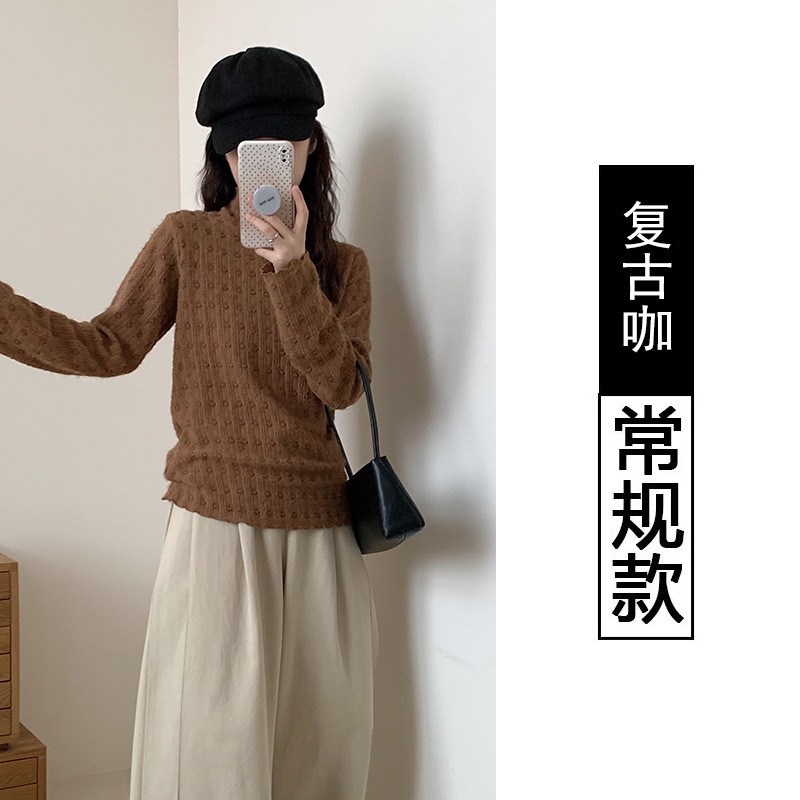 샌딩 레이스베이스 셔츠 여성의 가을과 겨울 2024 새로운 스타일 서양식 하프 하이 칼라 내부 셔츠 긴팔 니트 탑스토어 가기