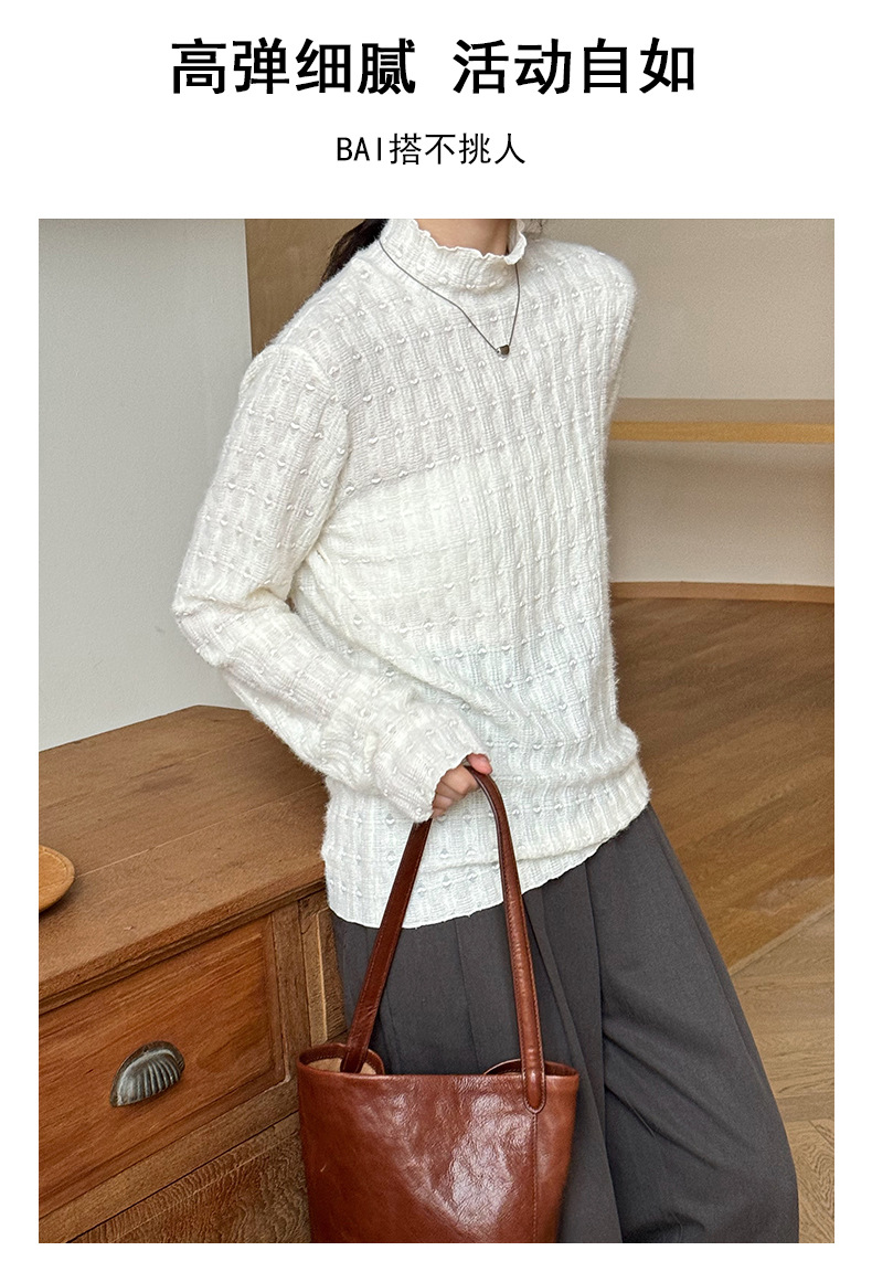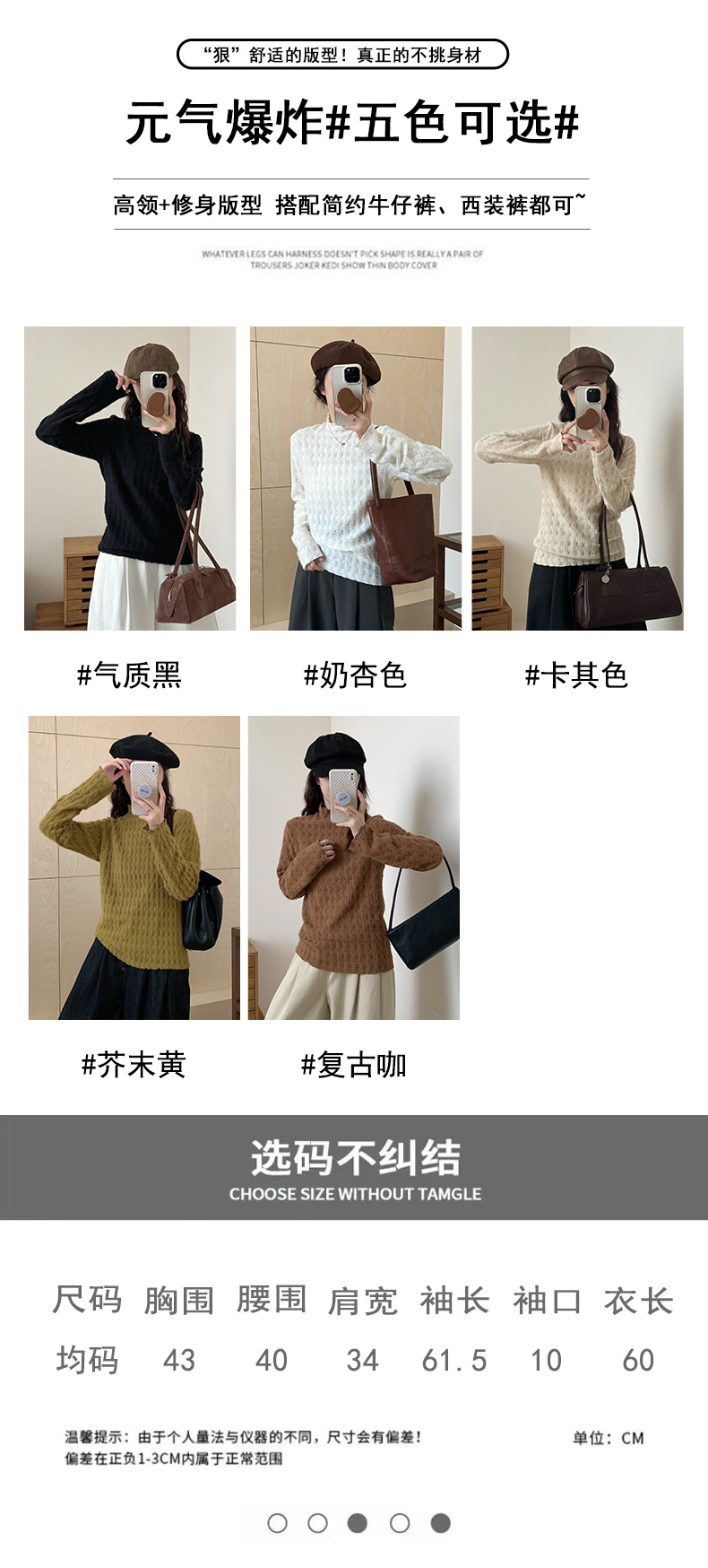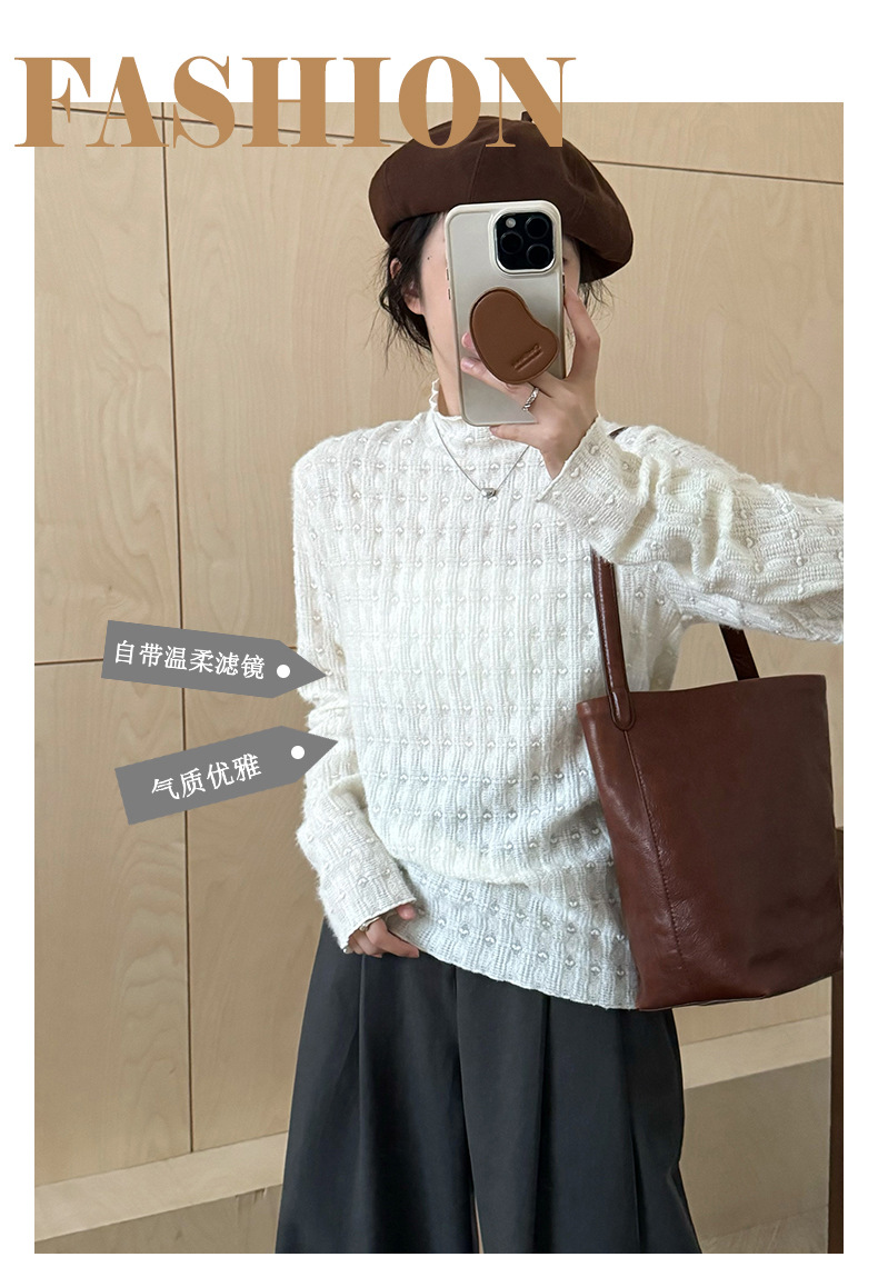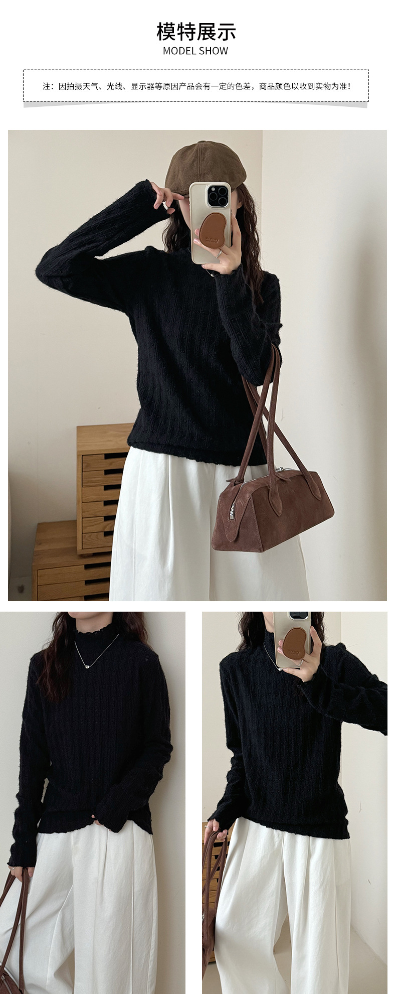 샌딩 레이스베이스 셔츠 여성의 가을과 겨울 2024 새로운 스타일 서양식 하프 하이 칼라 내부 셔츠 긴팔 니트 탑스토어 가기