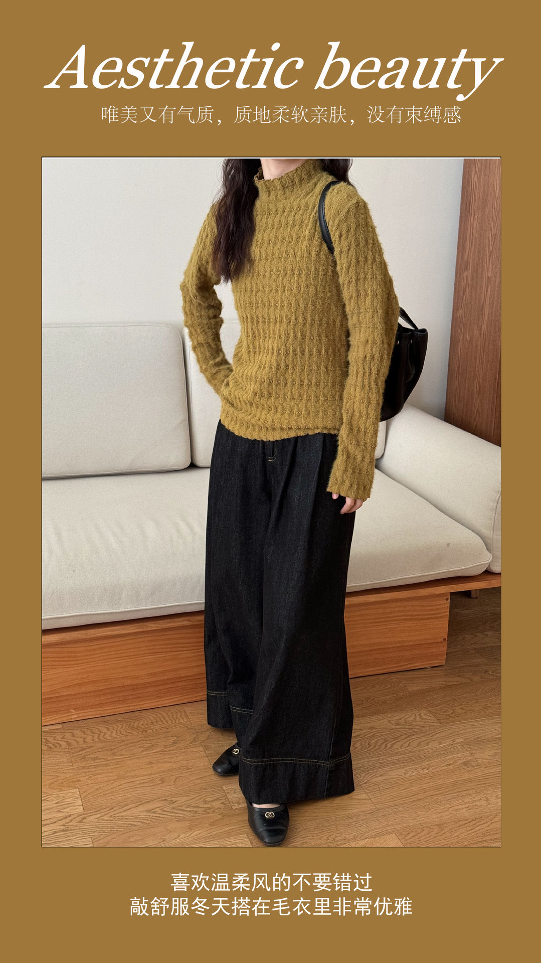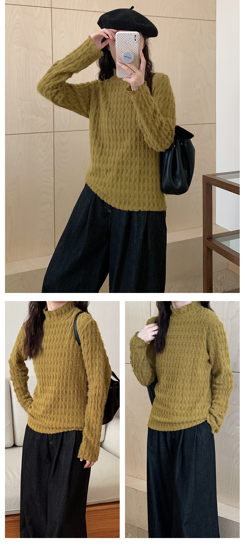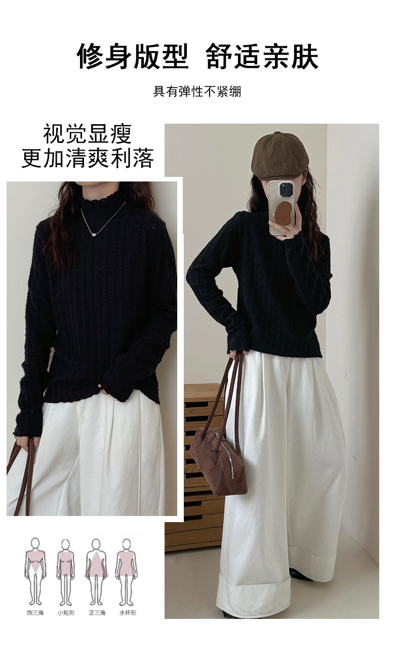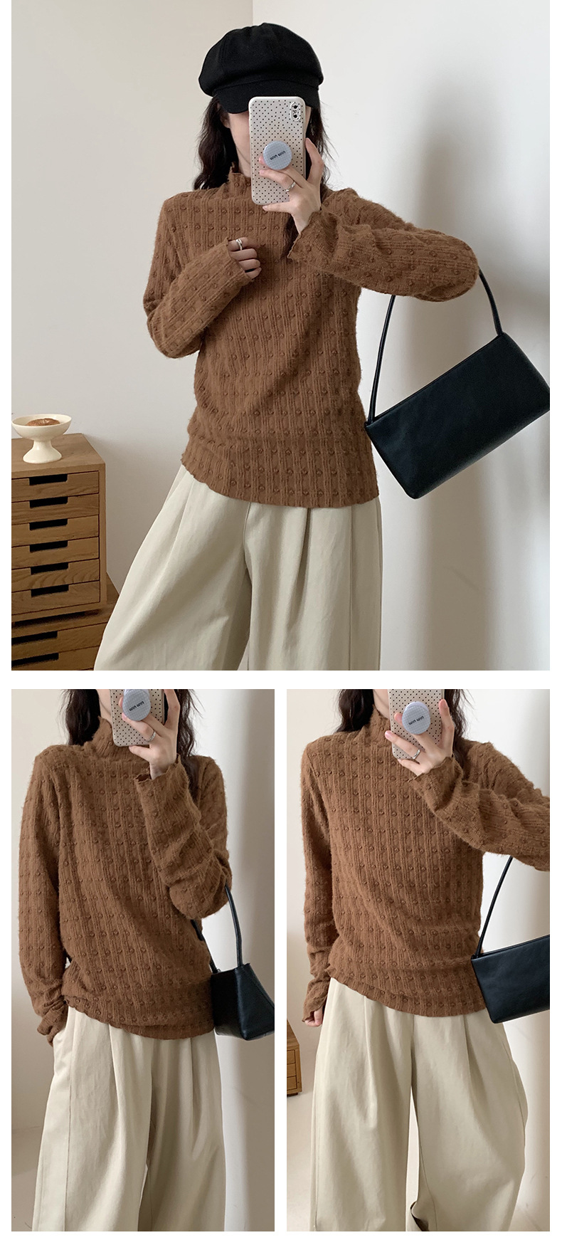 샌딩 레이스베이스 셔츠 여성의 가을과 겨울 2024 새로운 스타일 서양식 하프 하이 칼라 내부 셔츠 긴팔 니트 탑스토어 가기