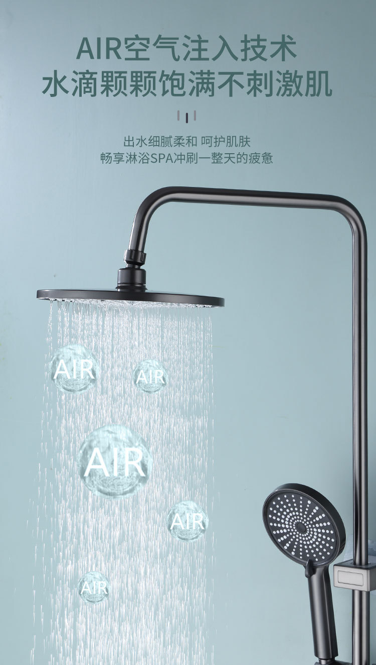 공장 도매 총 회색 샤워 샤워 3 단 세트 가정용 구리 물 도금 회색 욕실 비 부스터 샤워