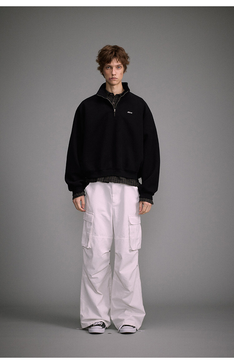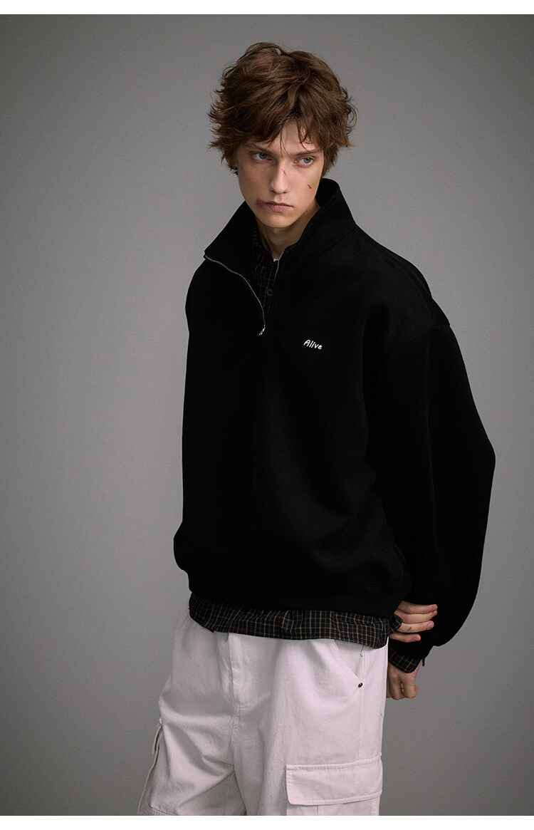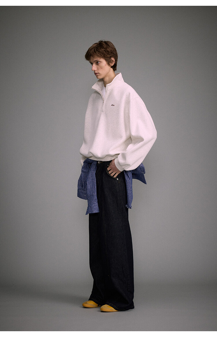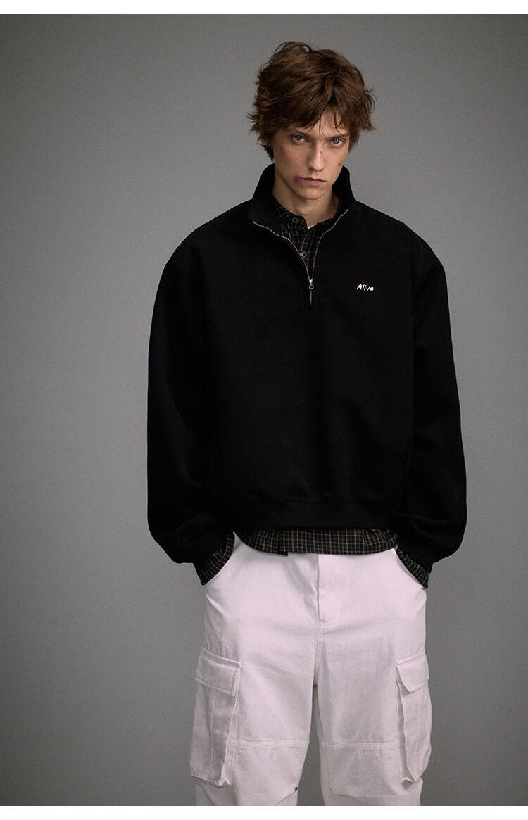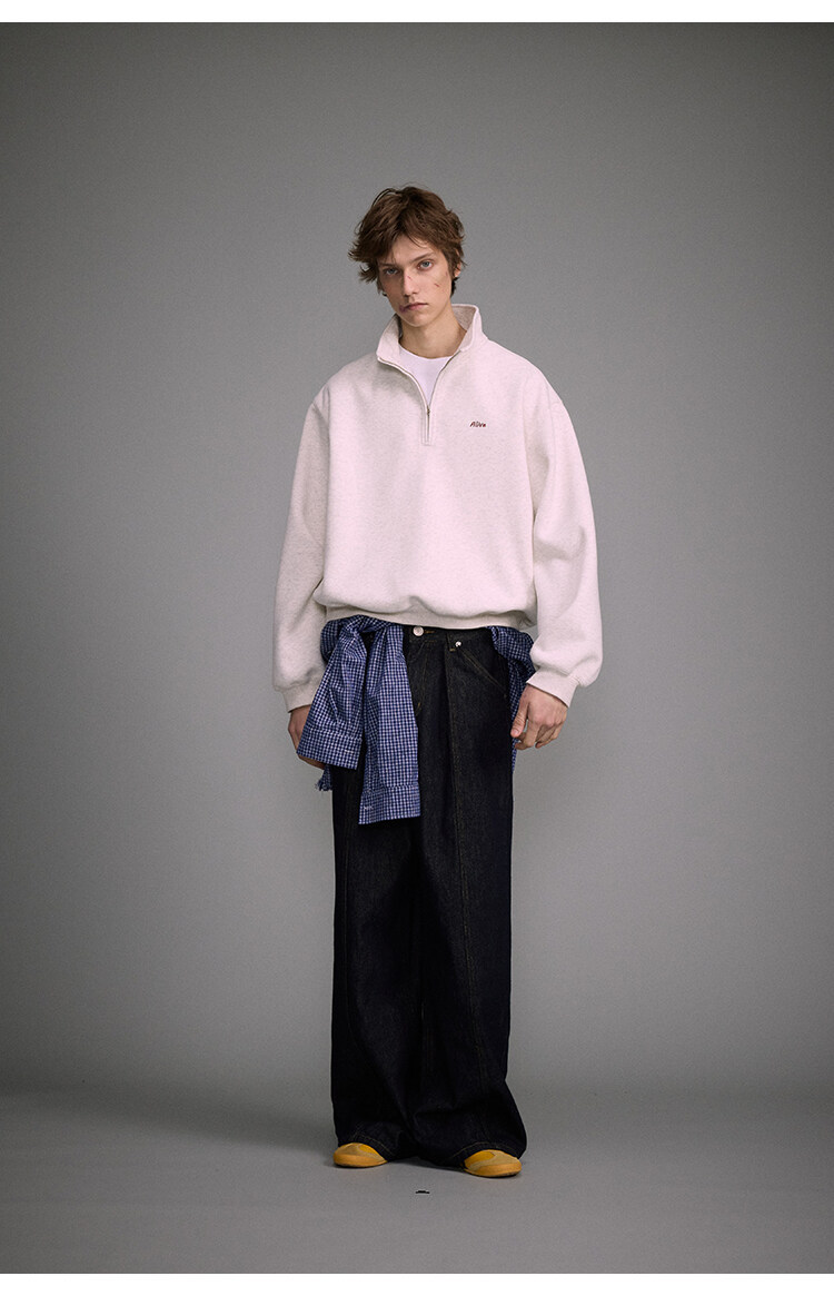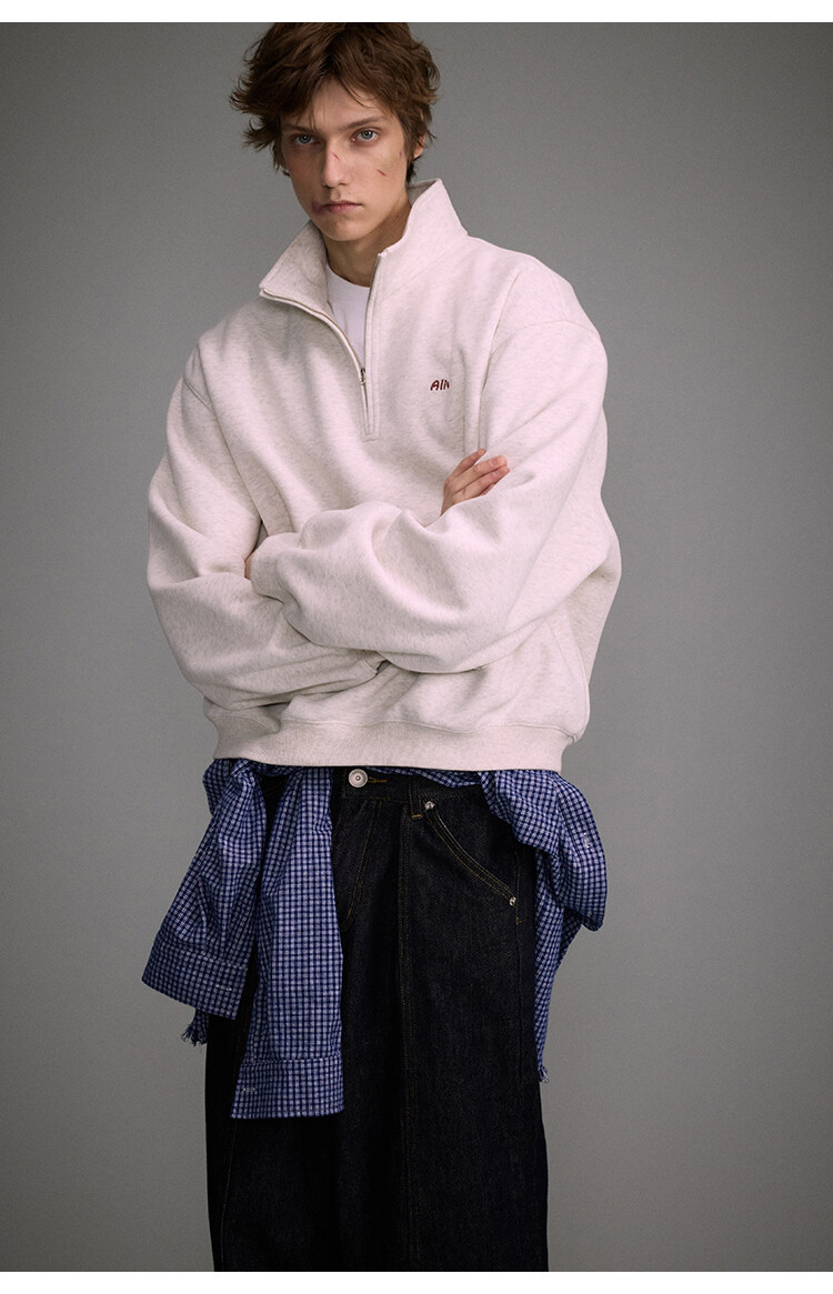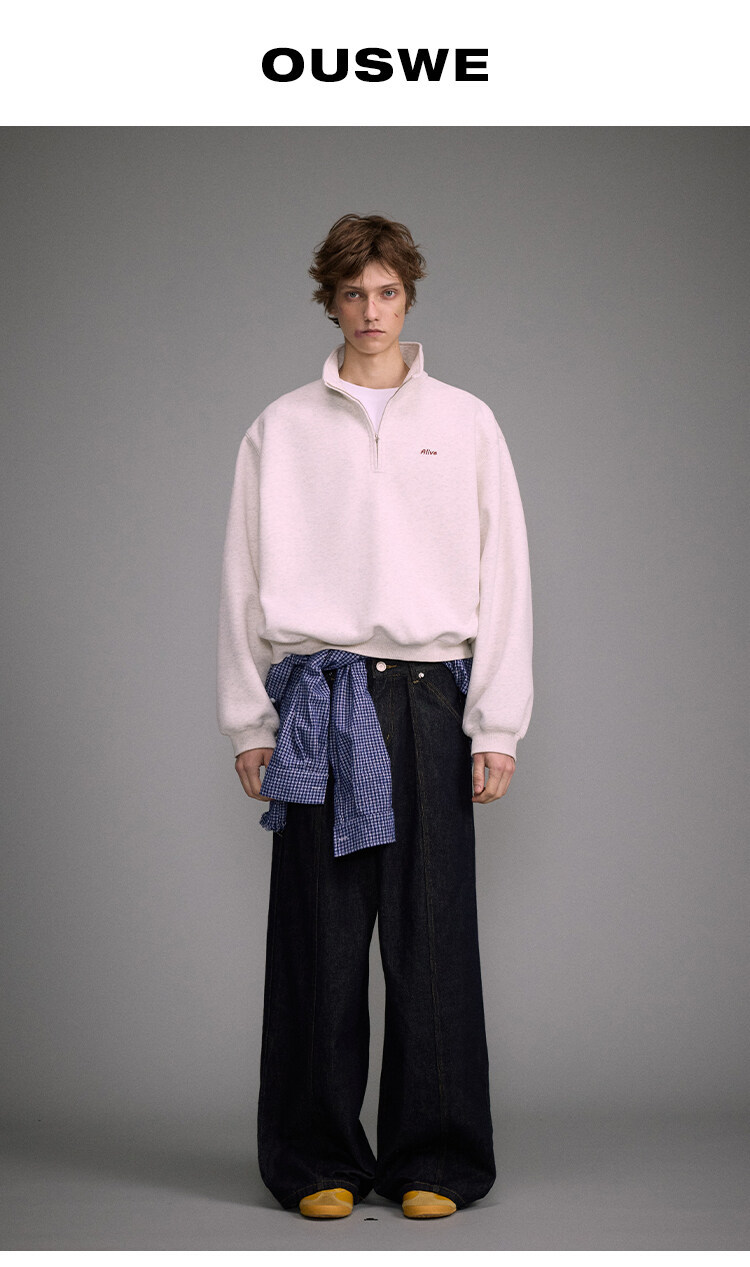 원피스 도로 고대 2025 봄 새로운 미국 패션 브랜드 레트로 솔리드 컬러 짧은 하프 오픈 칼라 수직 칼라 풀오버 남성 스웨터
