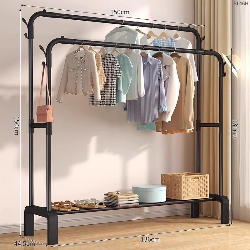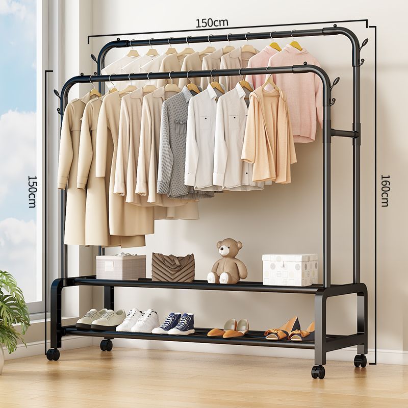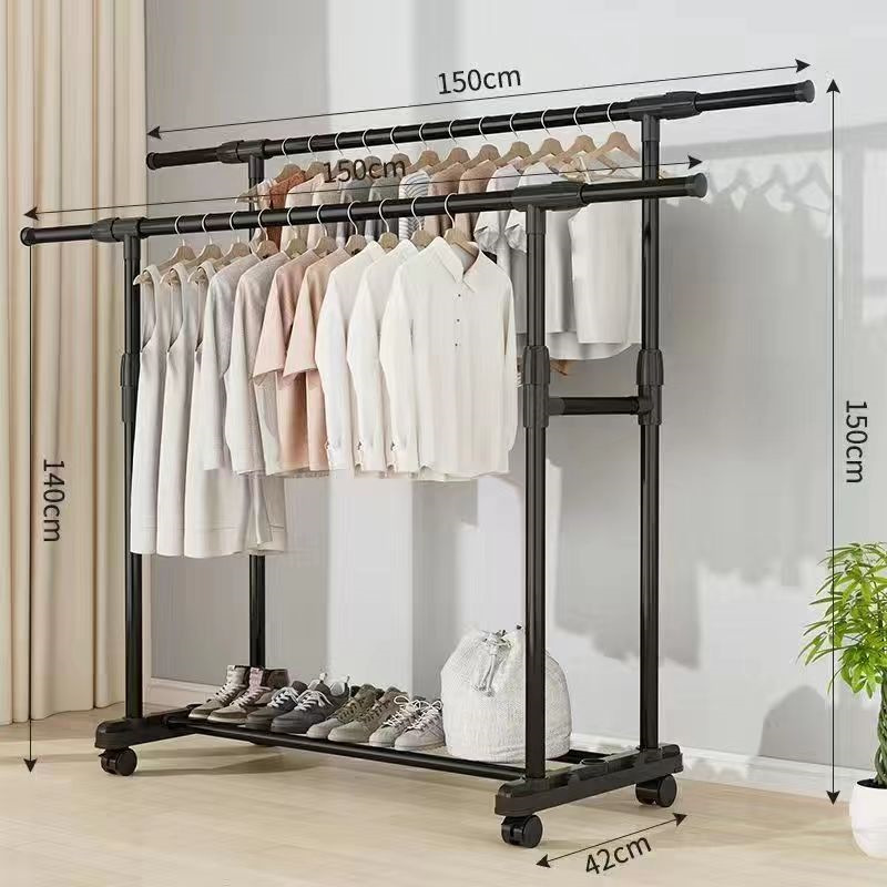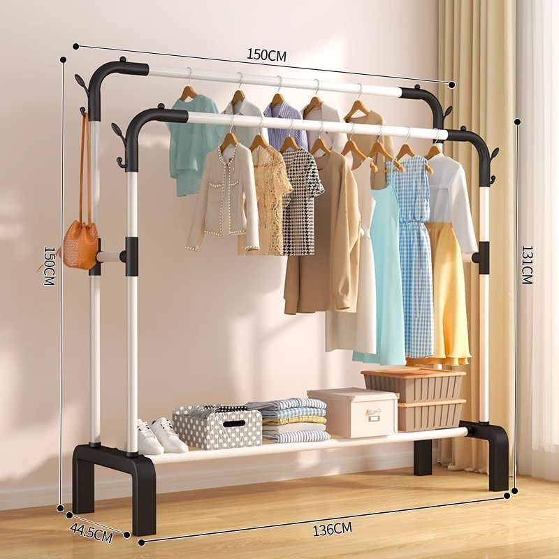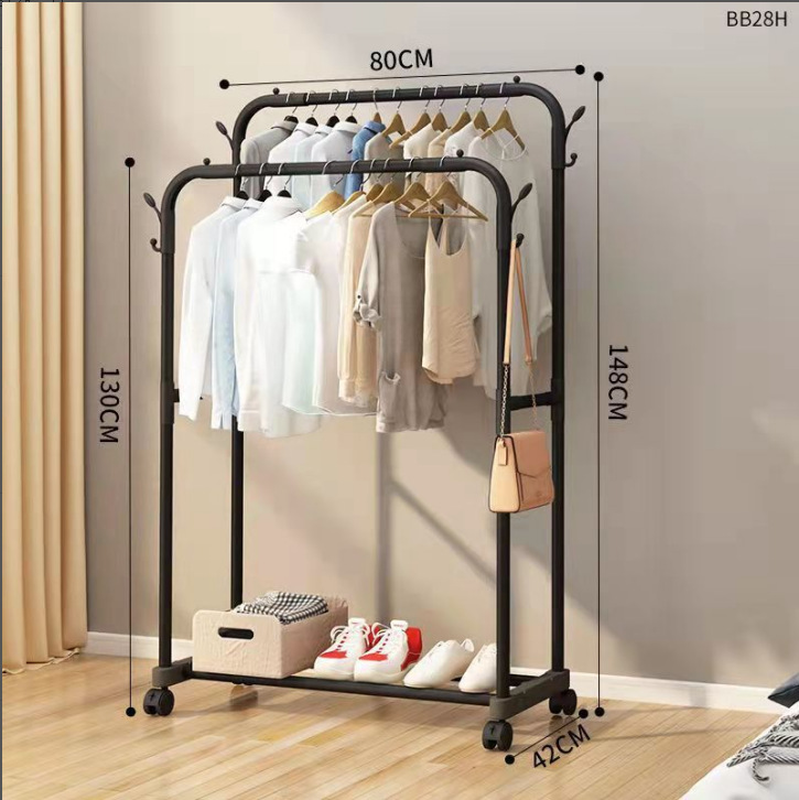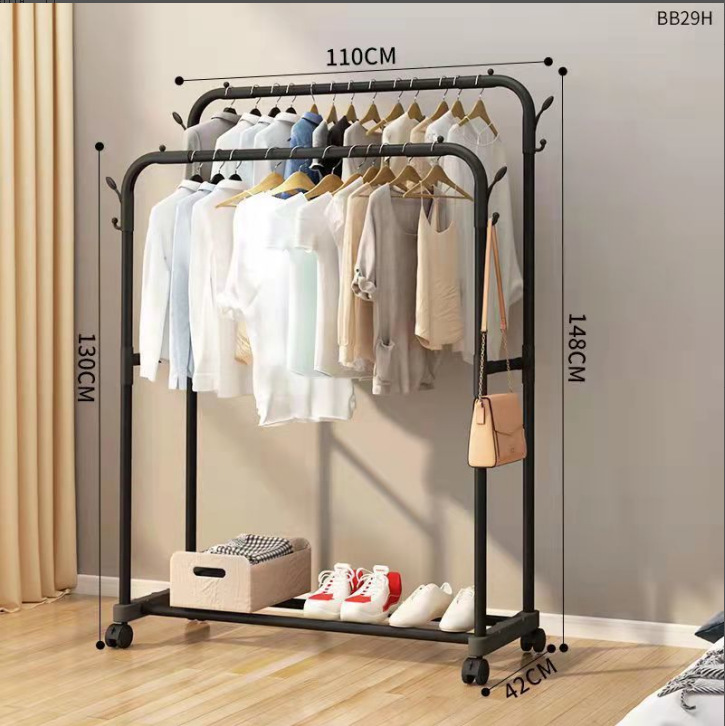 건조 랙 바닥에 서있는 망원경 접히는 움직일 수있는 간단한 이중 극 실내 시원한 옷 랙 발코니 건조 랙
