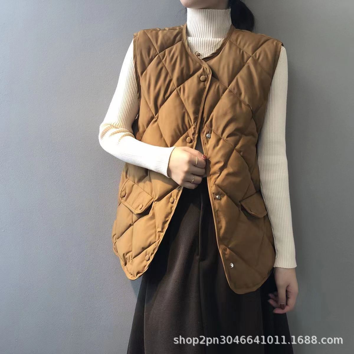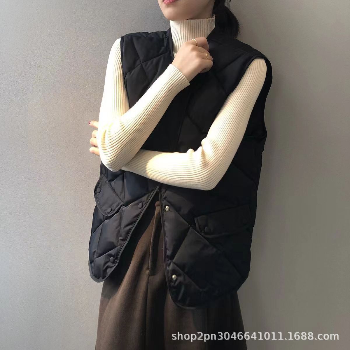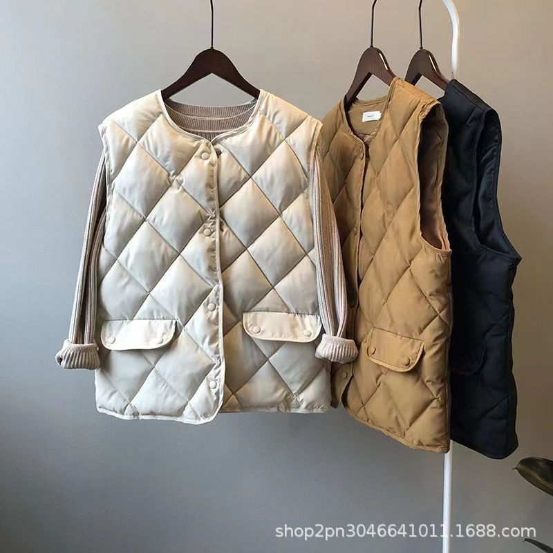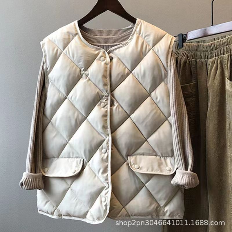 가을 겨울 여성용 면 조끼, 짧은 면 조끼, 다이아몬드 무늬 면 재킷, 아우터웨어 조끼, 짧은 슬림핏 조끼스토어 가기