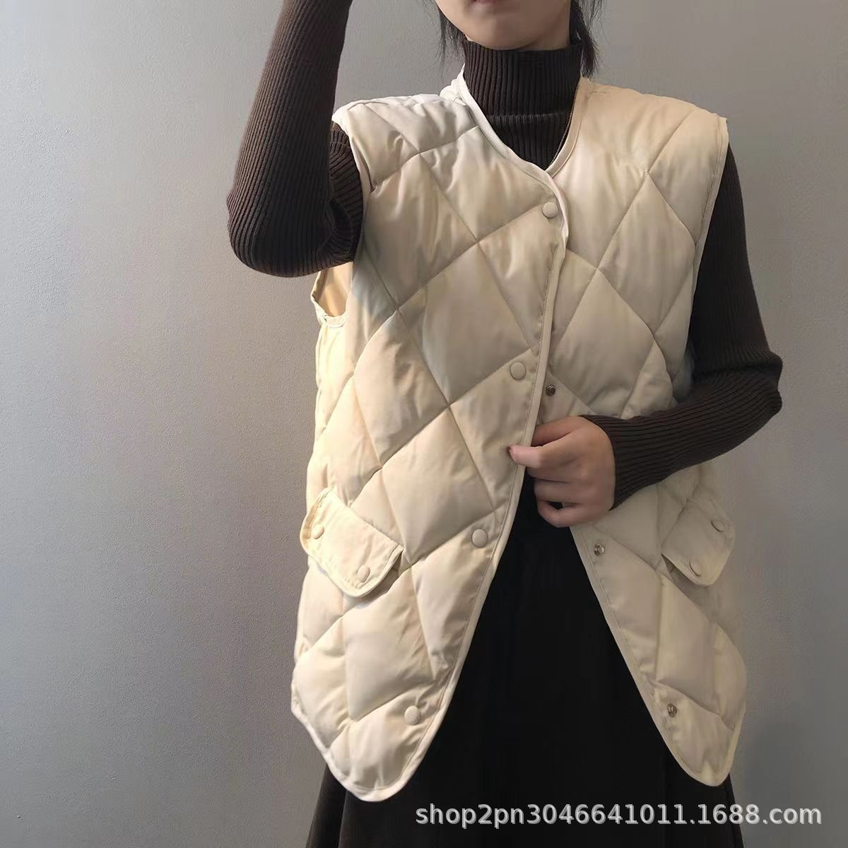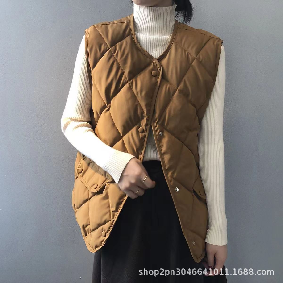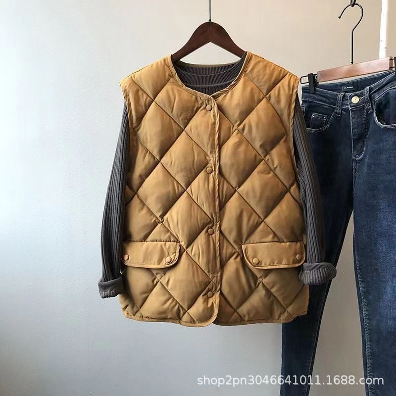 가을 겨울 여성용 면 조끼, 짧은 면 조끼, 다이아몬드 무늬 면 재킷, 아우터웨어 조끼, 짧은 슬림핏 조끼스토어 가기