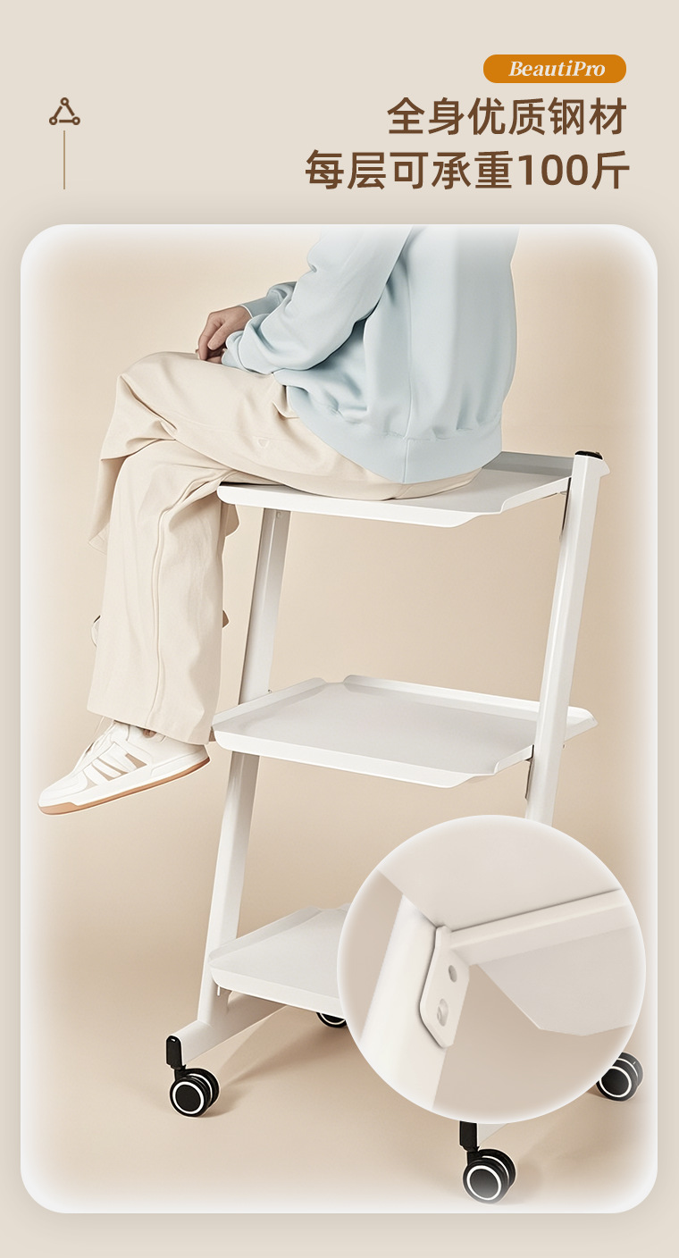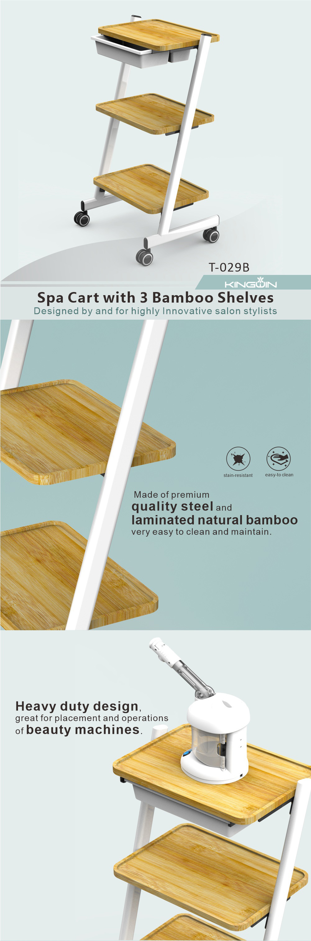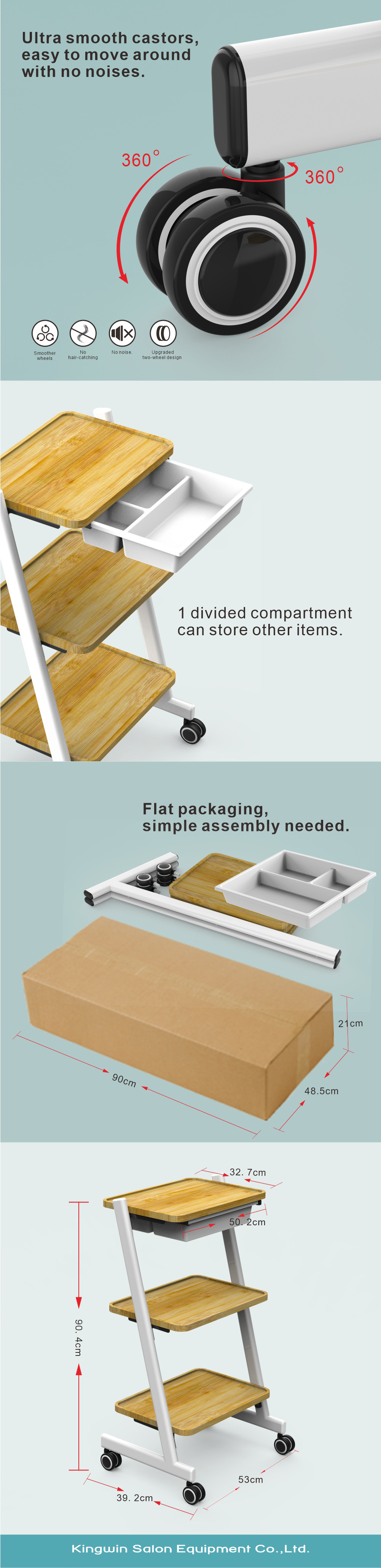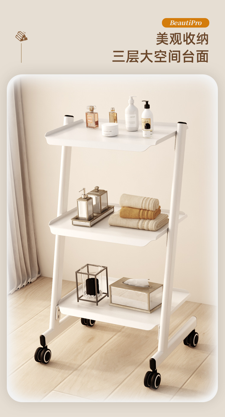 KingWin 미용 기기 트롤리 강철 대나무 두꺼운 3층 다기능 스토리지 랙 미용실 트롤리스토어 가기
