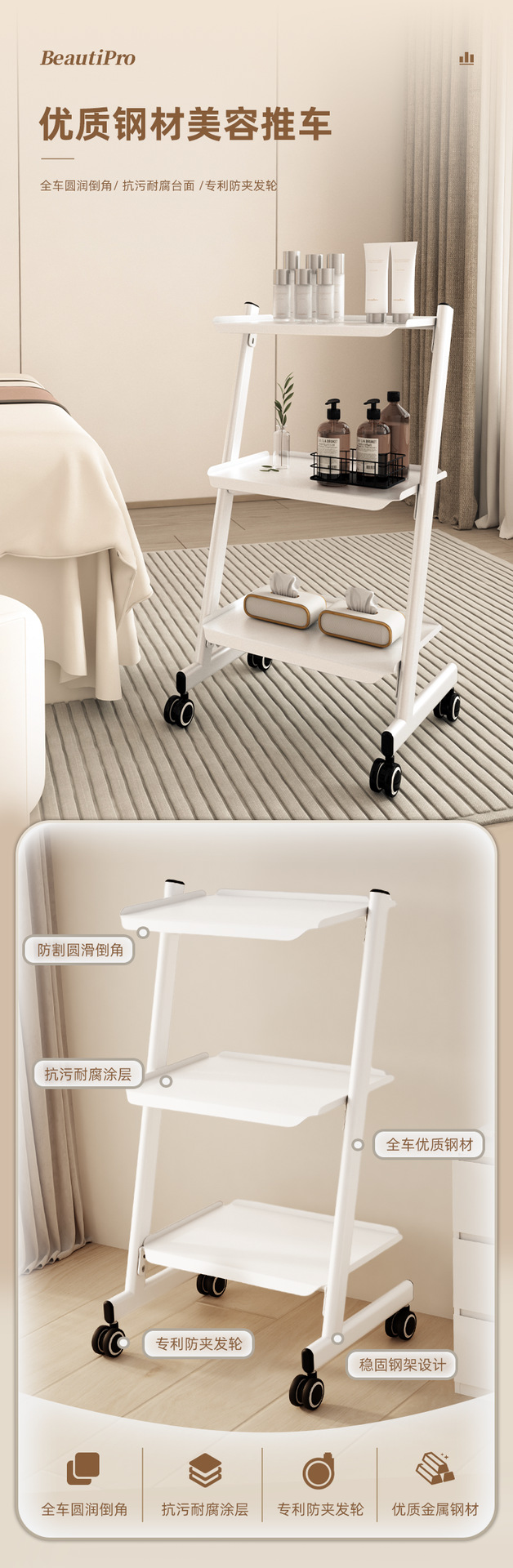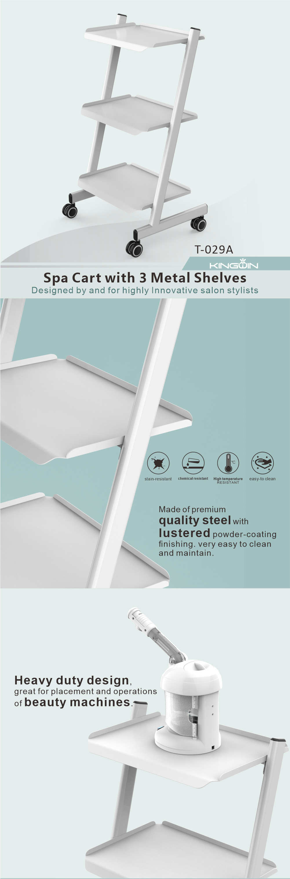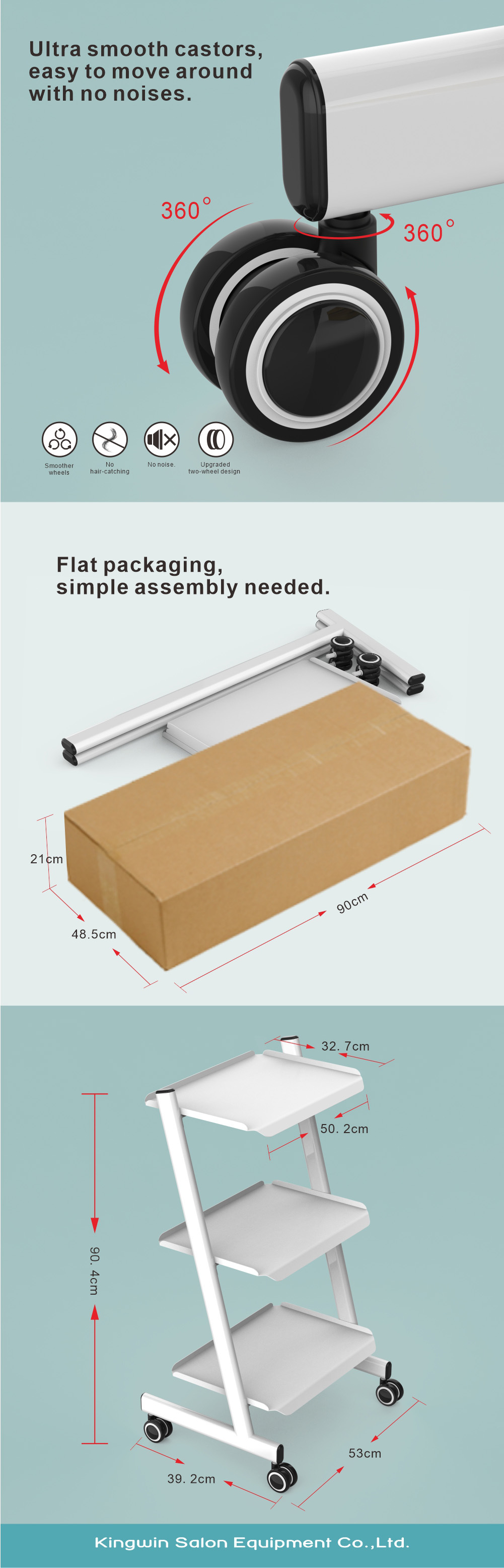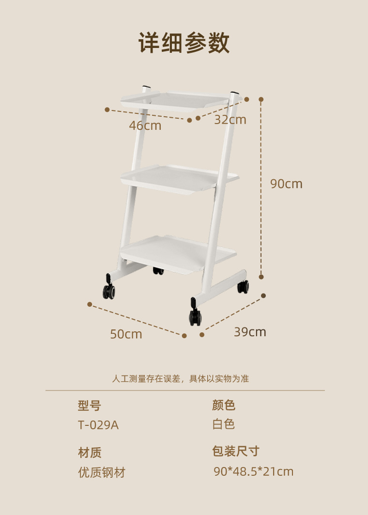 KingWin 미용 기기 트롤리 강철 대나무 두꺼운 3층 다기능 스토리지 랙 미용실 트롤리스토어 가기