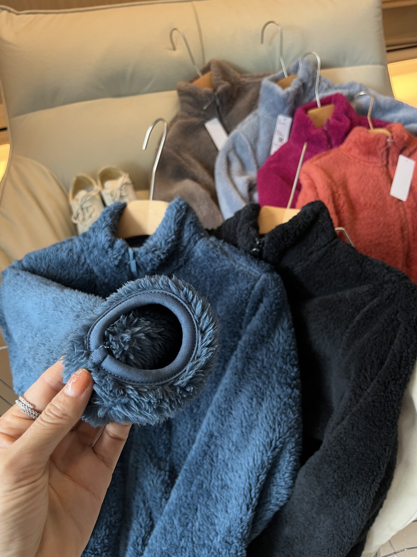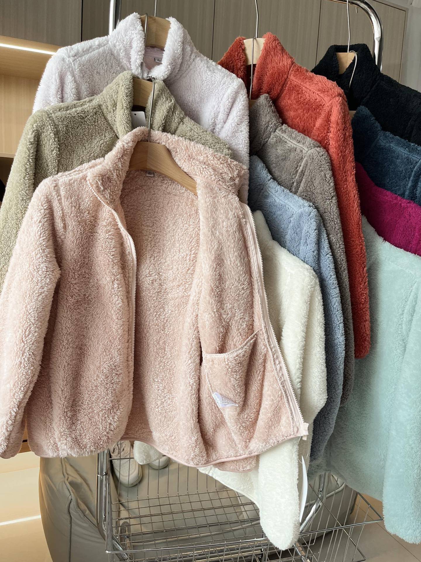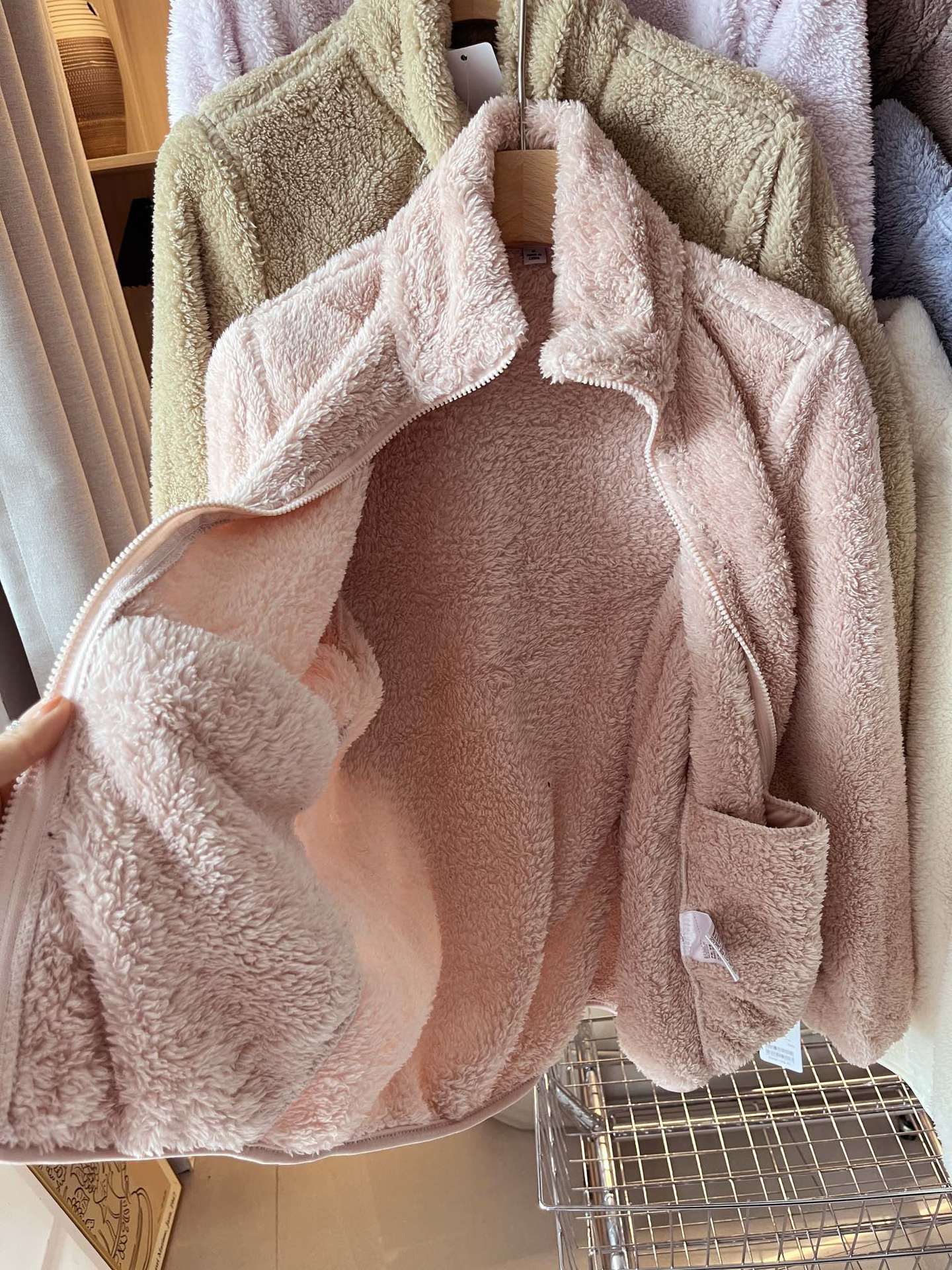 2024 겨울 새로운 긴 벨벳 양털 지퍼 재킷 긴 소매 따뜻한 재킷 수직 칼라 푹신한 탑 여성용 470137
