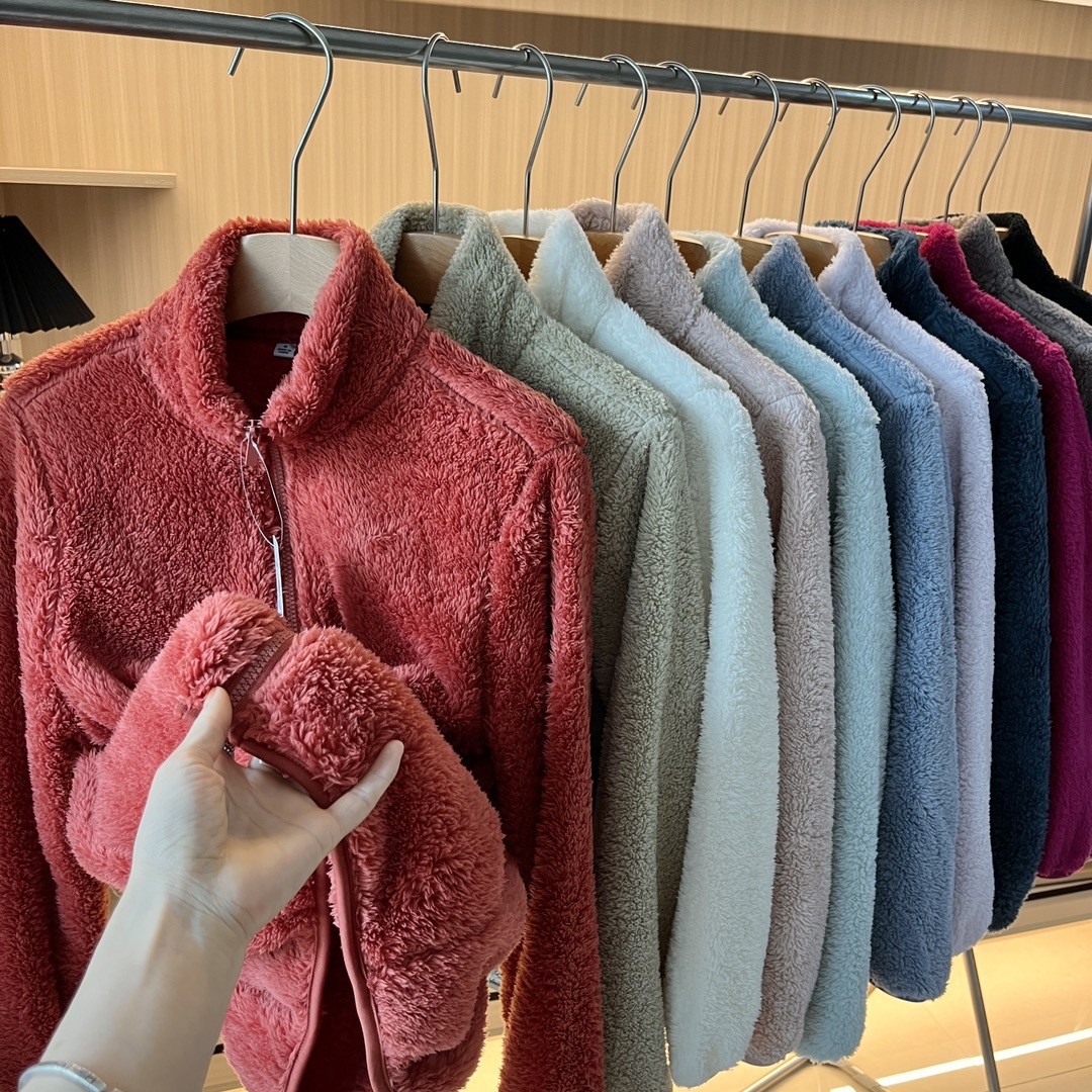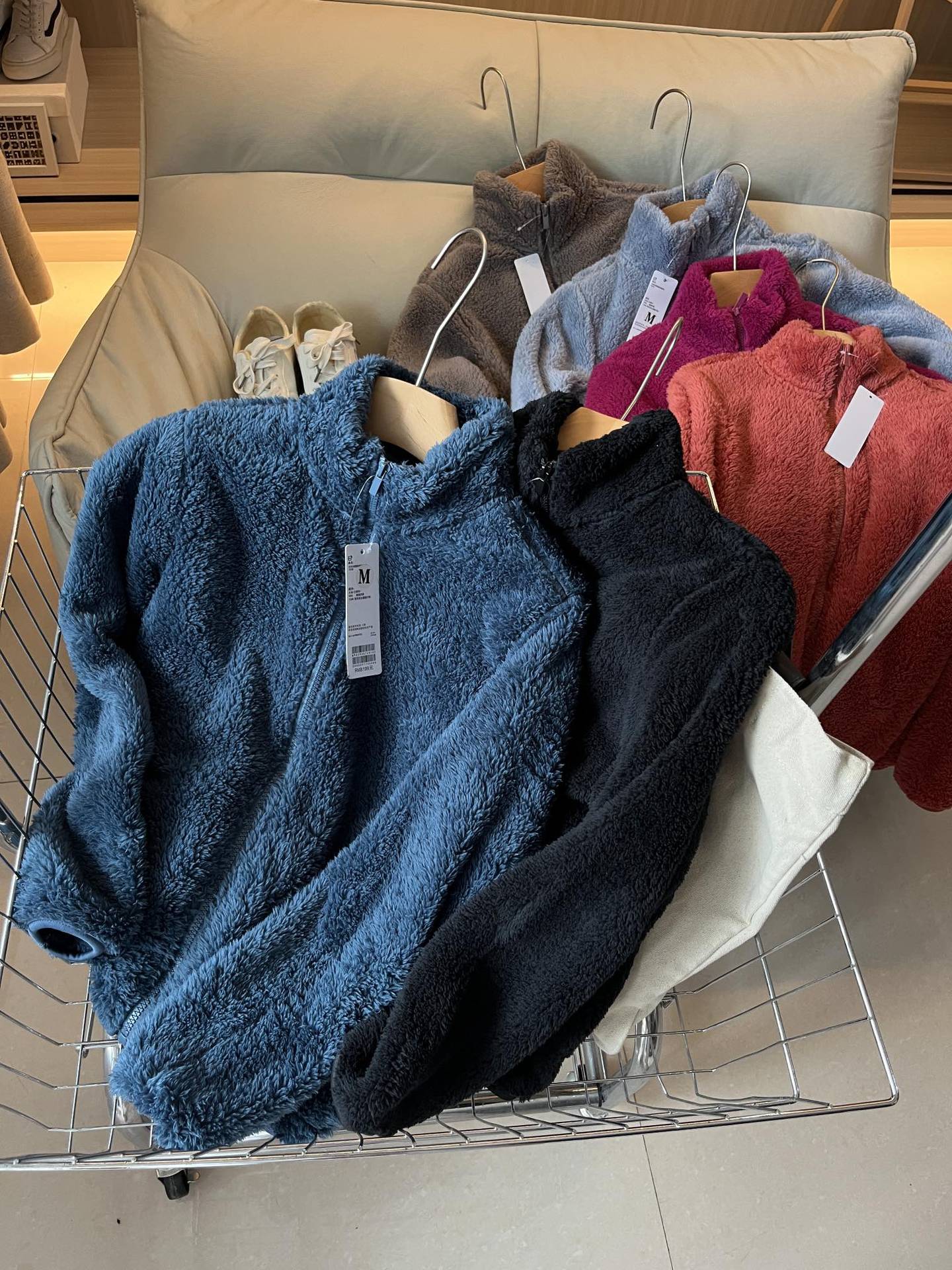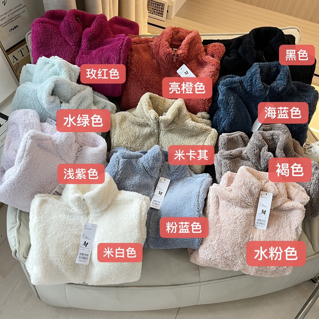 2024 겨울 새로운 긴 벨벳 양털 지퍼 재킷 긴 소매 따뜻한 재킷 수직 칼라 푹신한 탑 여성용 470137