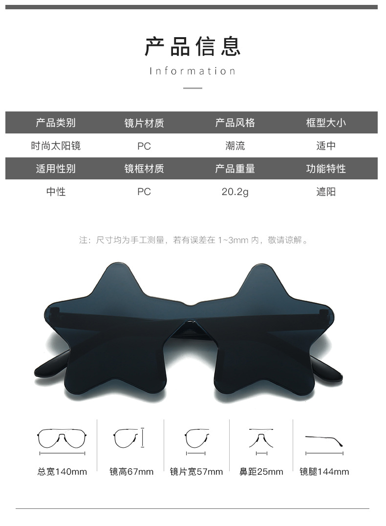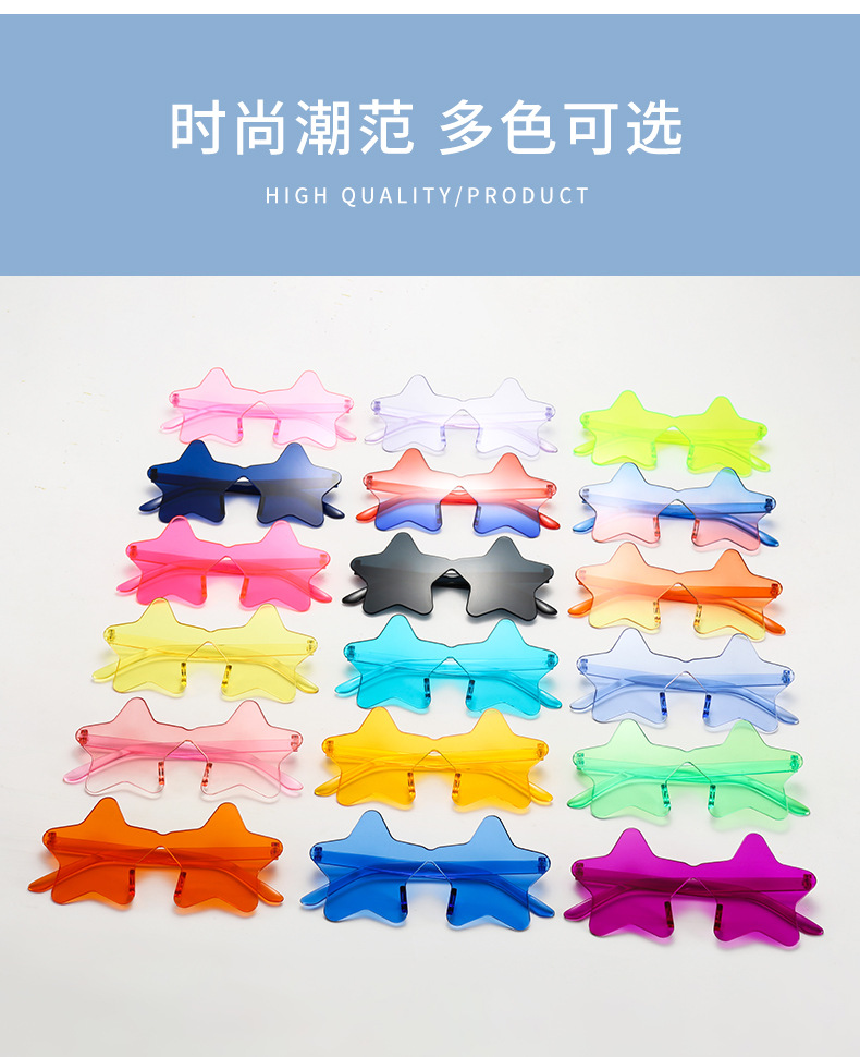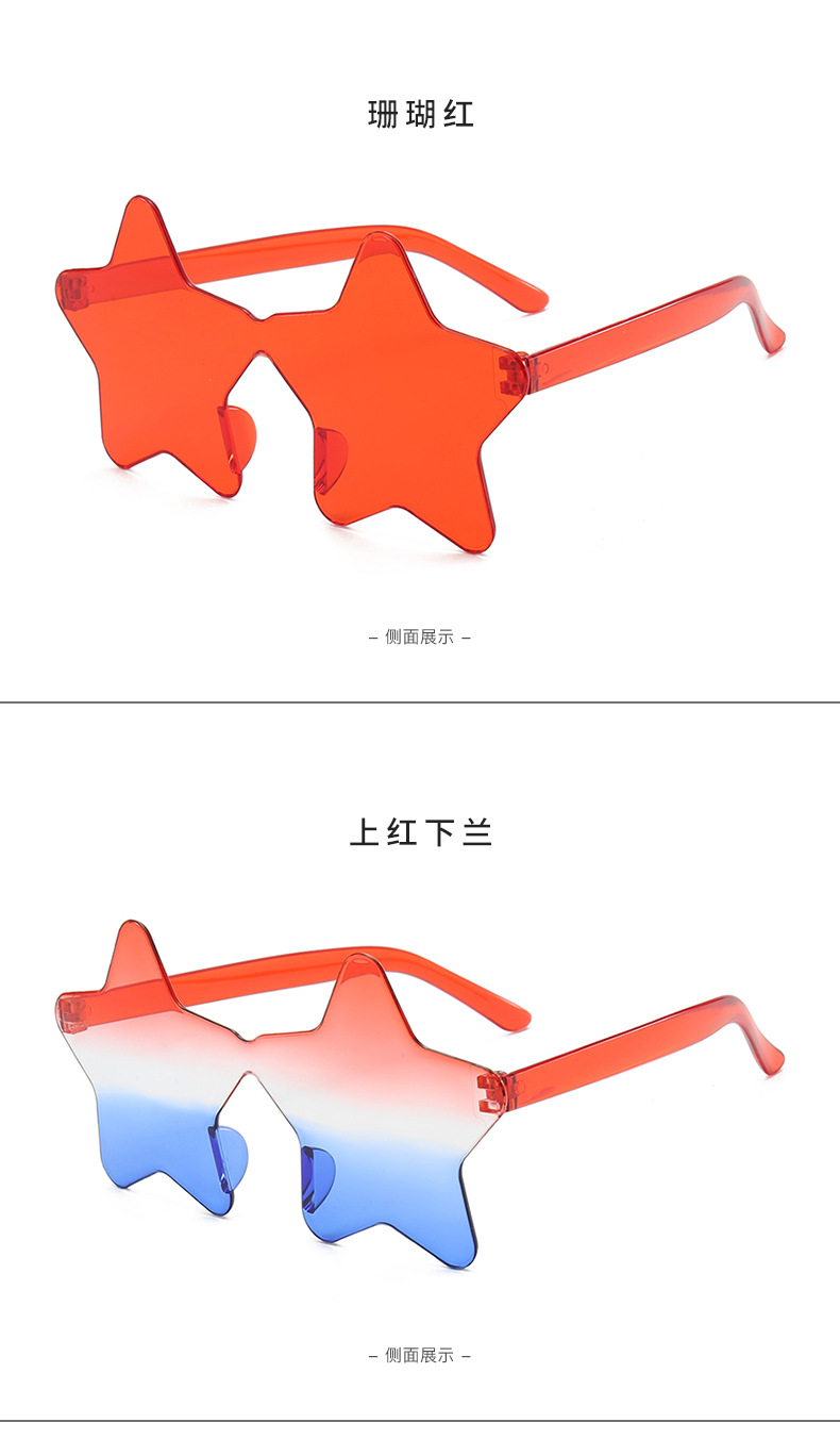 유럽과 미국의 국경을 초월한 프레임없는 5 개의 별 선글라스 인터넷 인기있는 힙합 재미있는 선글라스 휴일 파티 소품 장식 안경스토어 가기