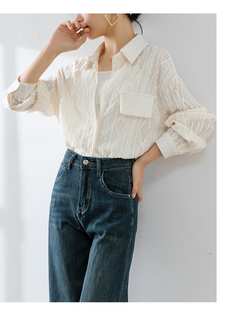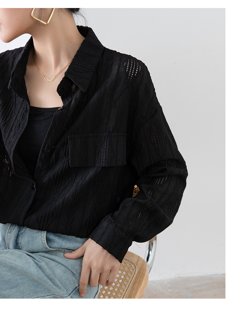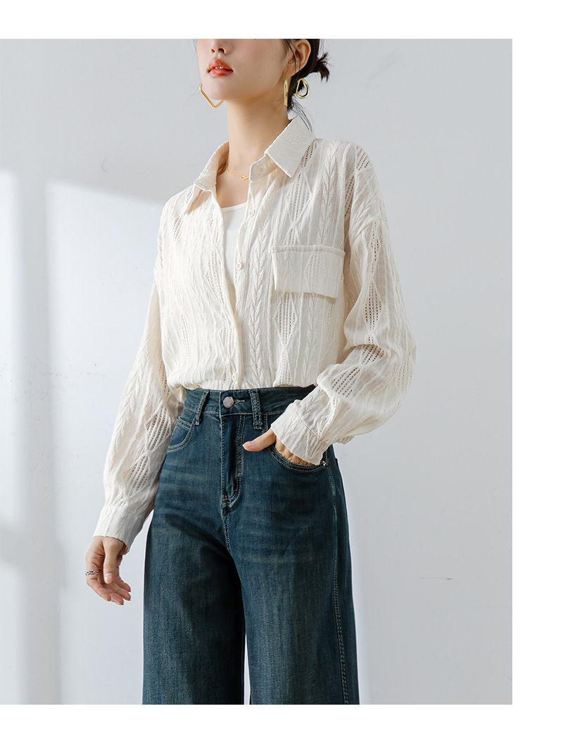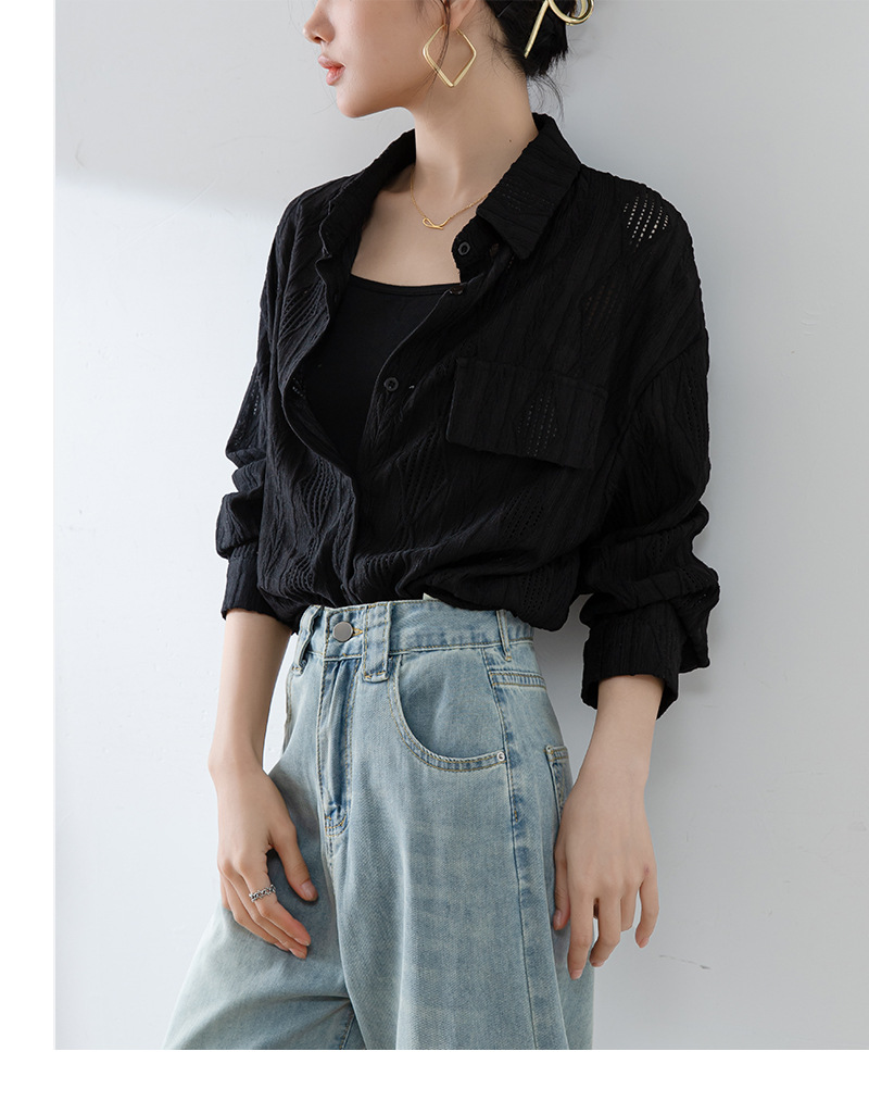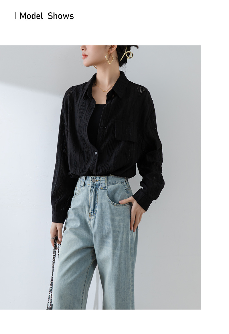2025 진짜 크로 셰 뜨개질 중공 디자인 센스 태양 보호 긴 소매 셔츠 여성용 셔츠 코트 얇은 탑