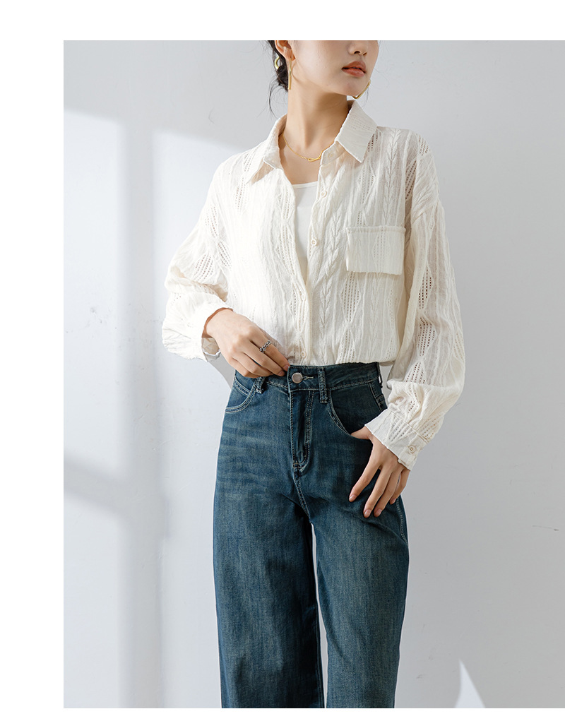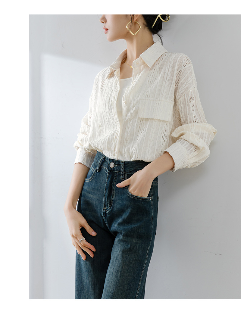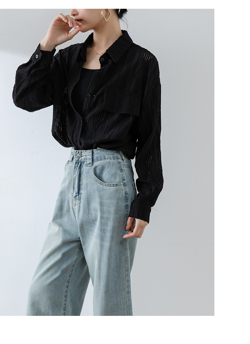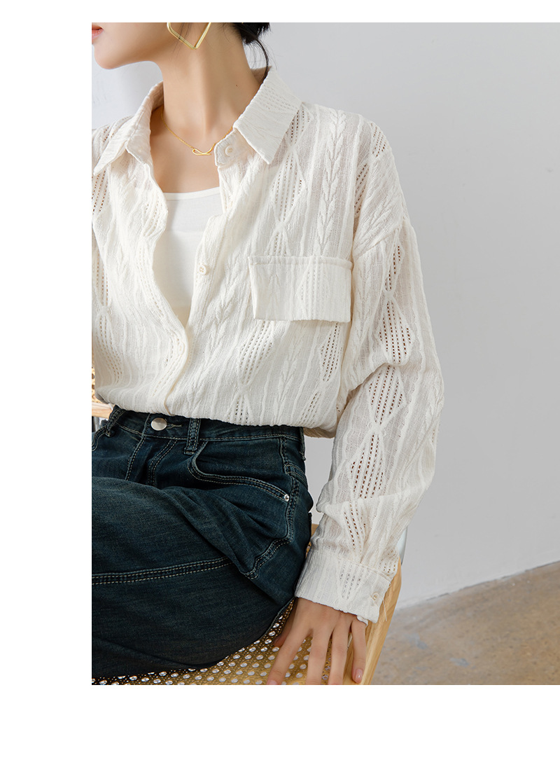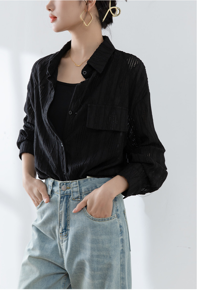 2025 진짜 크로 셰 뜨개질 중공 디자인 센스 태양 보호 긴 소매 셔츠 여성용 셔츠 코트 얇은 탑
