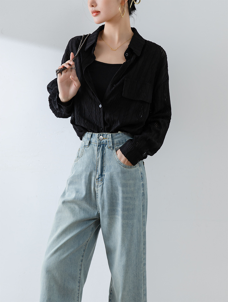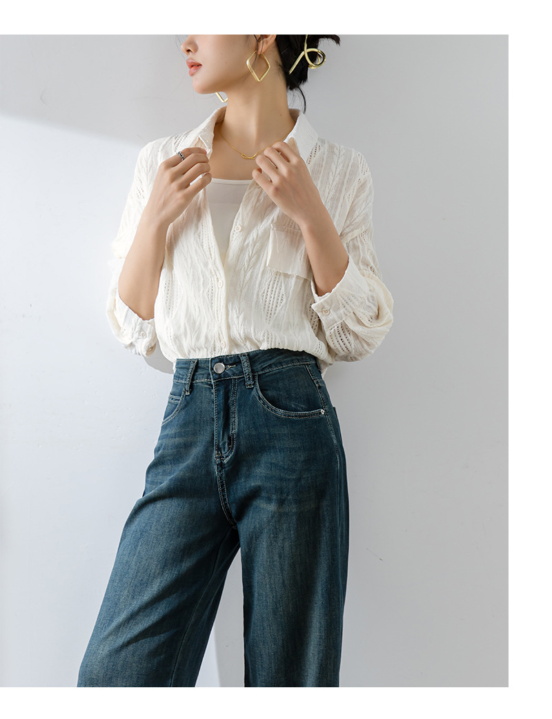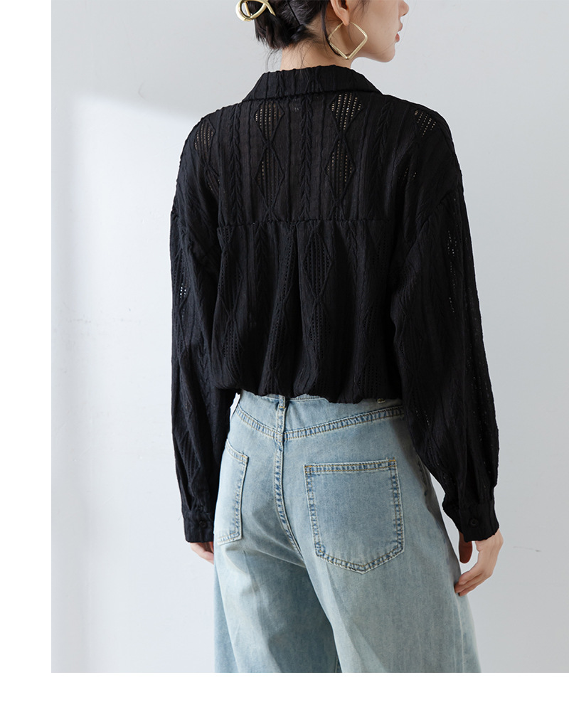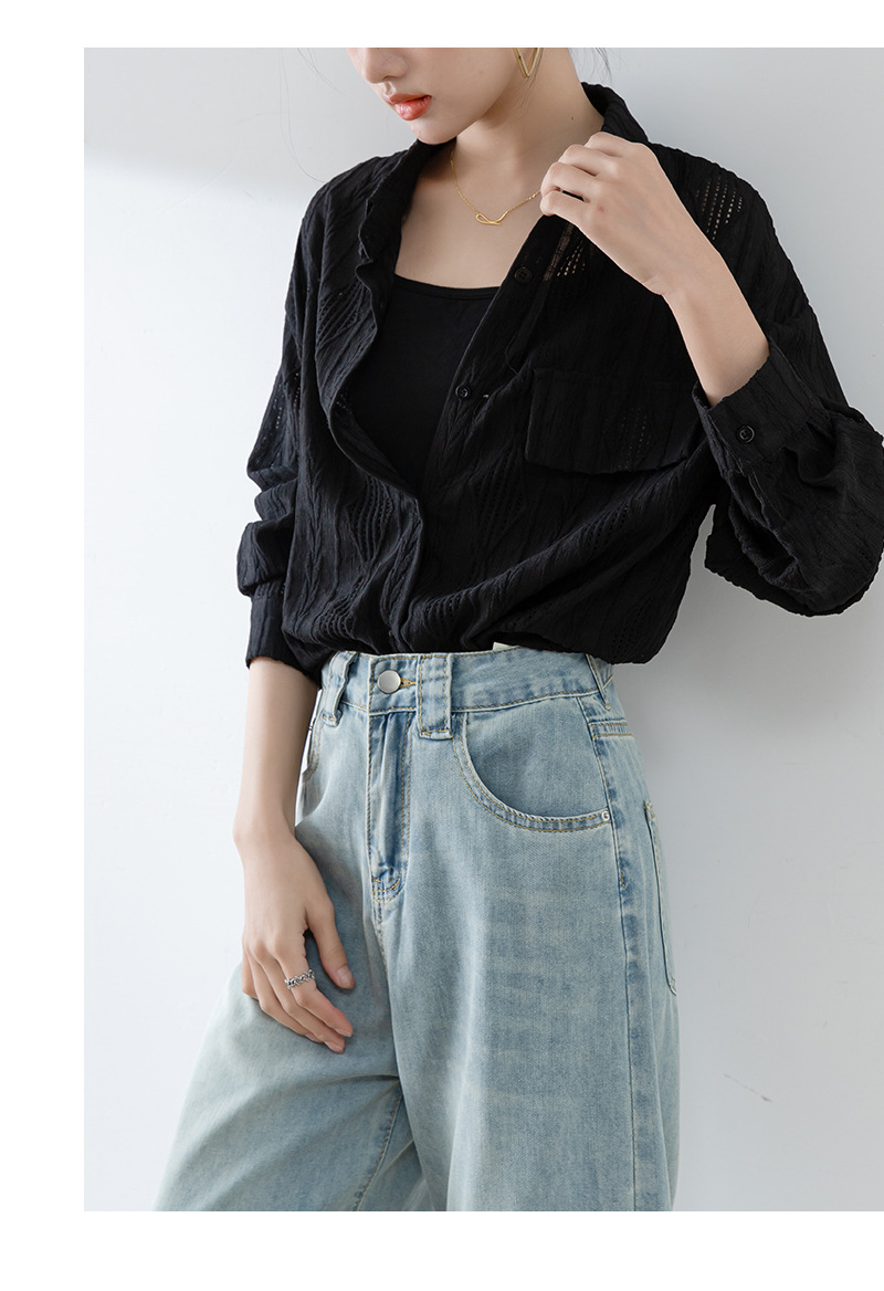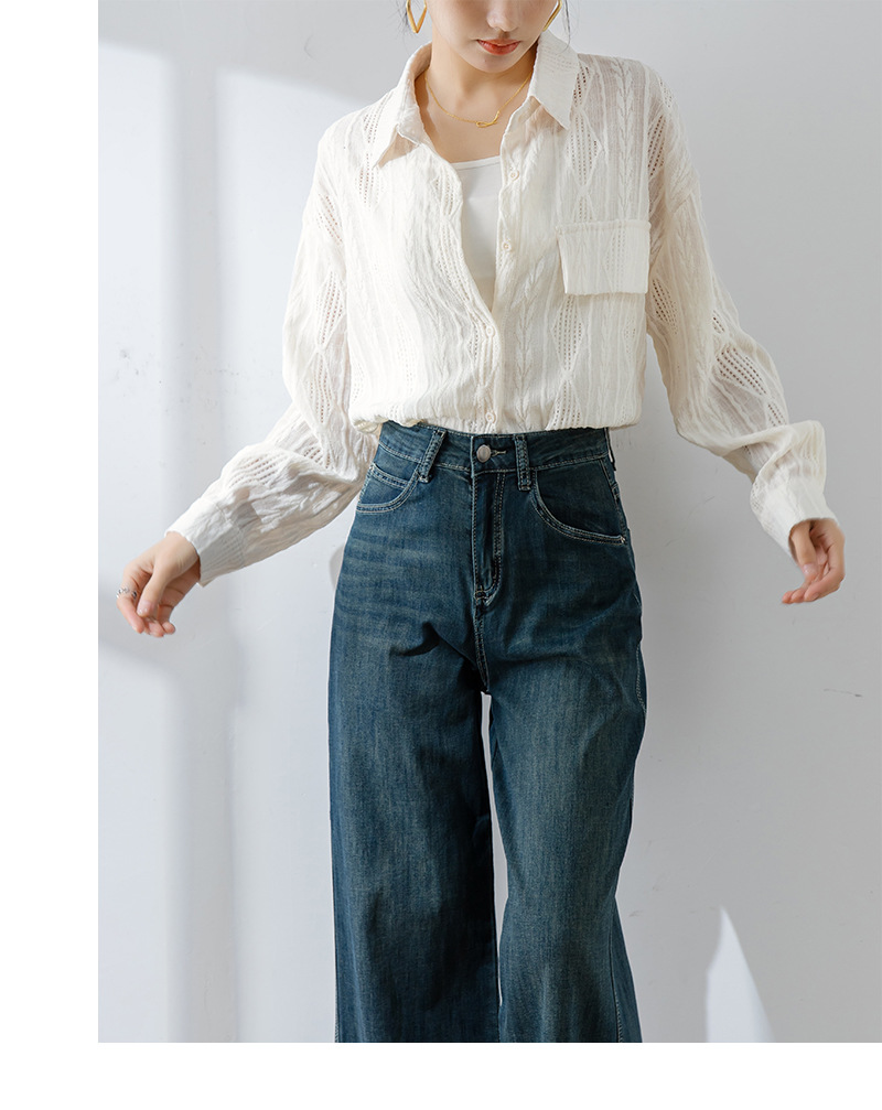 2025 진짜 크로 셰 뜨개질 중공 디자인 센스 태양 보호 긴 소매 셔츠 여성용 셔츠 코트 얇은 탑
