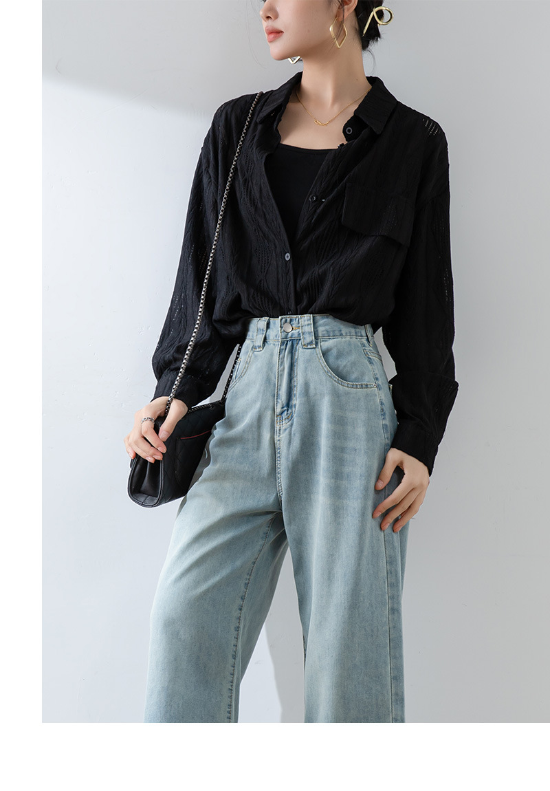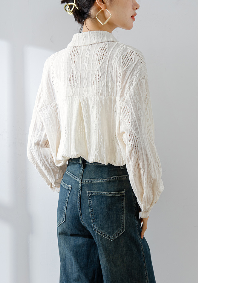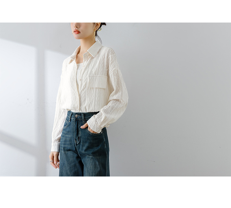 2025 진짜 크로 셰 뜨개질 중공 디자인 센스 태양 보호 긴 소매 셔츠 여성용 셔츠 코트 얇은 탑스토어 가기
